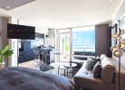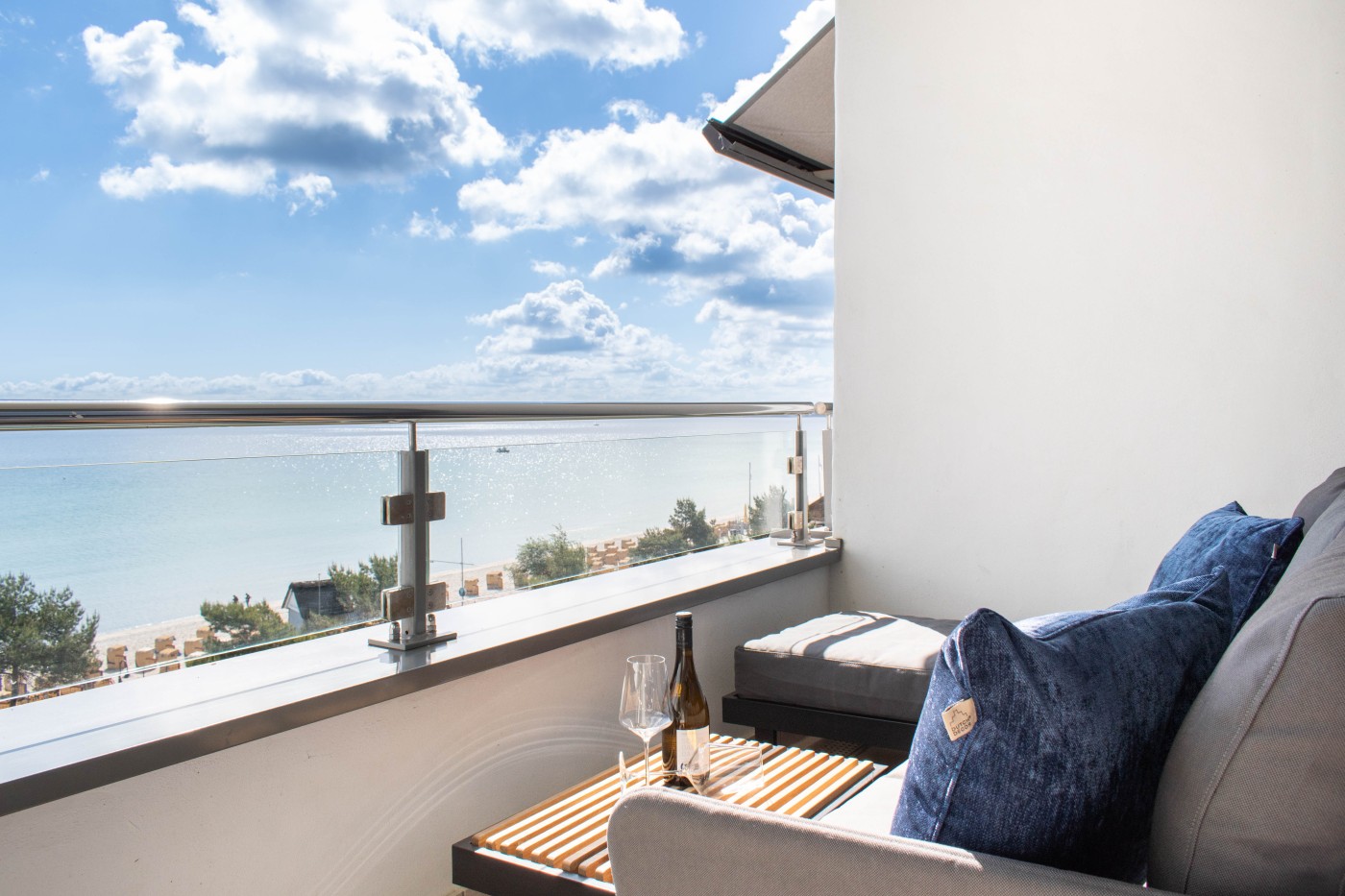 Die Ferienwohnung Hang Loose liegt auf der dritten Etage und ist mit einem Fahrstuhl sowie einen Treppenzugang zu erreichen (kein stufenfreier Zugang). Die 1-Zimmer-Wohnung ist geschickt aufgeteilt: die Einbauschränke im Eingangsbereich dienen als Raumtrenner und bieten reichlich Stauraum für Ihr Reisegepäck. Das gemütliche Boxspringbett (1,60er Breite) befindet sich im Zentrum des Appartements. Die Couchecke kann im Handumdrehen zu einem weiteren Schlafplatz umfunktioniert werden. Von hier haben Sie Zugang zum Balkon mit Loungemöbeln, der Meerblick ist einfach atemberaubend. Küche mit Aussicht: vom großen Küchenfenster können Sie den Blick auf die Ostsee genießen, während Sie in der Traumküche kulinarische Highlights zaubern. Ein weiterer Hingucker ist der virtuelle Kamin, welcher in die Küchenzeile integriert ist. Der Essbereich für drei Personen befindet sich am Küchentresen. Das moderne innenliegende Badezimmer mit der großen Komfortdusche, WC und Handtuchheizkörper runden diese exklusive Ferienwohnung ab. Die Waschmaschine und der Trockner im Gemeinschaftswaschkeller können gegen Gebühr genutzt werden.