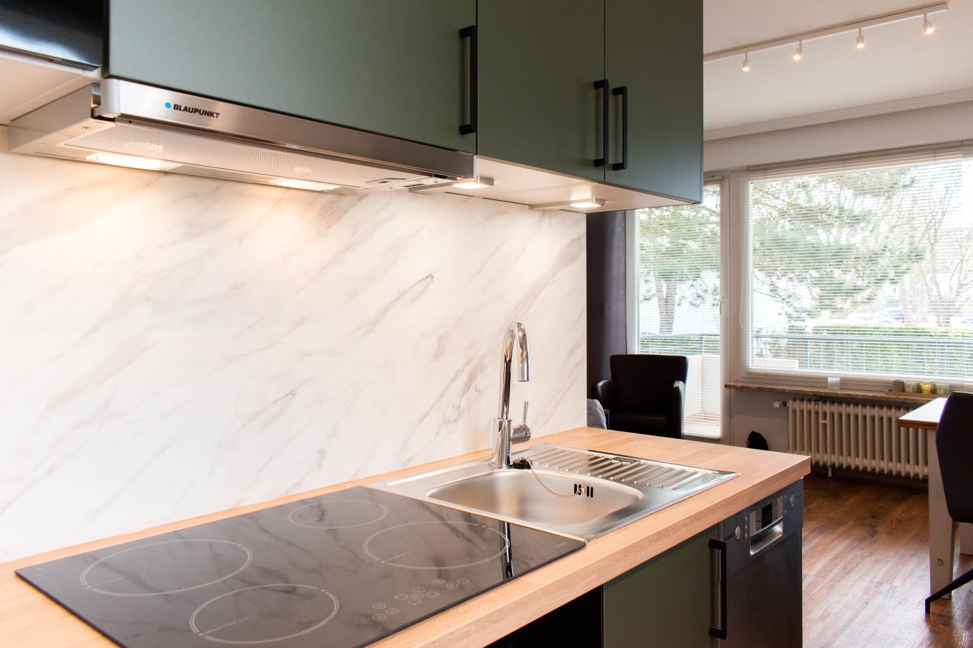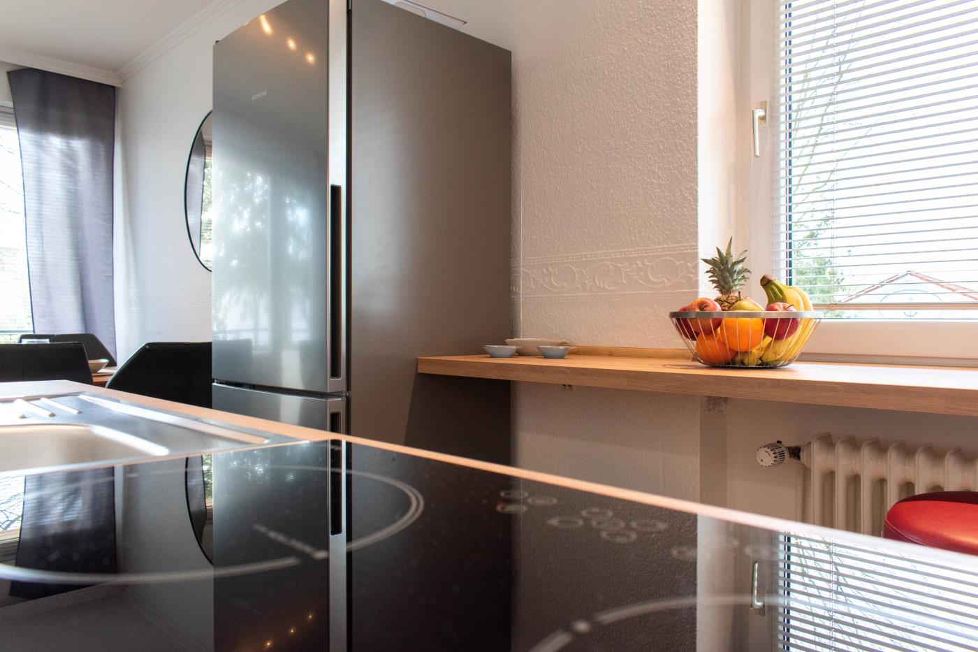 Auf 54 m² werden die Räume optimal genutzt. Modernes Design mit unterschiedlichen Farbakzenten in der gesamten Wohnung sorgt für eine freundliche, helle und gleichzeitig gemütliche Wohnatmosphäre. Bodentiefe Fenster im Wohnzimmer lassen viel Sonnenlicht herein und unterstreichen das offene Wohngefühl.