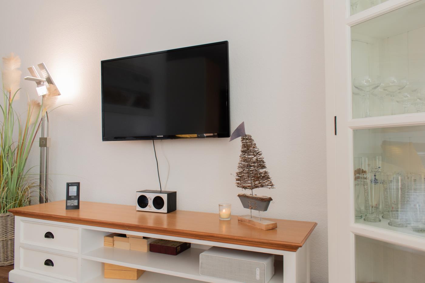 Für die Unterhaltung nach einem langen Strandtag stehen Ihnen sowohl im Wohn- wie auch im Schlafzimmer je ein Smart-TV mit Kabelanschluss bereit. Der WLAN-Zugang und eine Stereoanlage bzw. Sonos-Box runden das Entertainment-Paket ab.