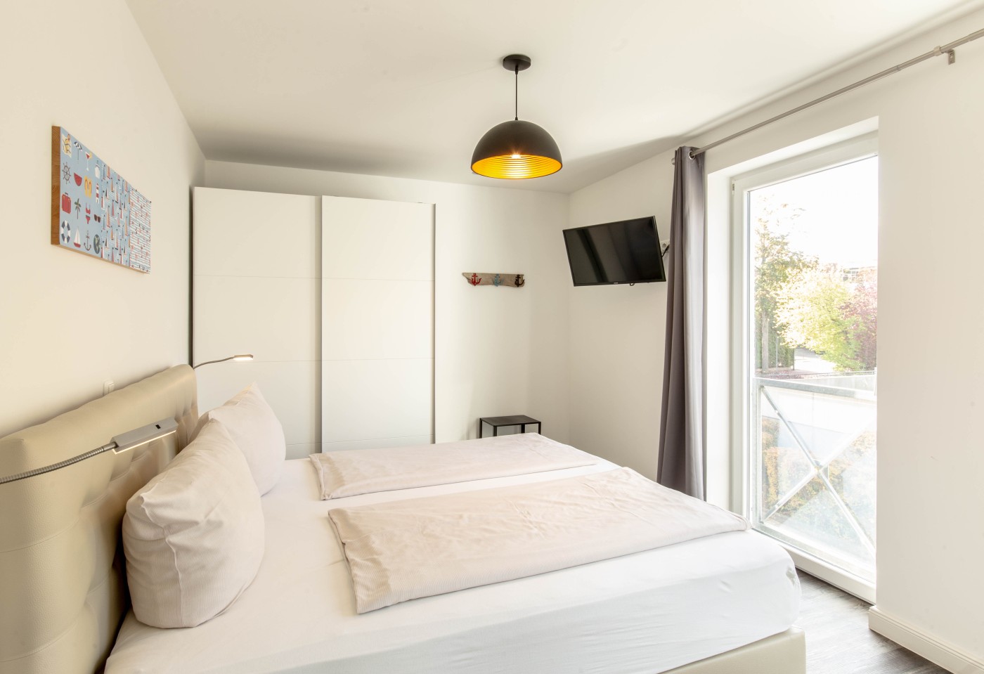 55 m² werden mit schicker und gemütlicher Einrichtung optimal genutzt und lassen keine Wünsche offen. Die Ferienwohnung wurde im Jahr 2020 komplett renoviert und besticht durch die hellen Räume. Frische Farbakzente und die maritime Dekoration sorgen für ein raffiniertes Ambiente.