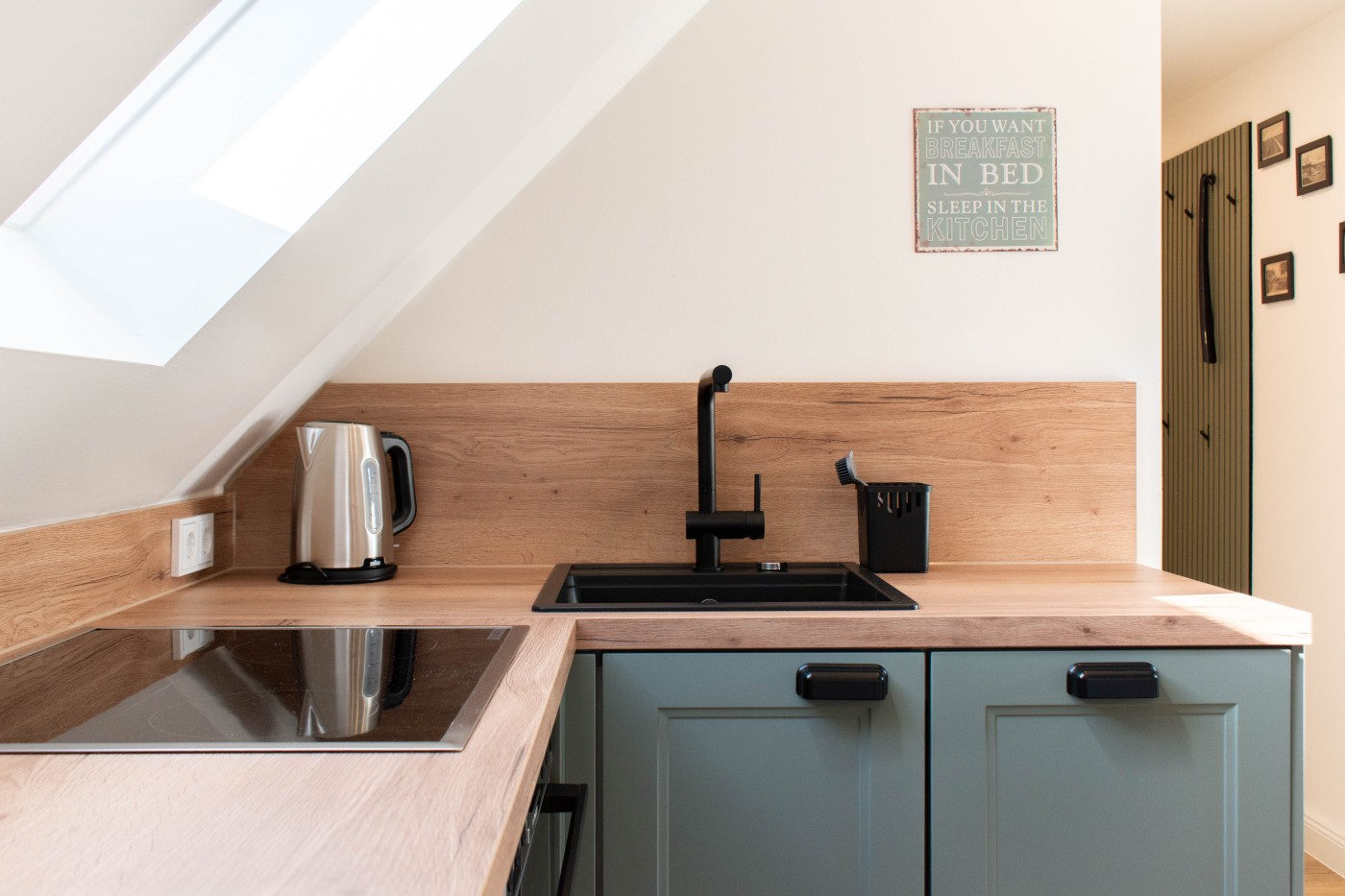 Die Ferienwohnung Schwalbennest befindet sich im Dachgeschoss und bietet Platz für vier Gäste. Die hochwertige Couch im Wohnraum lädt zum gemütlichen Relaxen ein und lässt sich im Handumdrehen zu einem Doppelbett (1,60er Breite) umwandeln. Die offene Küche ist mit Markengeräten ausgestattet und lässt keine Wünsche offen. Der angrenzende Essplatz bietet Platz für vier Personen. Der Schlafbereich verfügt über ein gemütliches Boxspringbett (1,60er Breite), der geräumige Einbauschrank viel Stauraum für Ihr Gepäck. Über eine etwas steilere Treppe ist die kuschelige Schlafkoje in der Dachschräge zu erreichen. Diese eignet sich besonders für Kinder oder junge Pärchen. Das Gäste-WC und das Badezimmer mit einer Dusche und Handtuchheizkörper sind getrennt. Der Garten mit Spielplatz zur gemeinschaftlichen Nutzung macht den Familienurlaub in Scharbeutz perfekt!