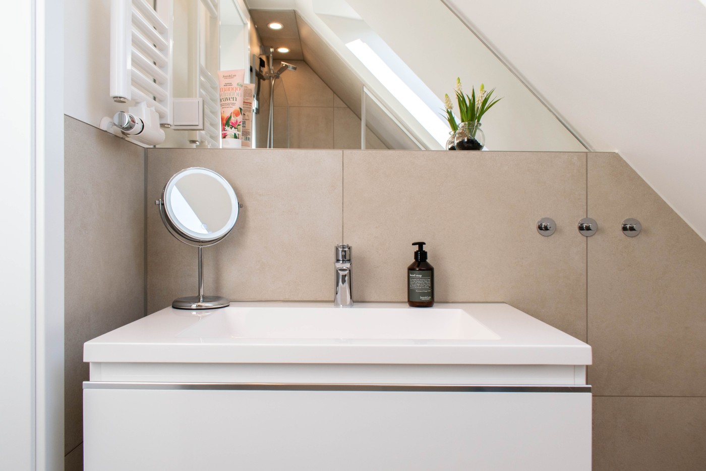 Die Wohnung ist auf 42 m² modern-maritim dekoriert und hochwertig im gemütlichen nordisch-skandinavischem Stil eingerichtet. Das durchdachte und luftige Design lässt Sie die Nähe zum Ostseestrand schon fühlen. Die Formen der Einrichtung sind schlicht, das Design ist geradlinig und klar, das Farbschema ist sanft und unaufgeregt.