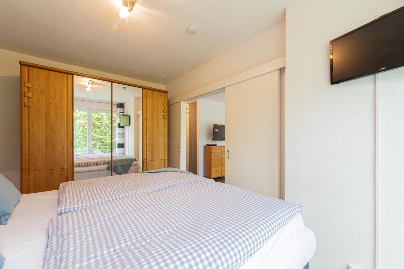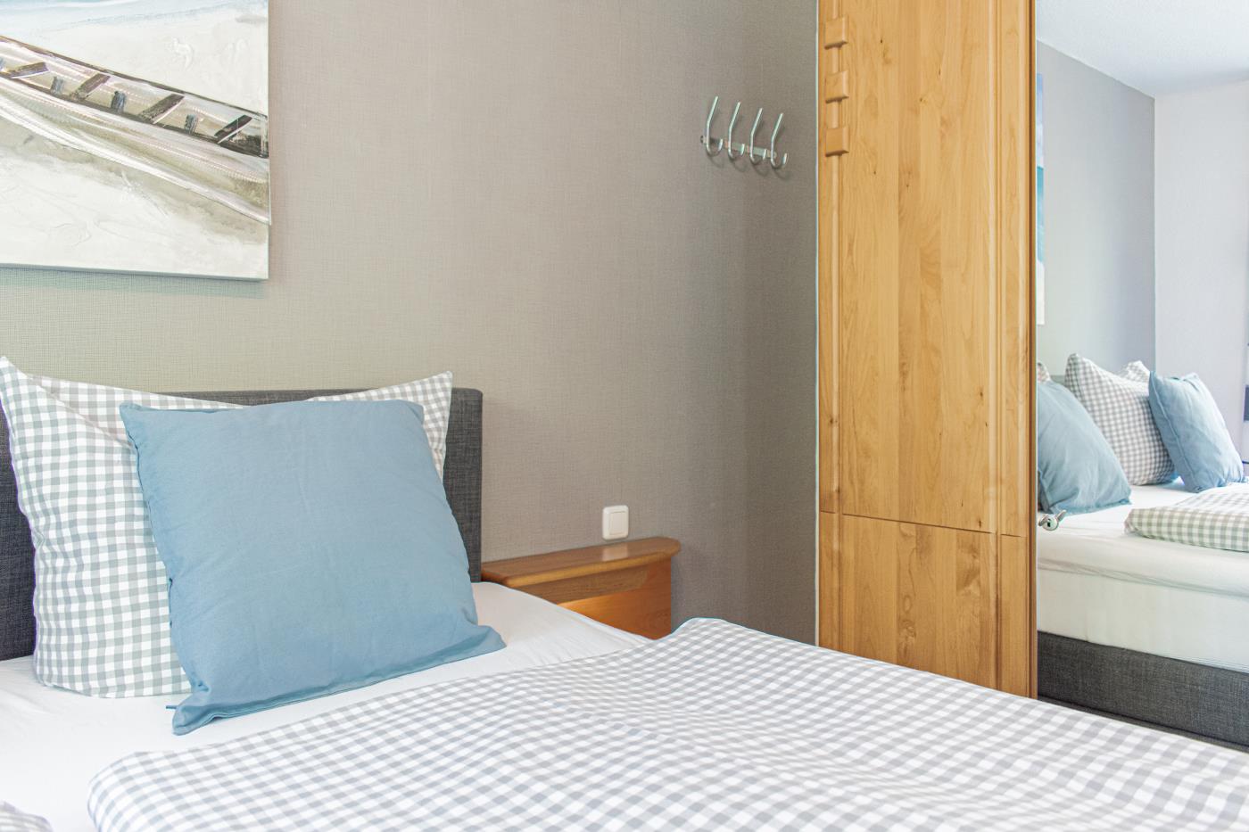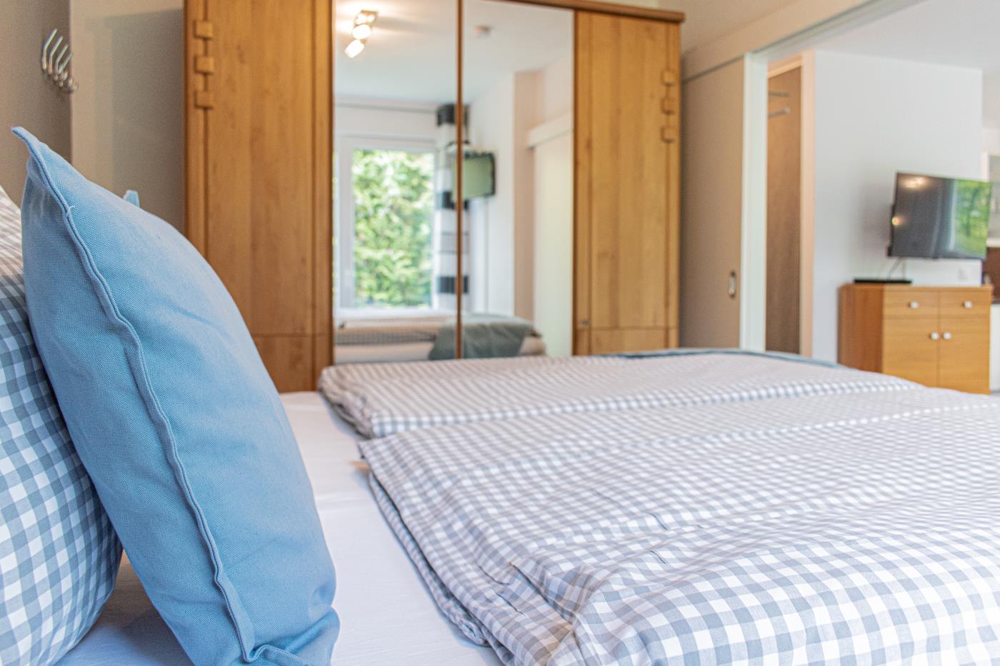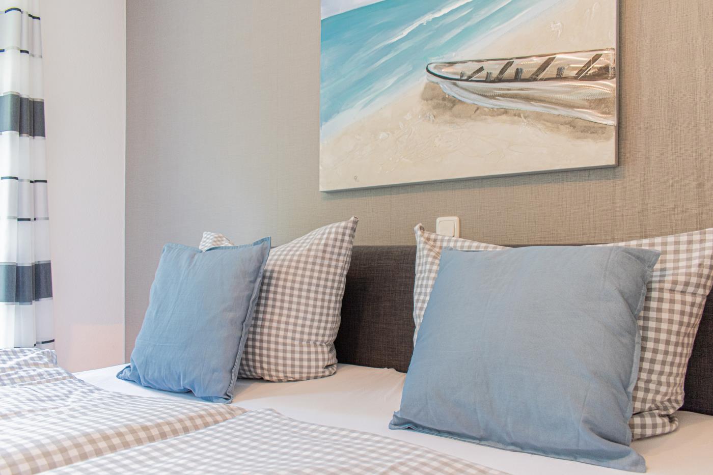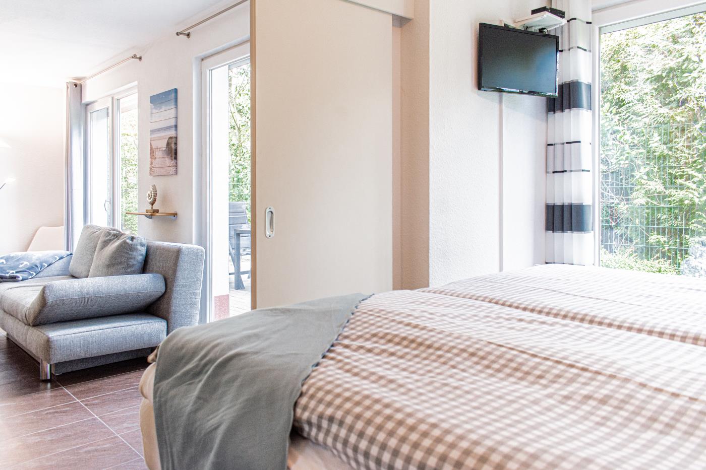 48 m² werden mit hochwertiger und gemütlicher Einrichtung optimal genutzt und lassen keine Wünsche offen. Durch die bodentiefen Fenster im Schlaf- und Wohnbereich gelangt viel Sonnenlicht in die Wohnung. Frische Farbakzente in Grau- und Blautöne sorgen für ein maritimes Urlaubsgefühl!