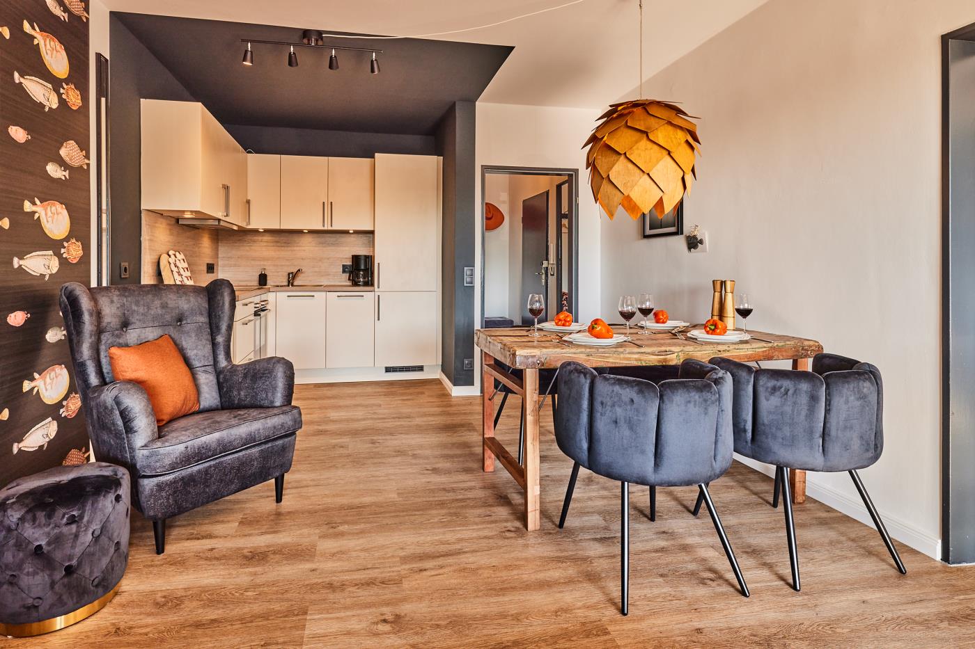 Die Ferienwohnung Sundown besticht durch ihr einmaliges Design. Modern eingerichtet auf 65 m² findet sich alles, was man im Ostseeurlaub braucht. Die Ferienwohnung punktet mit zentraler und strandnaher Lage. Die Wohnung liegt direkt in der Strandallee an der Dünenmeile. Restaurants, Cafes, Boutiquen und Bäcker sind nur wenige Meter von der Ferienwohnung entfernt. Auch weitere Freizeitmöglichkeiten wie z. B. Minigolfbahnen, Spielplätze und Skaterbahn sind schnell erreichbar. Genießen Sie die Abendsonne bei einem leckeren Sundowner auf dem großen ca. 20 m² Balkon mit traumhaftem seitlichen Blick auf den Kurpark. Sie erreichen mit wenigen Schritten den feinen Sandstrand.