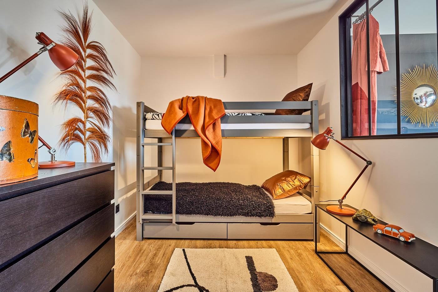 65 m² werden mit moderner und freundlicher Einrichtung optimal genutzt und lassen keine Wünsche offen. Die Räume lassen sich durch Blackout Vorhänge sehr gut verdunkeln.