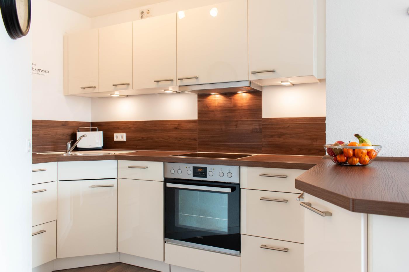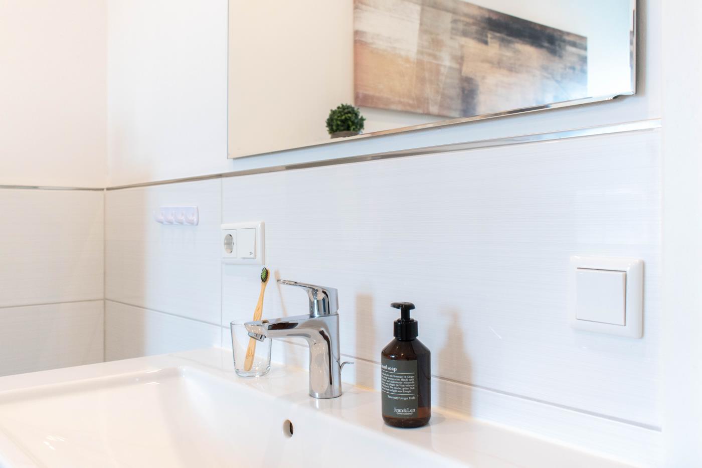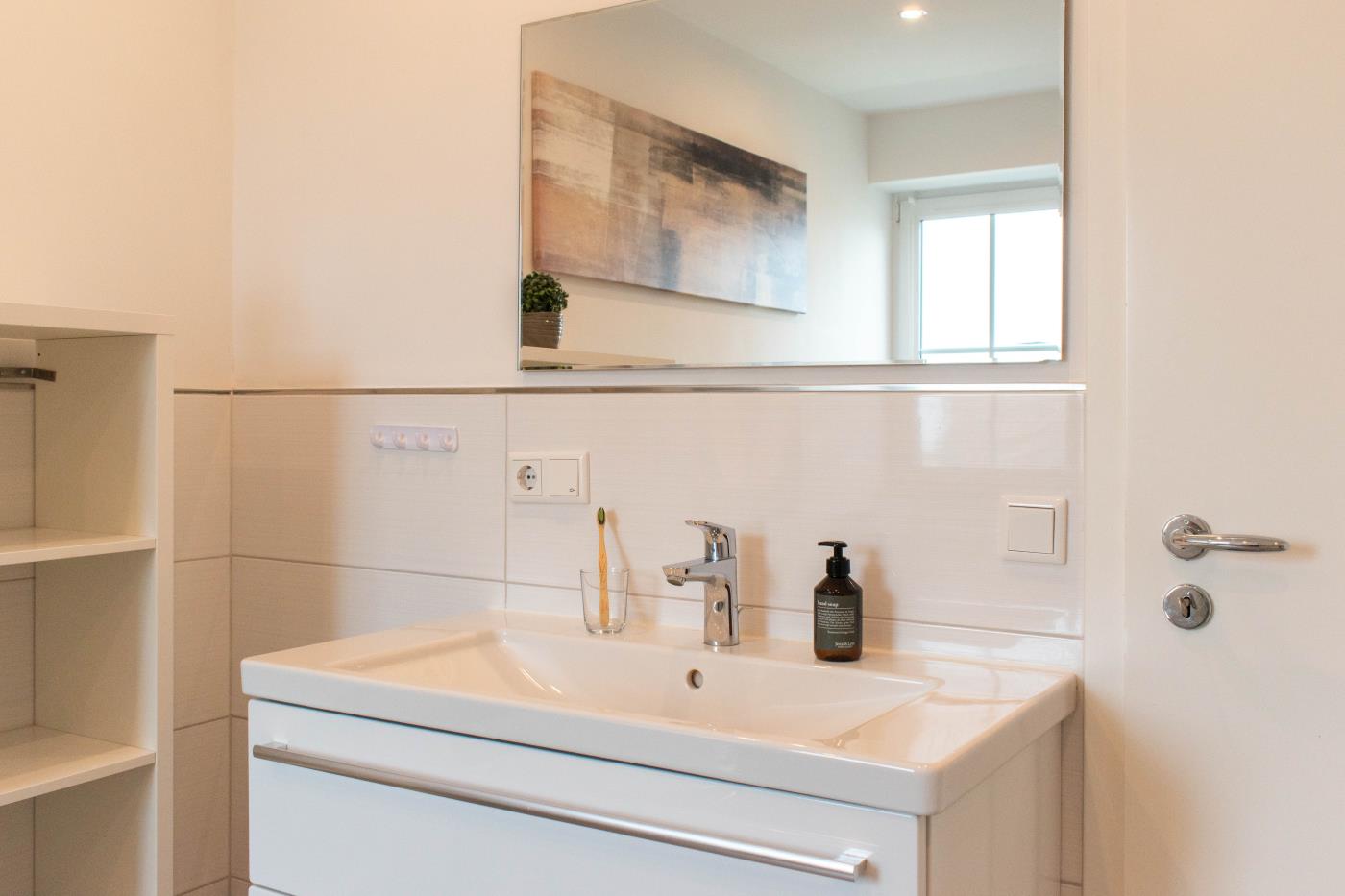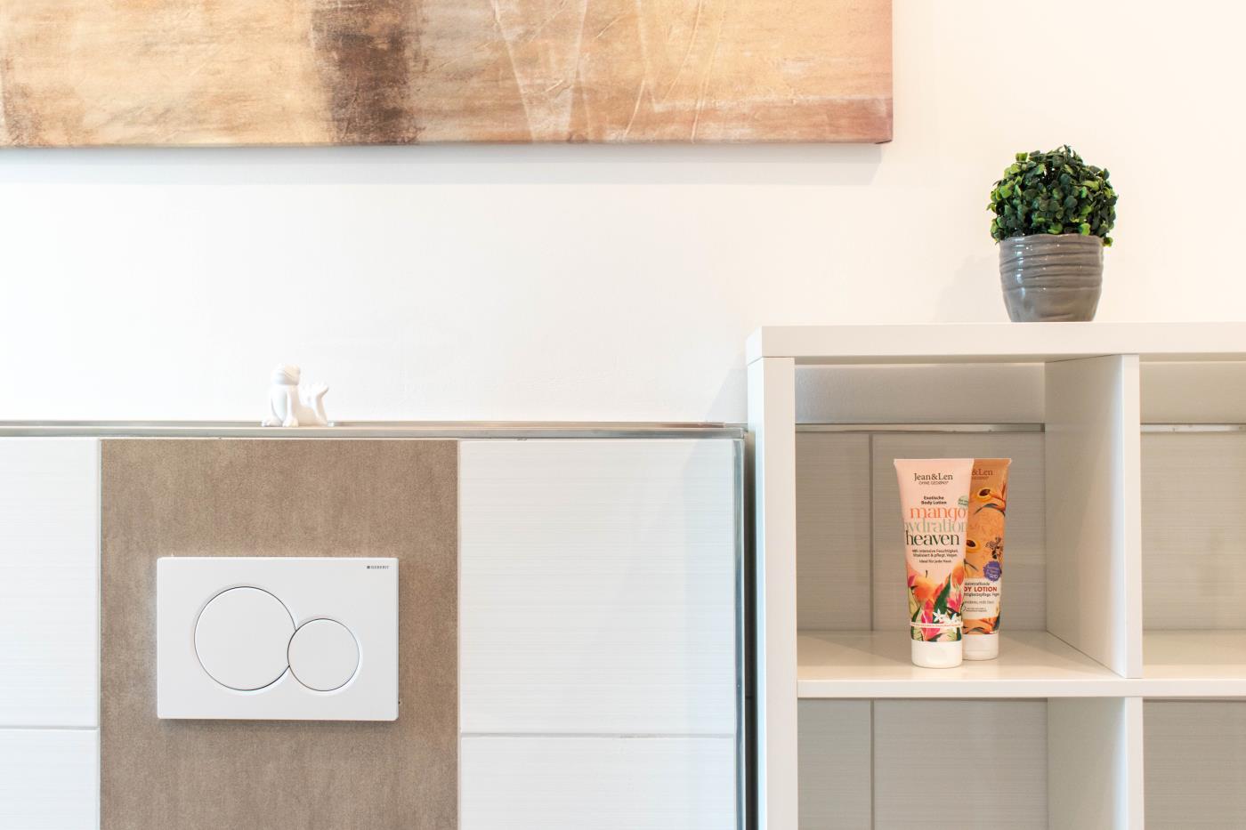Die Wohnung ist hell und freundlich eingerichtet. Der Platz wurde optimal genutzt und die Ferienwohnung ist liebevoll dekoriert. Besonders das große Badezimmer überzeugt durch seinen mediterranen Flair.