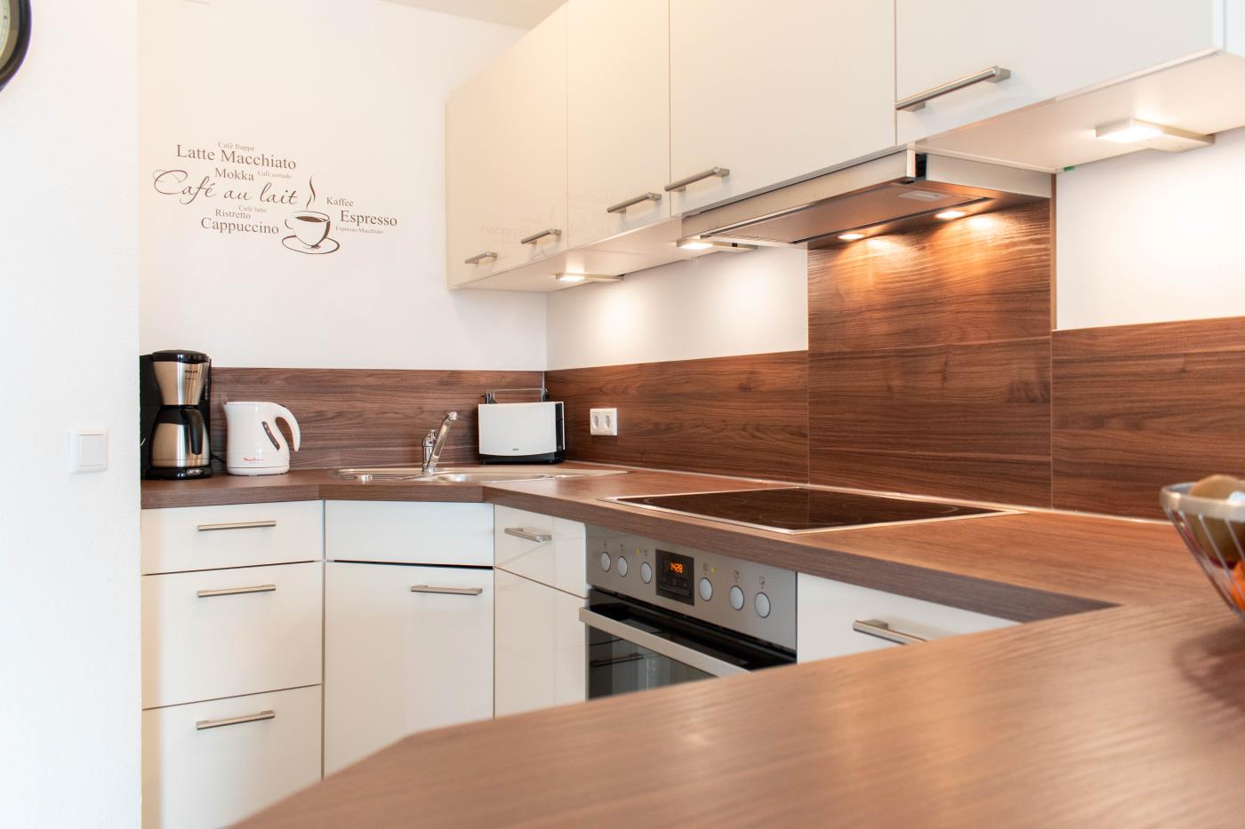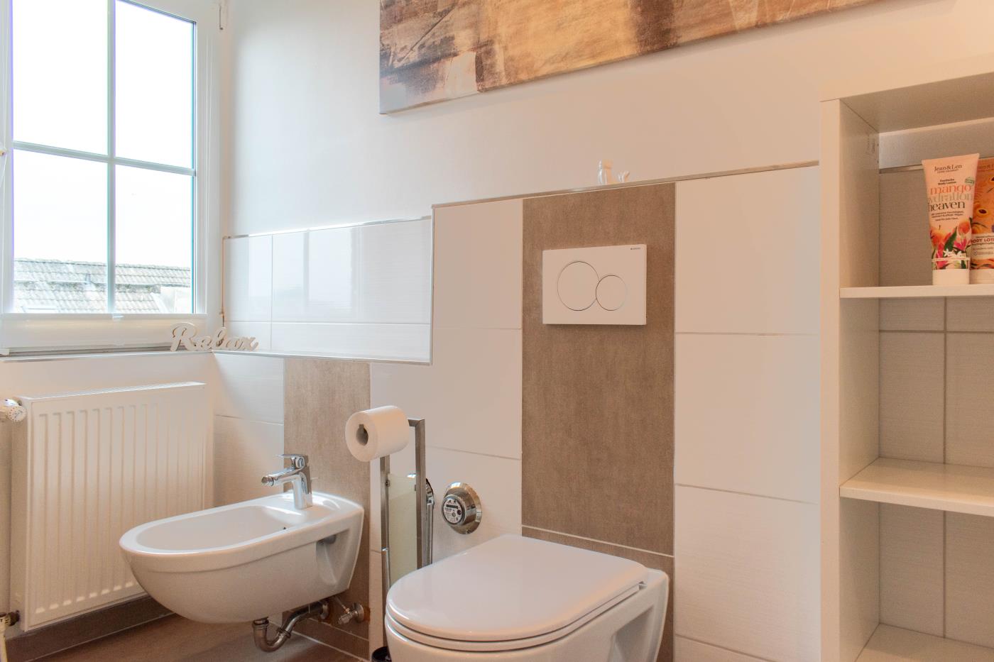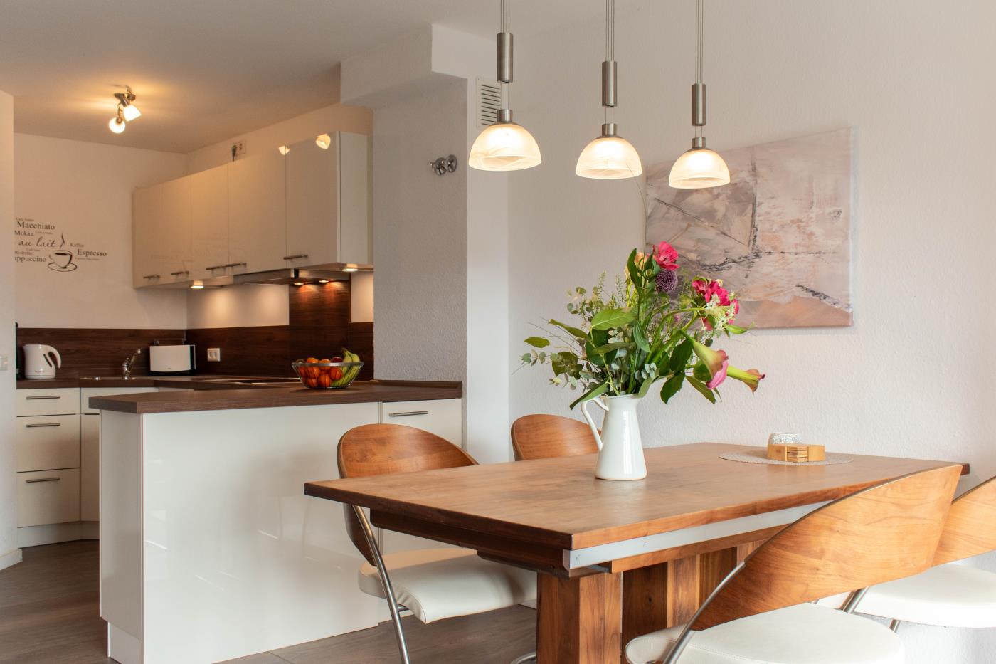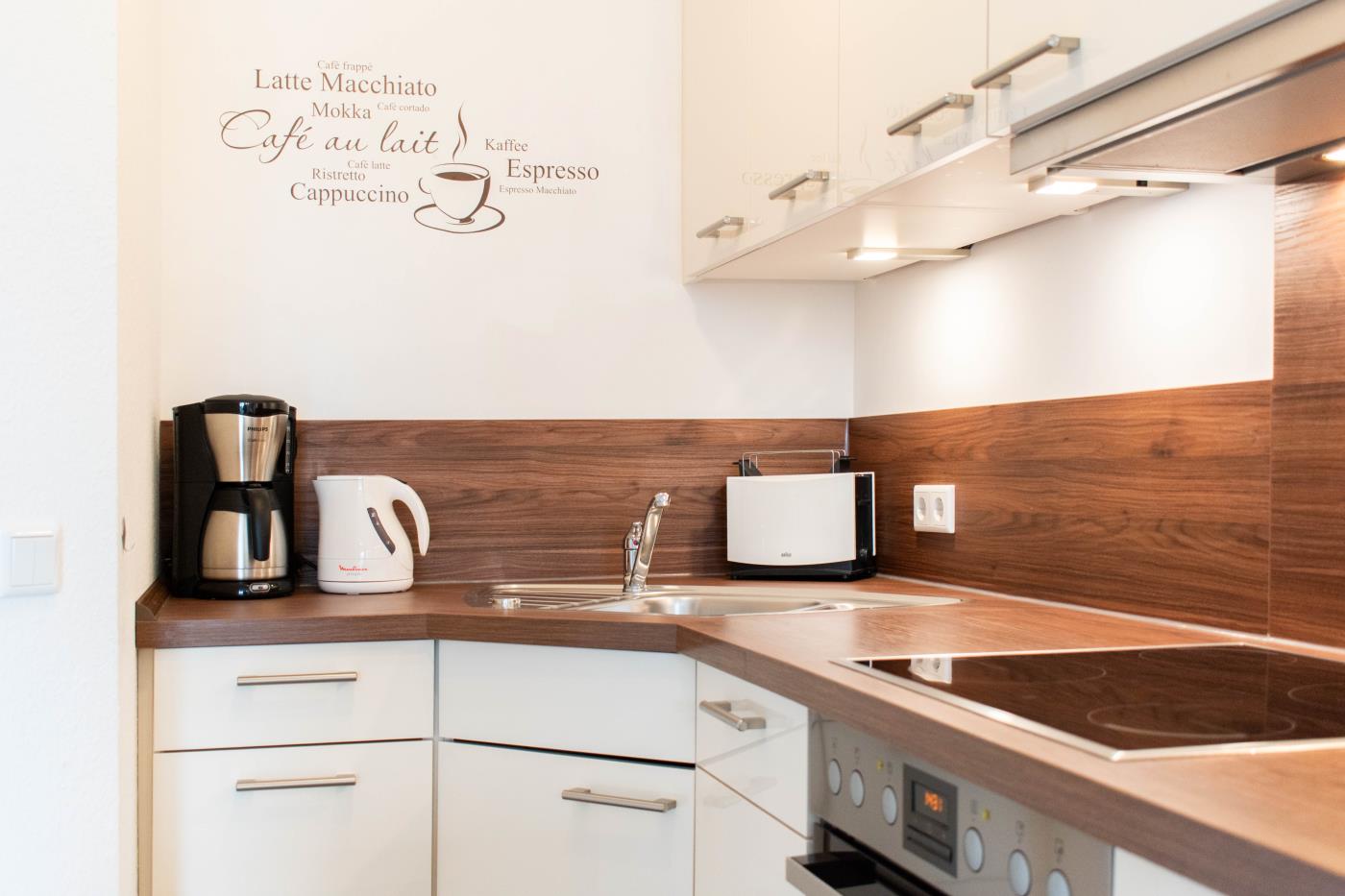 Die Wohnung ist hell und freundlich eingerichtet. Der Platz wurde optimal genutzt und die Ferienwohnung ist liebevoll dekoriert. Besonders das große Badezimmer überzeugt durch seinen mediterranen Flair.