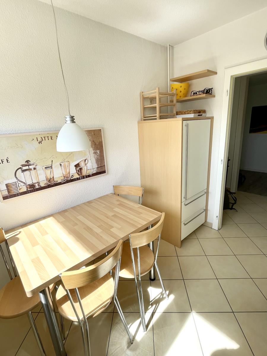 Die moderne Einbauküche verfügt über ein Cerankochfeld, Backofen, Kühlschrank mit Gefrierfach, Kaffeefiltermaschine, Senseo-Padmaschine und Kapsel-Maschine,Toaster, Wasserkocher, Spülmaschine und Essecke mit Esstisch.