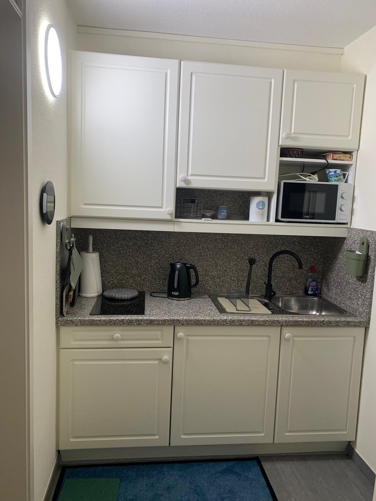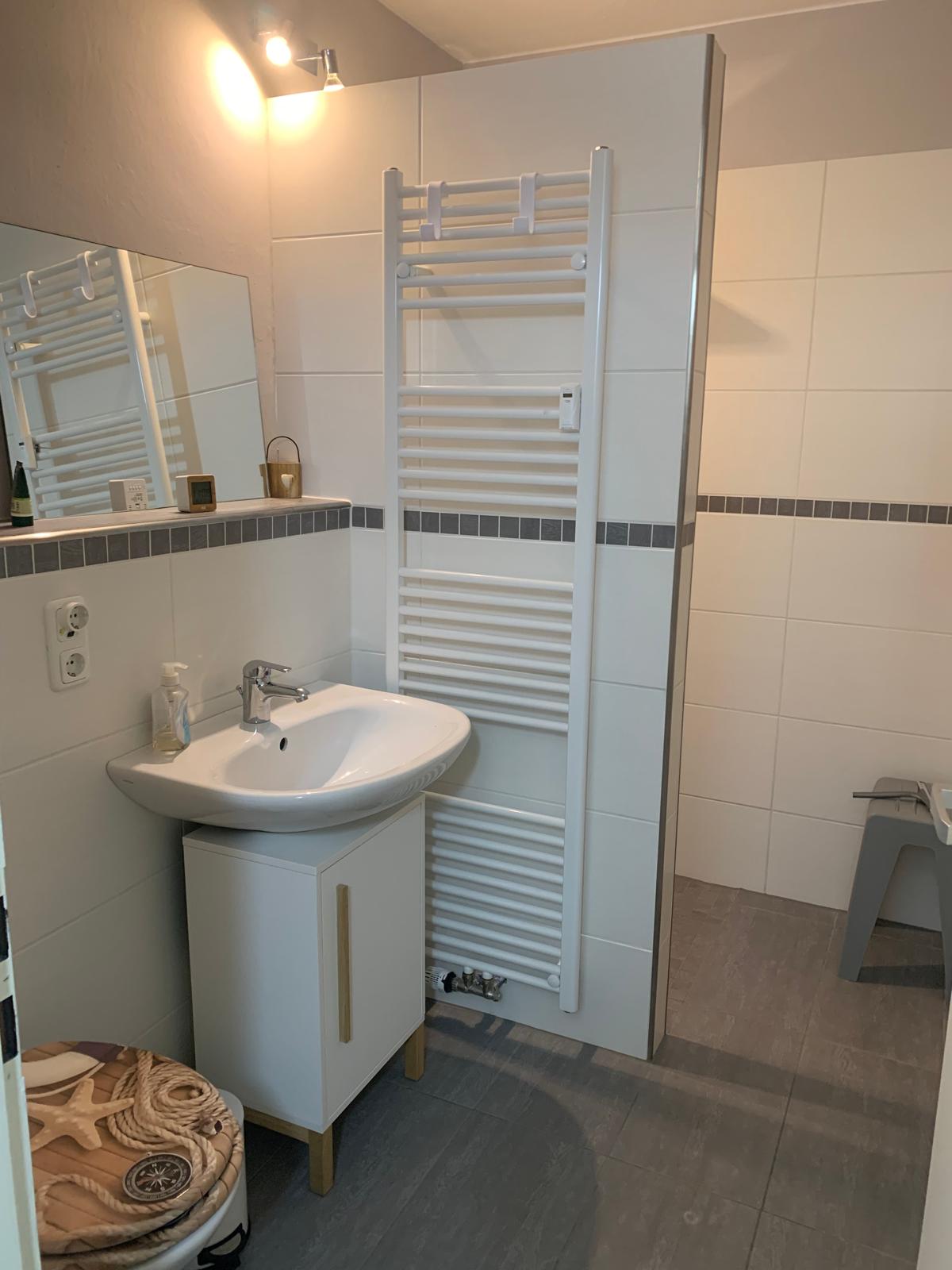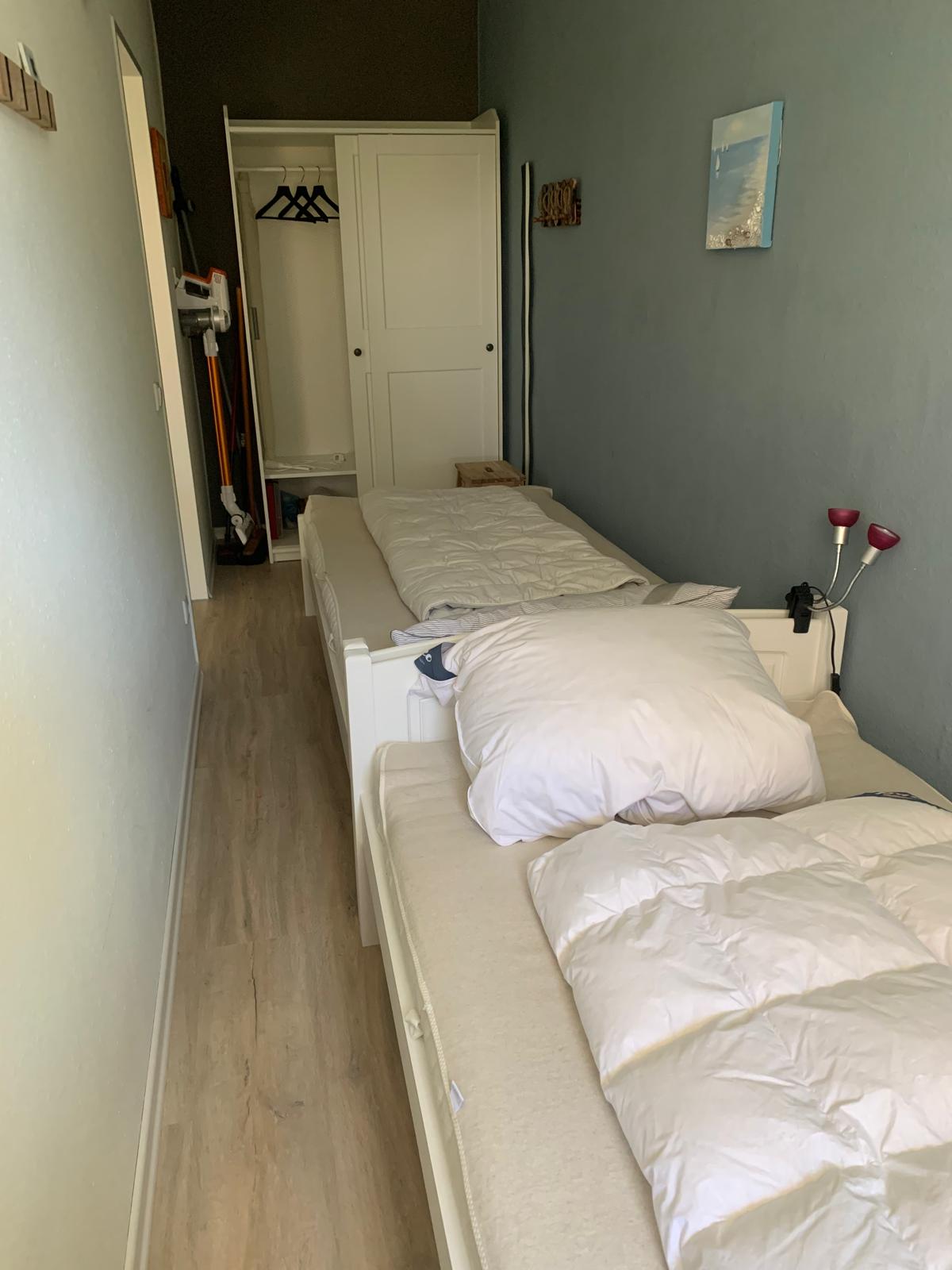 Die Fewo (Ostseite), ist 40 m² groß und befindet sich auf der 1. Etage im "Haus Lübeck". Sie ist für max. 4 Personen geeignet. Im Schlafzimmer befinden sich zwei Einzelbetten hintereinander und ein Kleiderschrank. Aus der gemütlichen Sitzecke im Wohnraum mit Funktionssofa können mit wenigen Handgriffen zwei Schlafplätze entstehen. Die komplett ausgestattete Küchenzeile bietet alle Möglichkeiten zur Selbstversorgung.