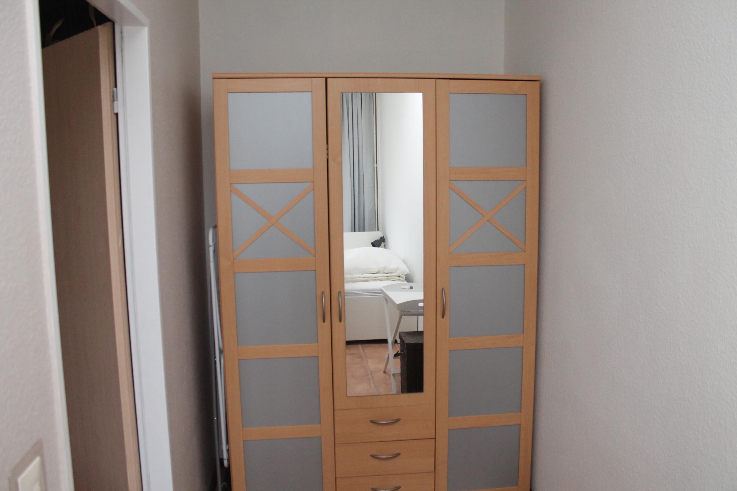 Die Fewo (Ostseite), ist 40 m² groß und befindet sich auf der 1. Etage im "Haus Lübeck". Sie ist für max. 4 Personen geeignet. Im Schlafzimmer befindet sich ein französisches Bett und ein Kleiderschrank. Aus der gemütlichen Sitzecke im Wohnraum mit Funktionssofa können mit wenigen Handgriffen zwei Schlafplätze entstehen. Die komplett ausgestattete Küchenzeile bietet alle Möglichkeiten zur Selbstversorgung.