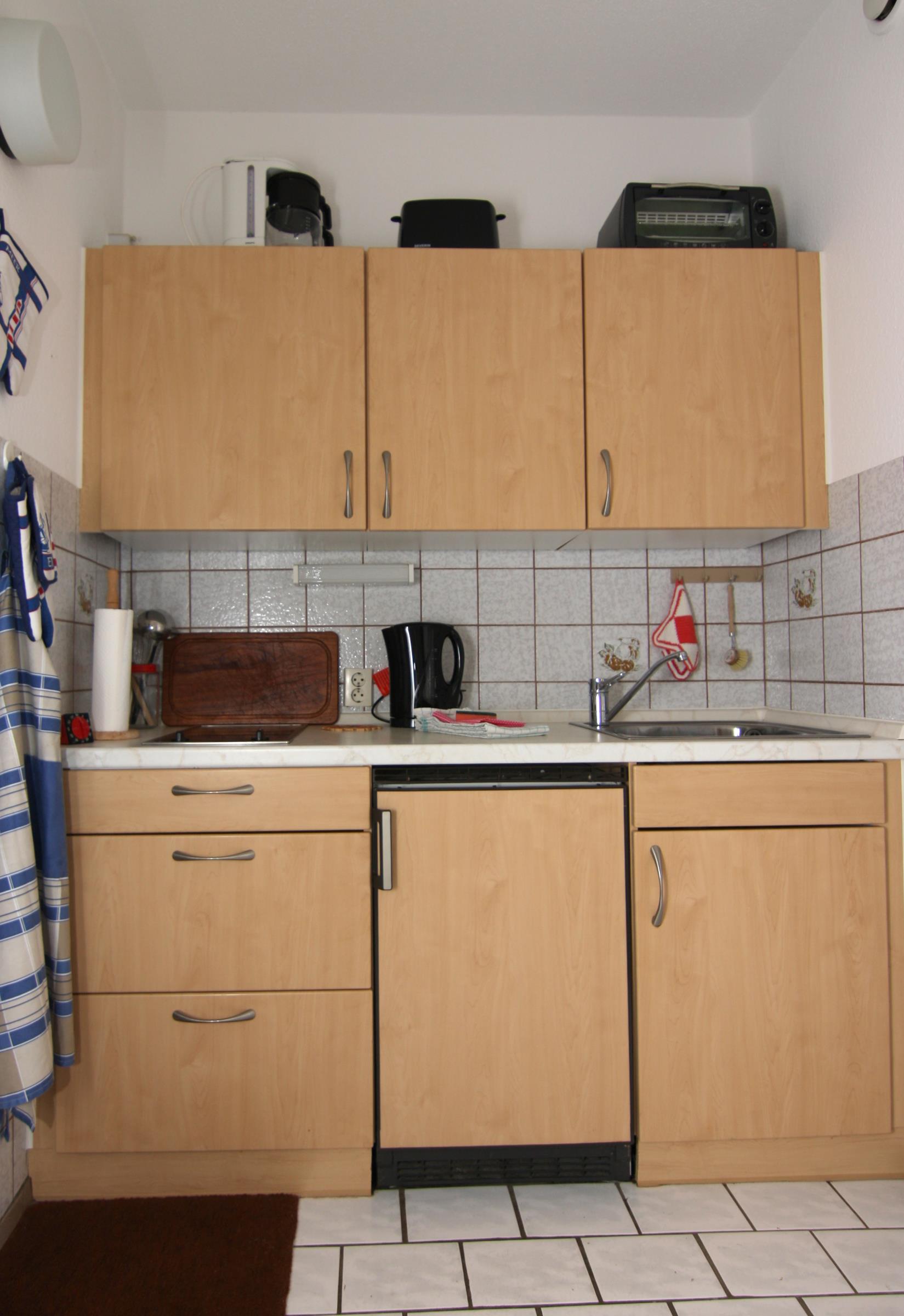 Die Küche ist komplett ausgestattet und bietet alles, was unsere Gäste zur Selbstversorgung benötigen. Das Bad ist mit Dusche ausgestattet. Der möblierte Balkon mit seiner traumhaften Aussicht (bei klarem Wetter bis nach Laboe) vermittelt zu jeder Tageszeit Urlausbfeeling pur.
