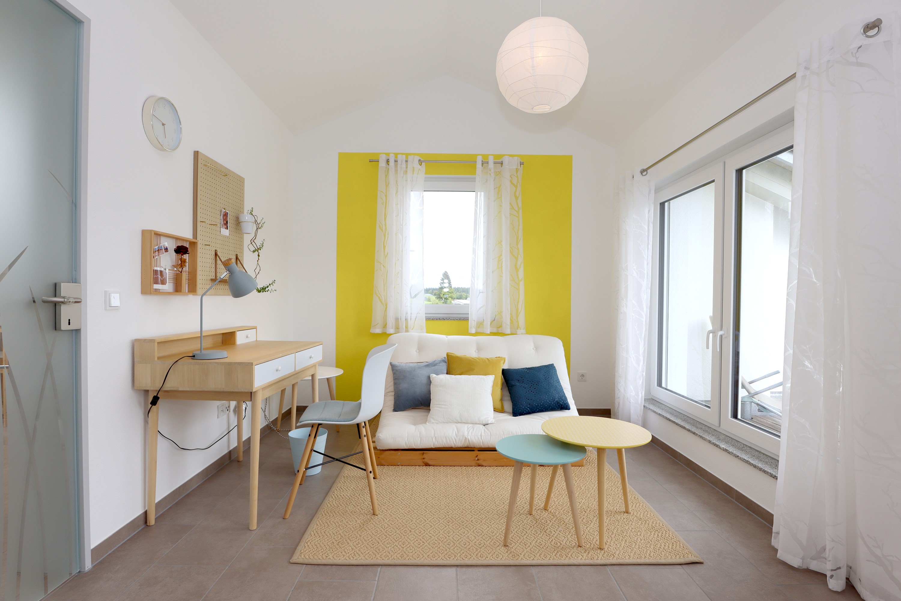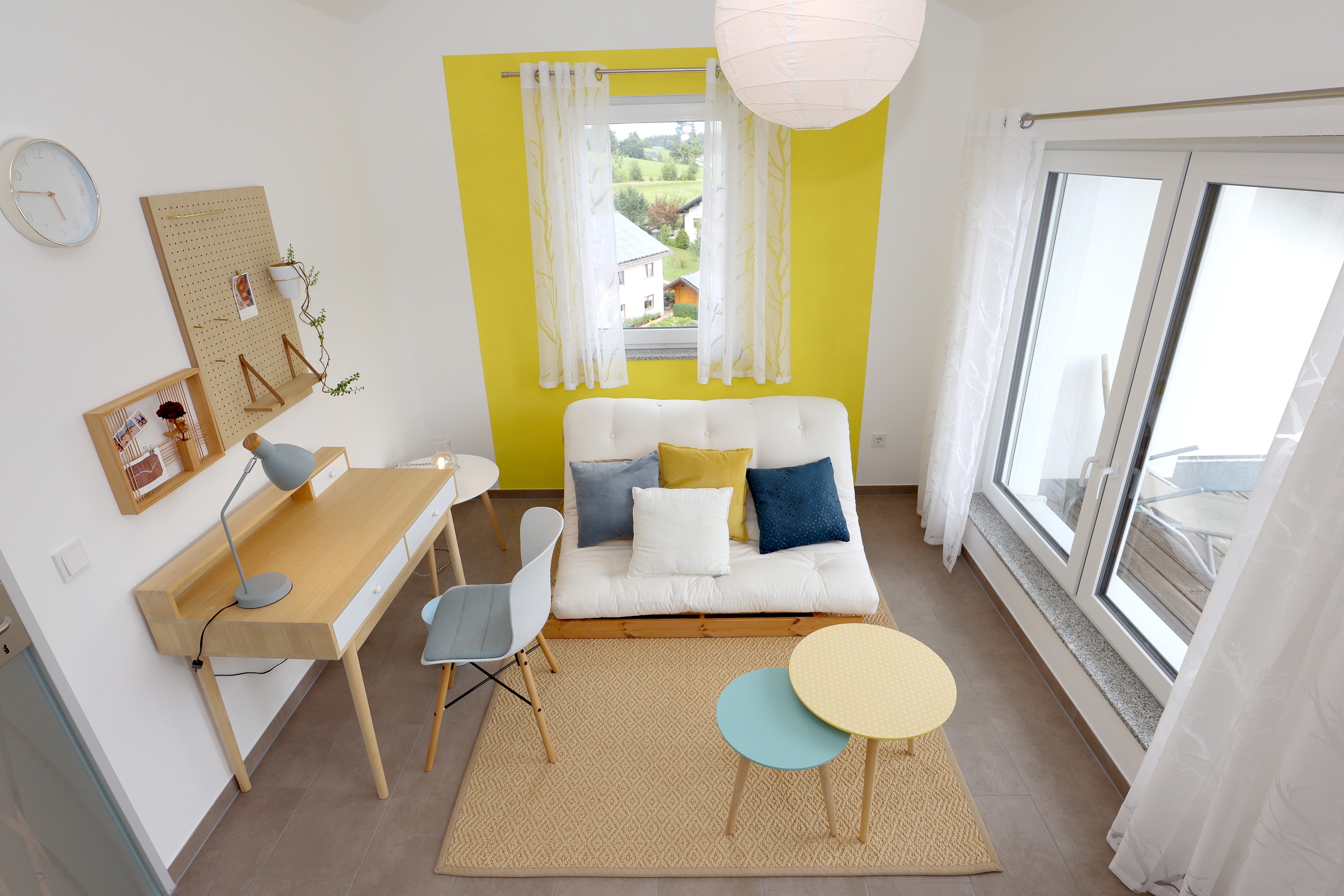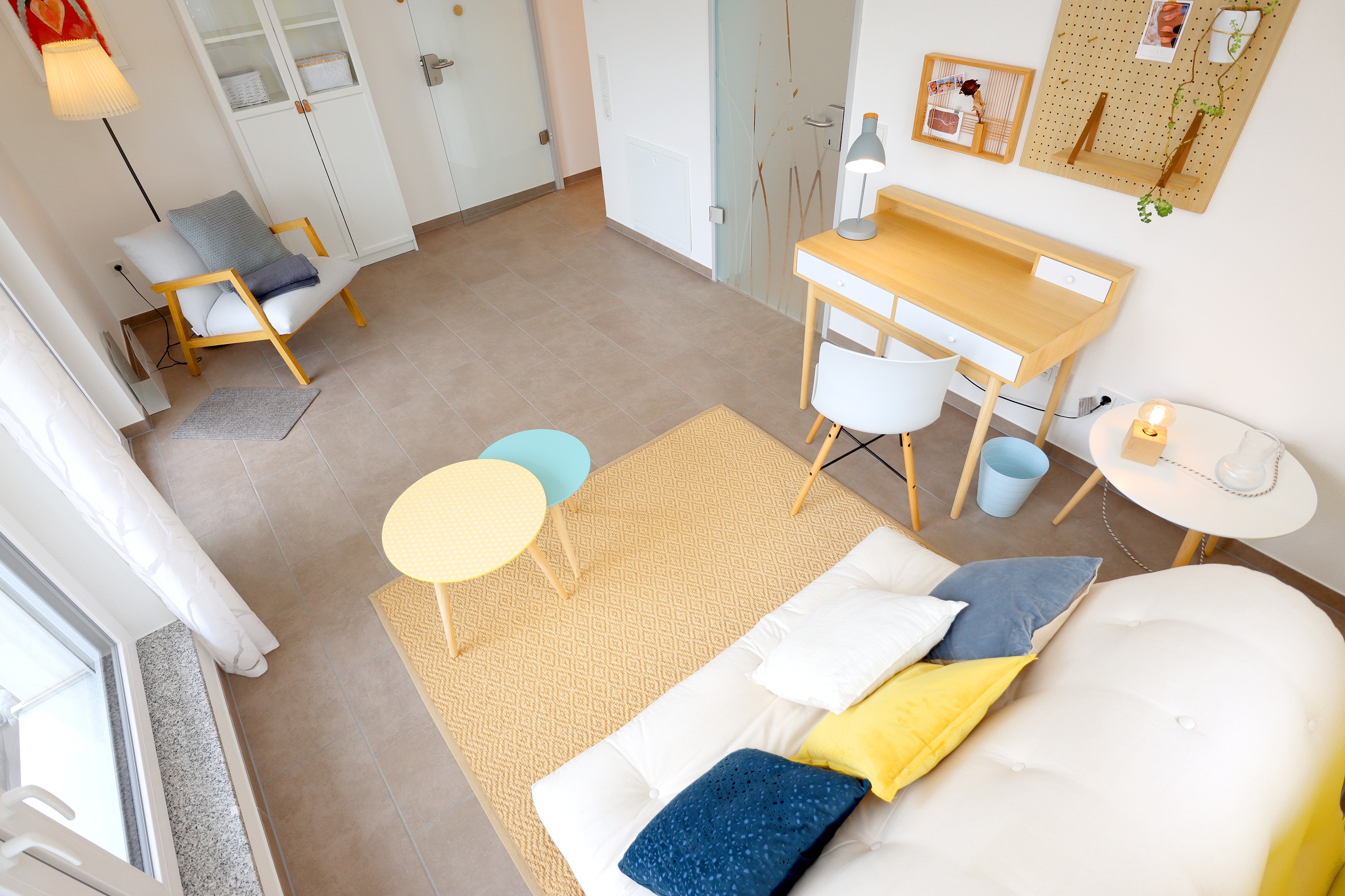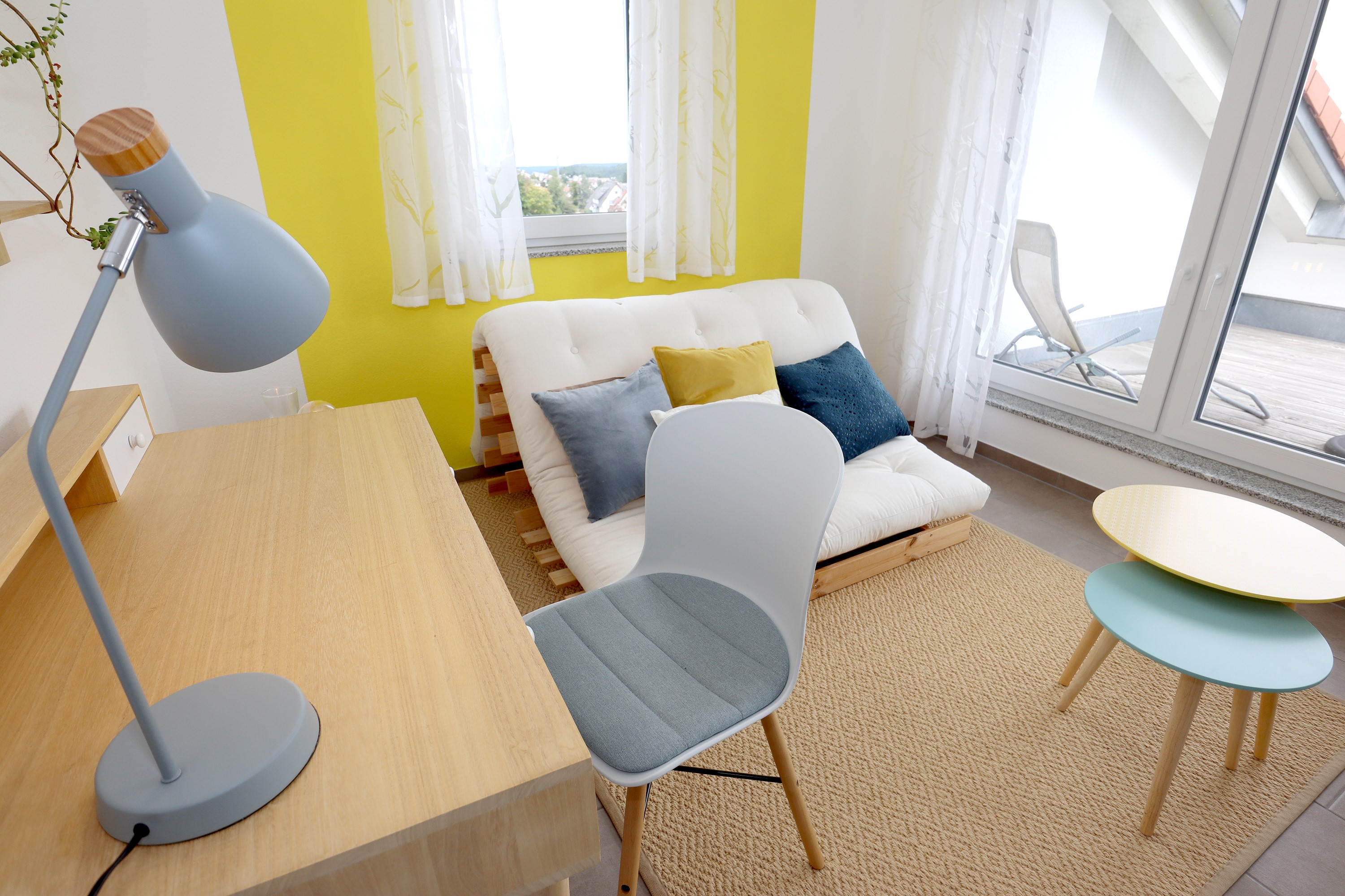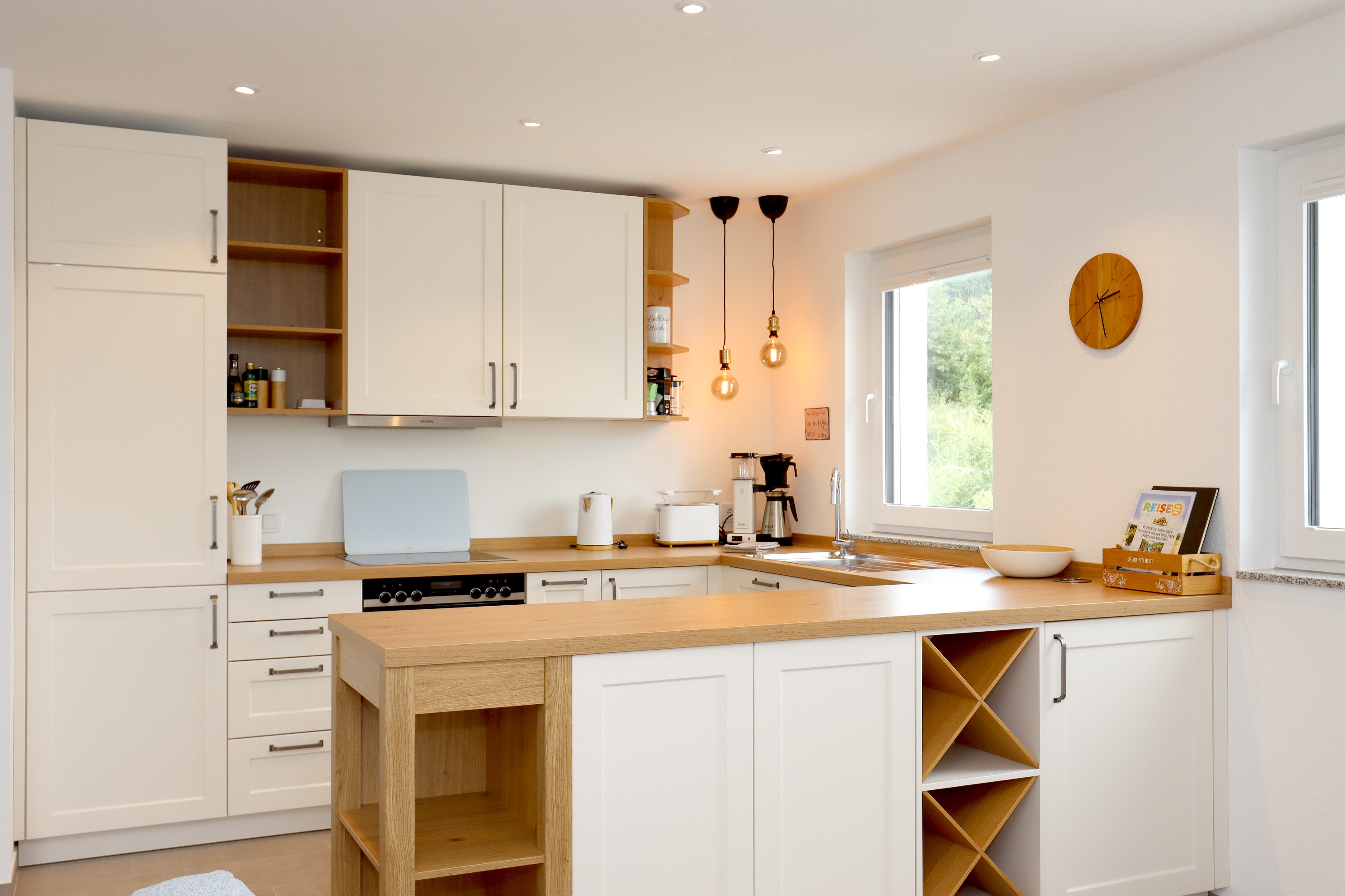 Großes Wohnzimmer mit Schlafsofa, TV und Stereoanlage Essbereich für vier Personen Voll ausgestattete Küche mit Ceranfeld, Backofen, Spülmaschine, Kühlschrank, Kaffeemaschine, Espressokocher und weiteren Extras Schlafzimmer mit höhenverstellbarem Komfortbett (Einzel- oder Doppelbett möglich) Modernes, barrierefreies Badezimmer mit Regendusche und Waschmaschine Stockwerk mit extra Zimmer, Bad mit Badewanne, Sofa und DachterrasseUmgebung