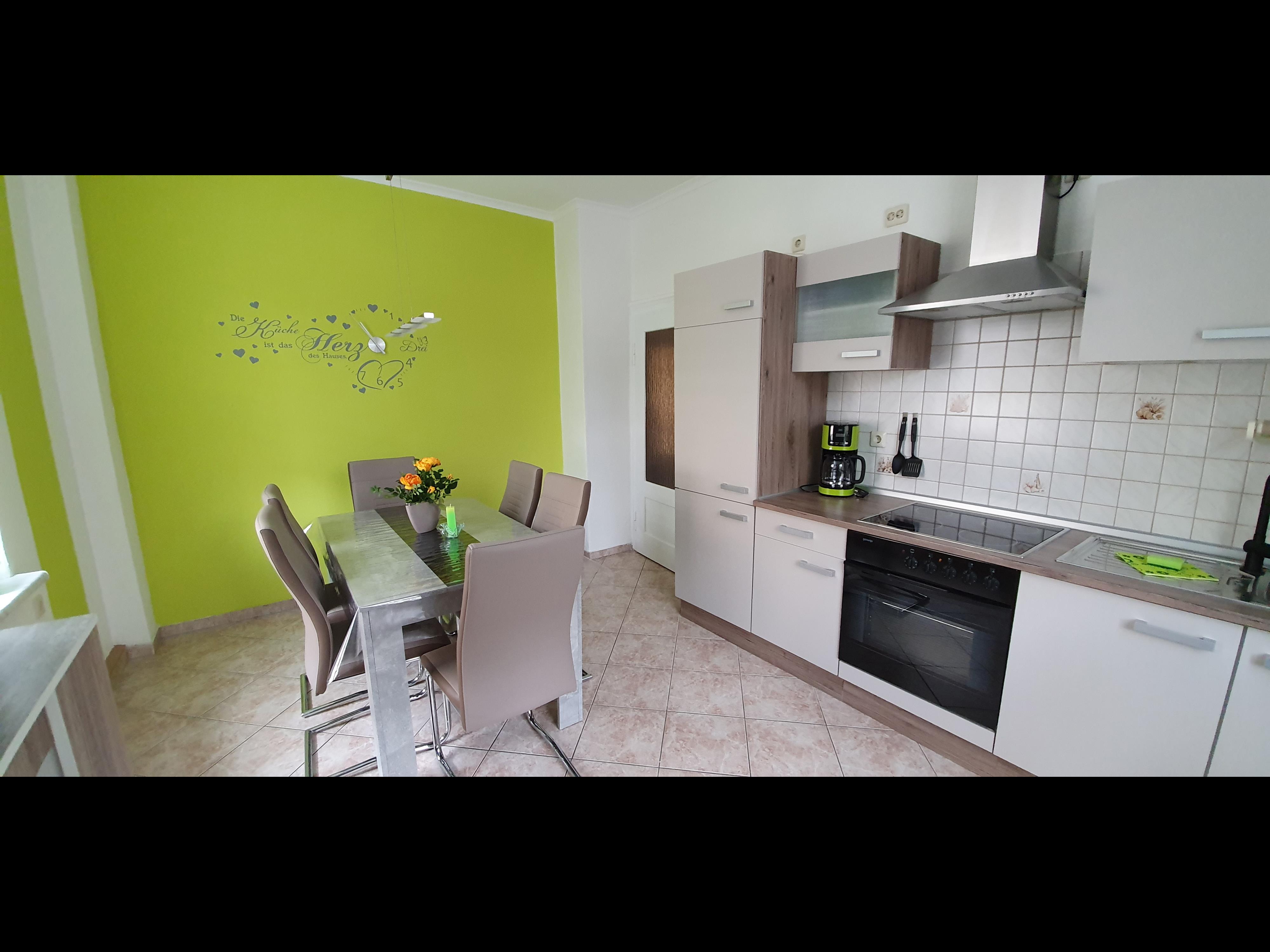 Liebevoll eingerichtete, neue Ferienwohnung mit allem was das Urlauberherz braucht. Unsere schöne Wohnung ist vom Frühstücksbrettchen bis zur Waschmaschine voll ausgestattet. Sie verfügt über 2 Schlafzimmer, ein Wohnzimmer, eine große Küche und ein großes Bad mit Dusche und Badewanne. Zur Ferienwohnung gehört ebenfalls ein PKW Stellplatz. All das finden unsere Gäste im Grünen, aber trotzdem zentrumnah. Die Wohnung verfügt über ein modernes Schlafzimmer mit Boxspringbett und großem Schrank. Der zweite Schlafraum besitzt eine zum Doppelbett ausklappbare Schlafcouch sowie Schrank, einen Tisch und Schwingsessel. Im Wohnzimmer befindet sich neben Schrank und Schwingsessel eine bequeme Eckcouch, die ebenfalls zum Doppelbett umfunktioniert werden kann. Die Küche ist komplett eingerichtet inkl. Kühlschrank mit Gefrierfach, Backofen und Mikrowelle sowie einer gemütlichen Essgruppe. Genießen Sie Ihren Aufenthalt bei uns im schönen Erzgebirge.