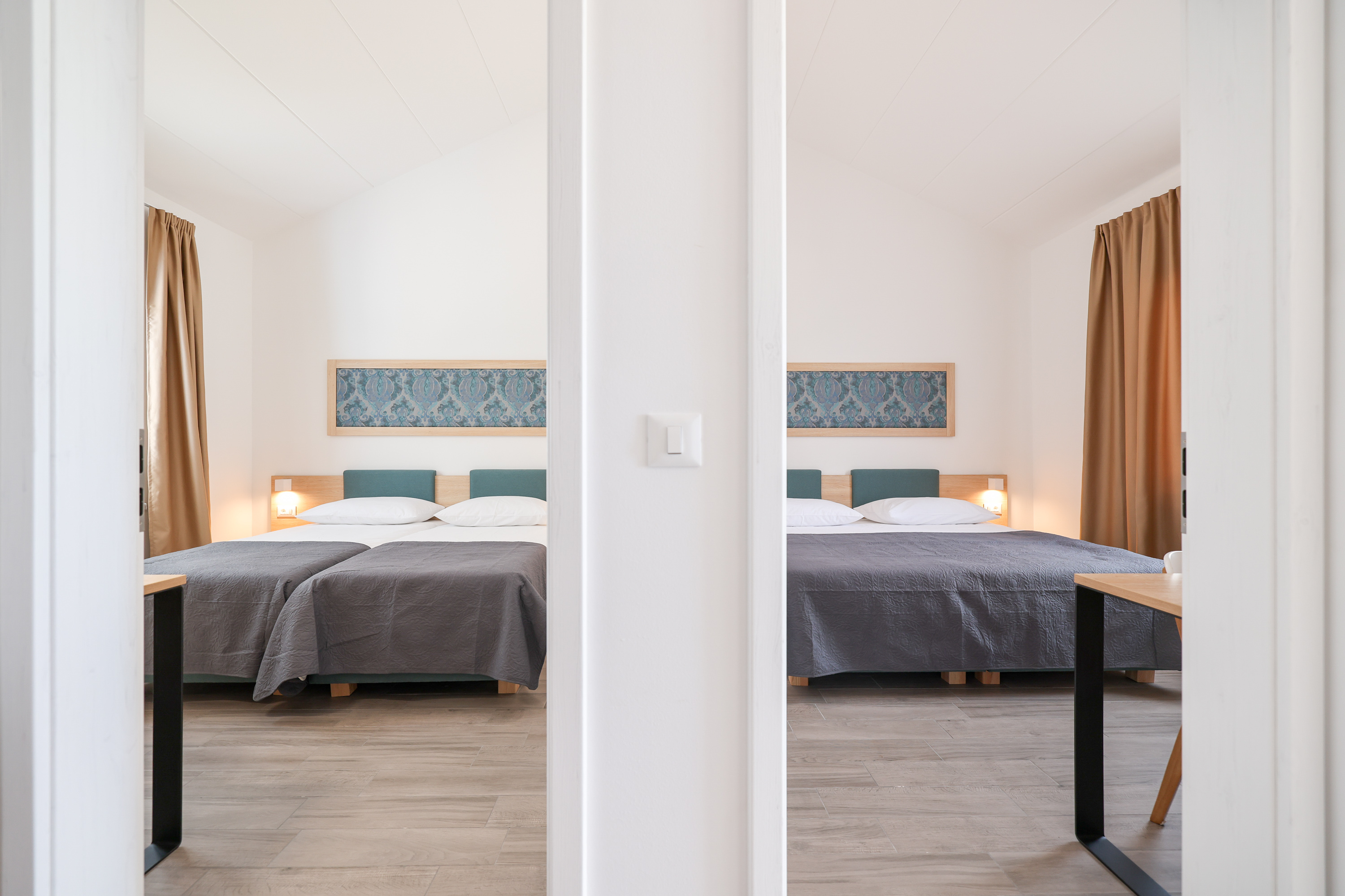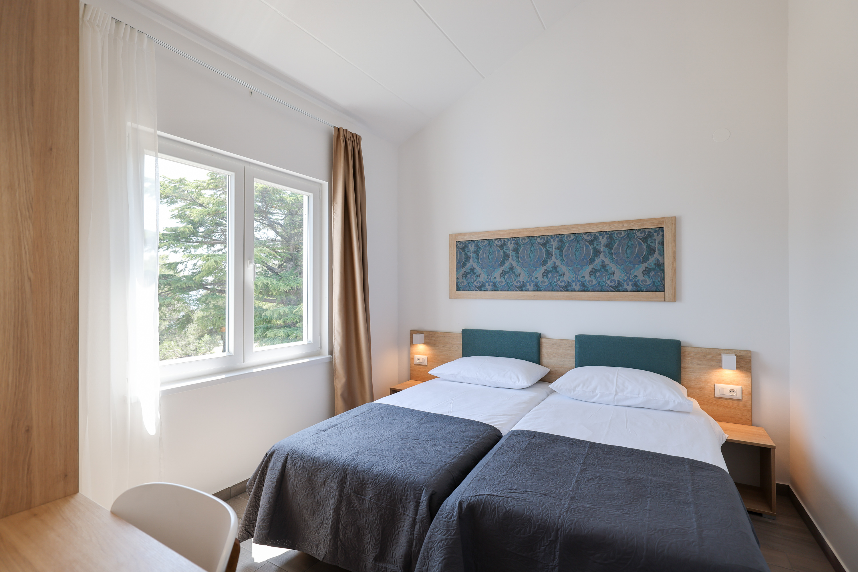 Die Superior Dreizimmer-Wohnung befindet sich im ersten Stock und bietet Platz für max. 5 Personen (davon 1 Kind bis 12 Jahre). Die Wohnung verfügt über zwei Schlafzimmer die mit einem Doppelbett oder zwei Einzelbetten ausgestattet sind. Zusätzlich bietet das Schlafsofa im Wohnbereich eine weitere Schlafmöglichkeit. Die vollausgestattete Küche verfügt über einen Induktionsherd, Geschirr, Besteck, Kochtöpfe, Wasserkocher, Filterkaffeemaschine, Mikrowelle und einen Kühlschrank mit Eisfach. Ein SAT-Fernseher und Klimaanlage sind ebenfalls vorhanden. Das Badezimmer bietet eine Dusche, ein Waschbecken und ein WC. Zusätzlich gibt es eine separate Toilette mit einem weiteren WC. Zum Entspannen im Freien lädt der möblierte Balkon mit Tisch und Stühlen ein. Fahrzeit ab kroatischer Grenze ca. 5h. Hinweis: Wenn Sie mehr als eine Unterkunft benötigen, ist dies bei uns in der Regel möglich, da wir über mehrere Objekte des gleichen Haustyps verfügen.