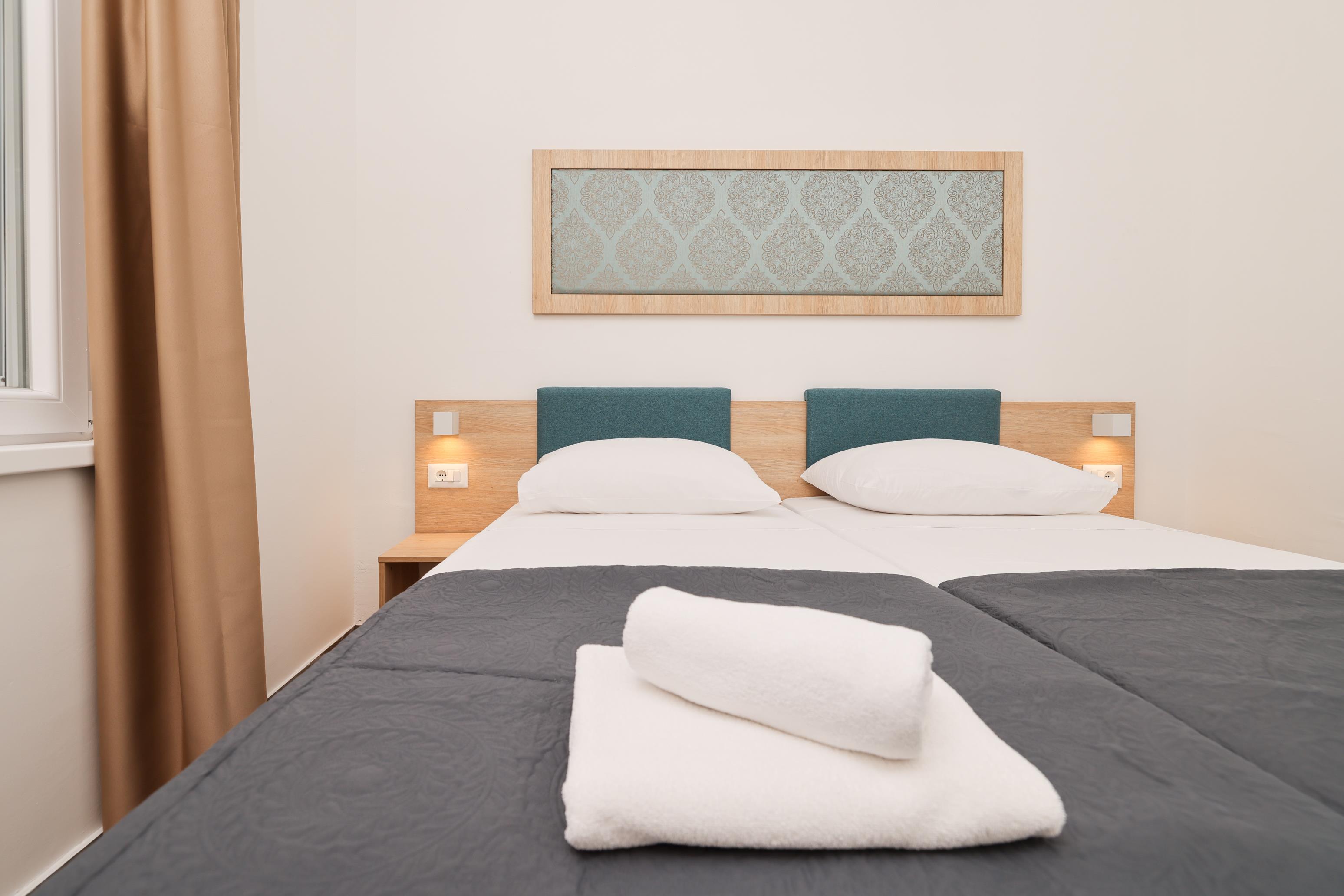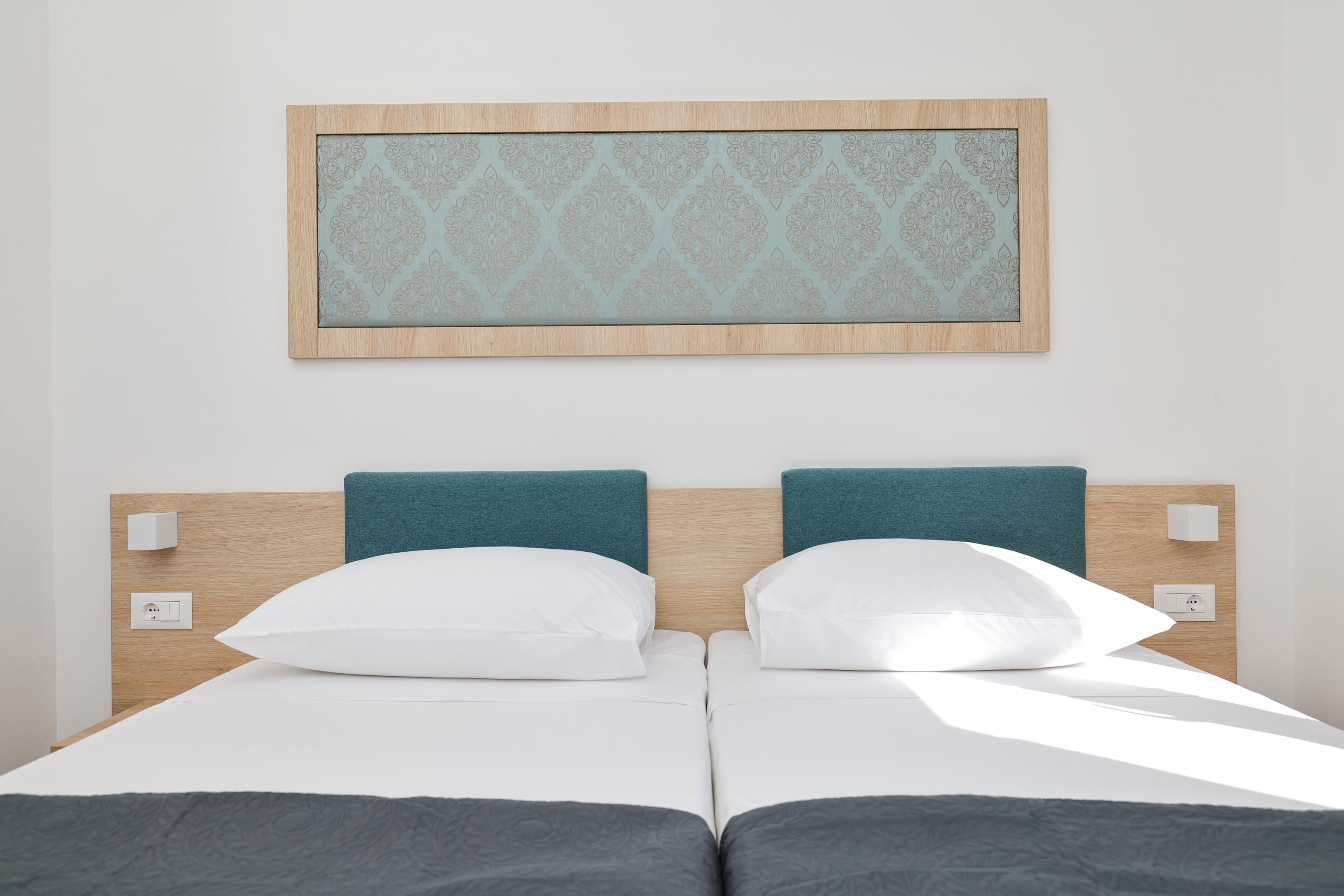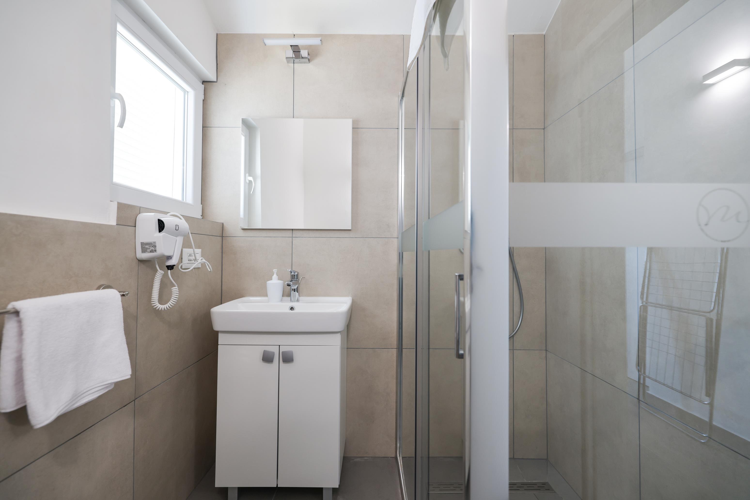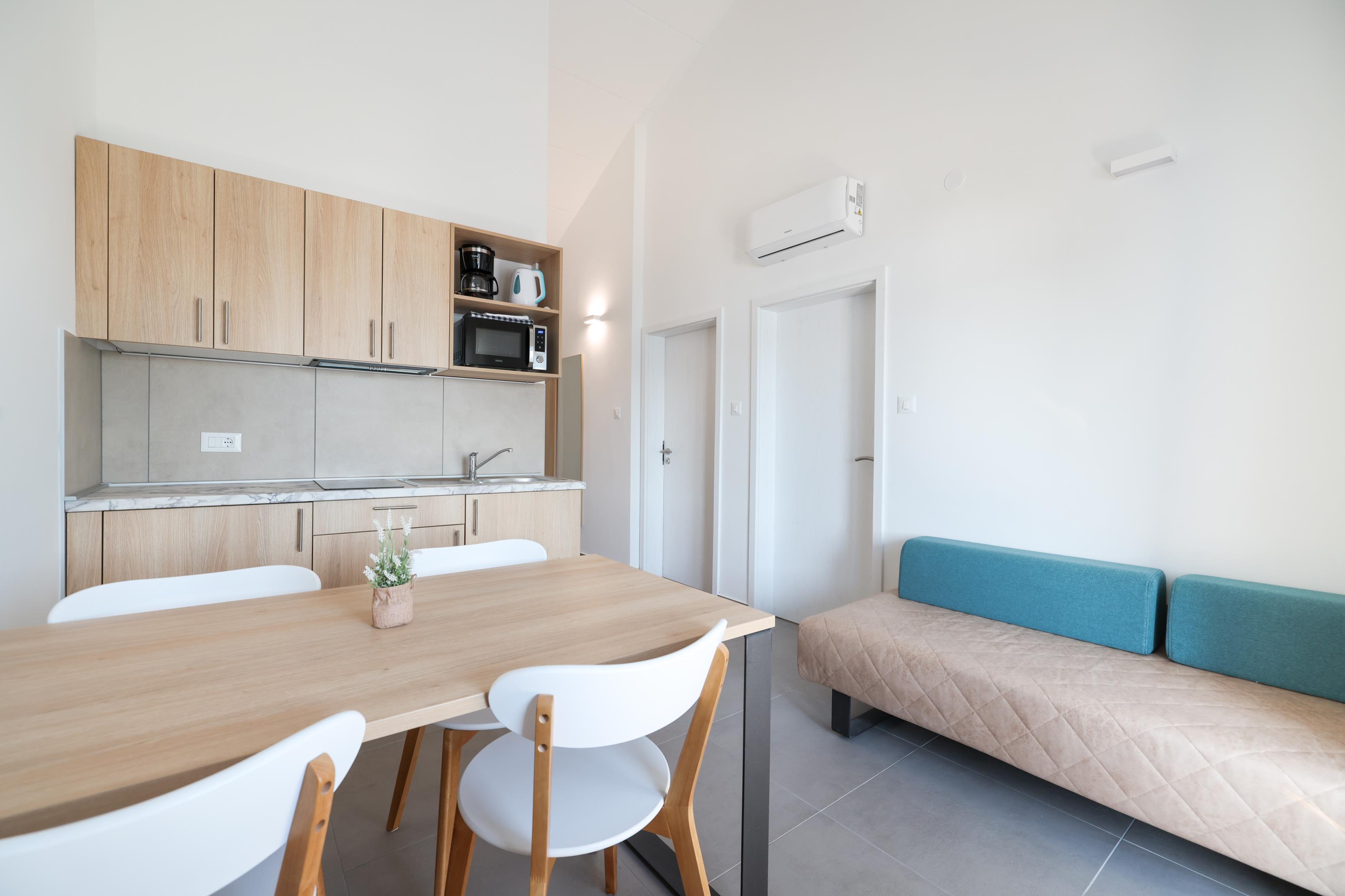 Die Superior Dreizimmer-Wohnung in Meeresnähe befindet sich im ersten Stock und bietet Platz für max. 5 Personen (davon 1 Kind bis 12 Jahre). Die Wohnung verfügt über zwei Schlafzimmer die mit einem Doppelbett oder zwei Einzelbetten ausgestattet sind. Zusätzlich bietet das Schlafsofa im Wohnbereich eine weitere Schlafmöglichkeit. Die vollausgestattete Küche verfügt über einen Induktionsherd, Geschirr, Besteck, Kochtöpfe, Wasserkocher, Filterkaffeemaschine, Mikrowelle und einen Kühlschrank mit Eisfach. Ein SAT-Fernseher und Klimaanlage sind ebenfalls vorhanden. Das Badezimmer bietet eine Dusche, ein Waschbecken und ein WC. Zusätzlich gibt es eine separate Toilette mit einem weiteren WC. Zum Entspannen im Freien lädt der möblierte Balkon mit Tisch und Stühlen ein. Fahrzeit ab kroatischer Grenze ca. 5h. Hinweis: Wenn Sie mehr als eine Unterkunft benötigen, ist dies bei uns in der Regel möglich, da wir über mehrere Objekte des gleichen Haustyps verfügen.