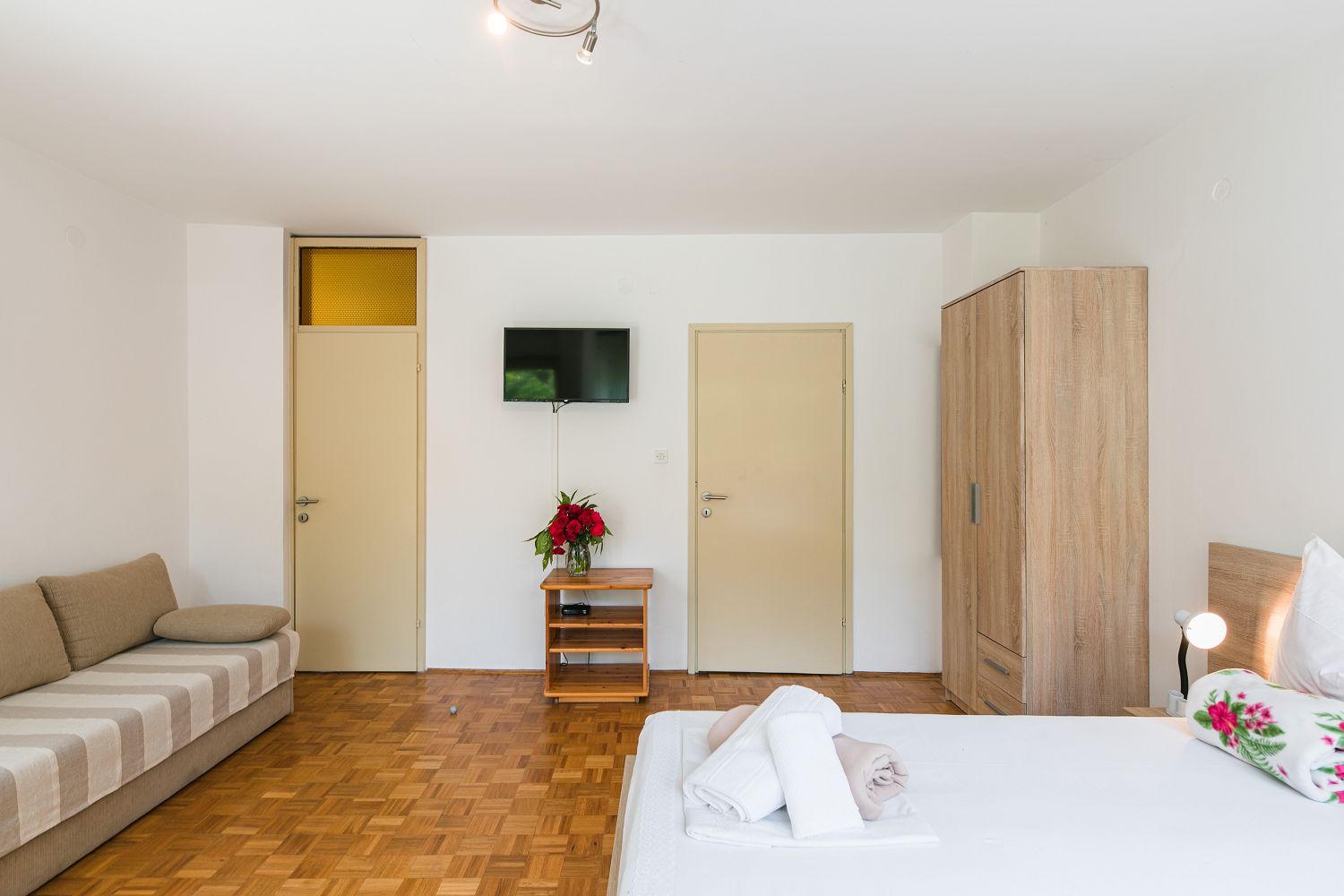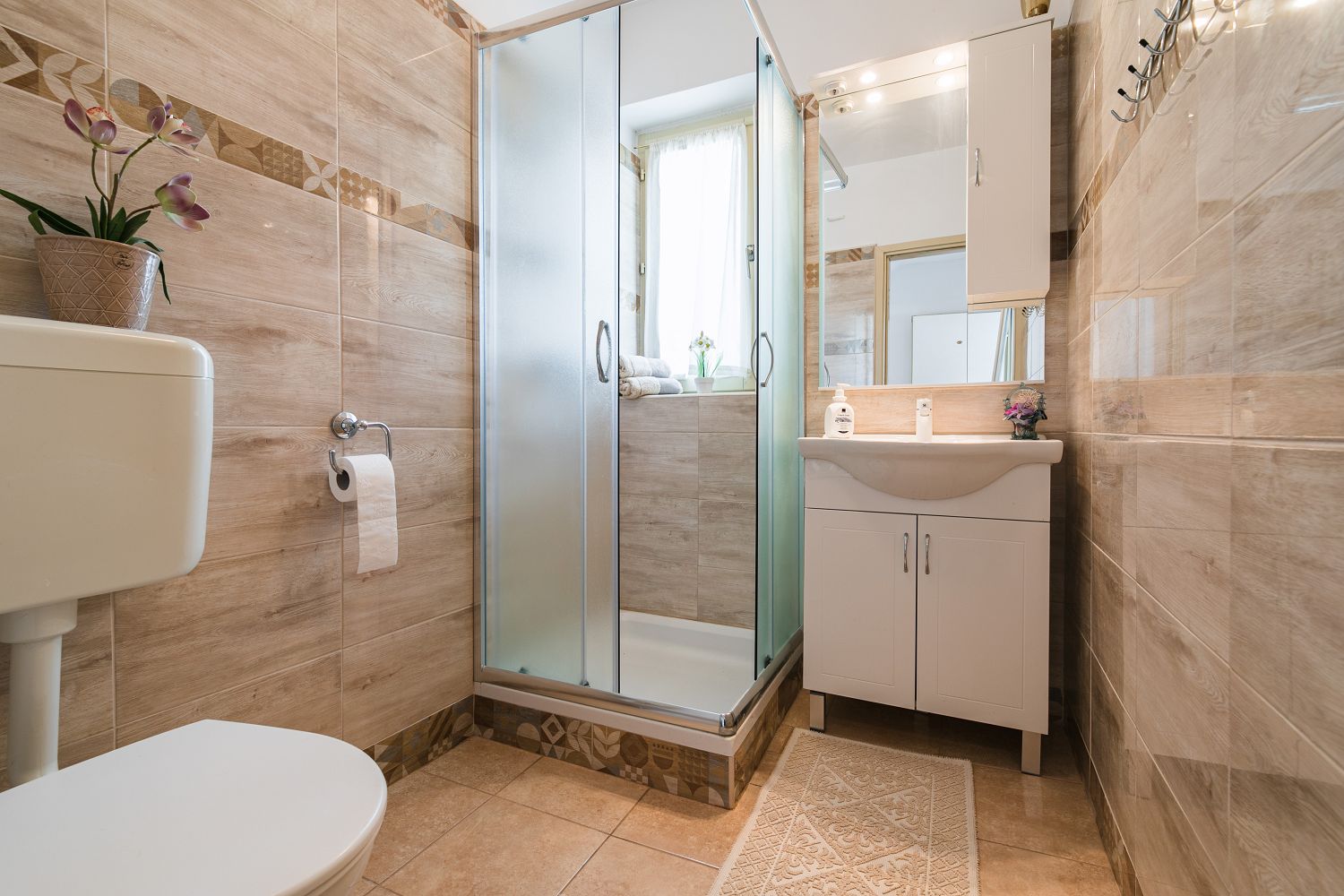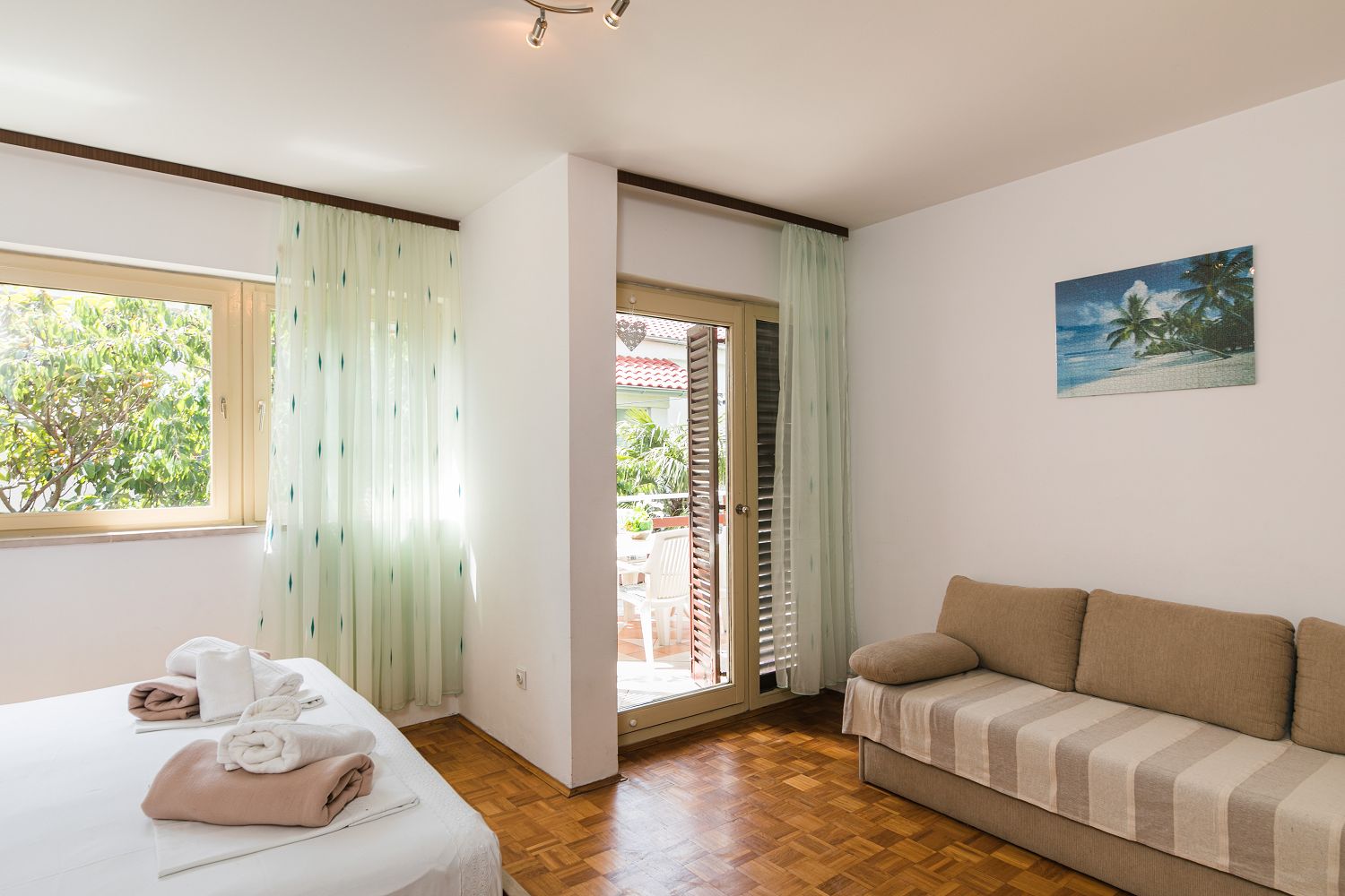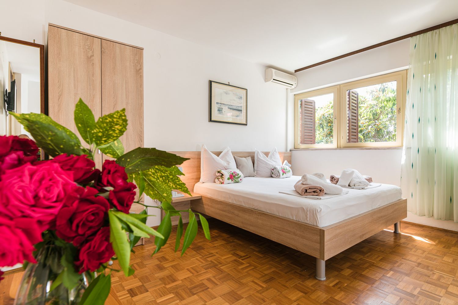 Selce gehört zur Gemeinde Crikvenica, einem Urlaubsziel vieler deutschsprachiger Touristen. Die für vier Personen geeignete Wohnung besteht aus einem Eingangsbereich, einem Esszimmer mit Küche, einem Schlafzimmer mit Doppelbett und Meerblick sowie einem Schlafzimmer zur Hinterseite des Hauses. Vom Schlafzimmer aus gelangt man auf einen Balkon mit Meerblick. Der Balkon ist über das Schlafzimmer mit Meerblick zugänglich. Der Parkplatz befindet sich auf dem Privatgrundstück.