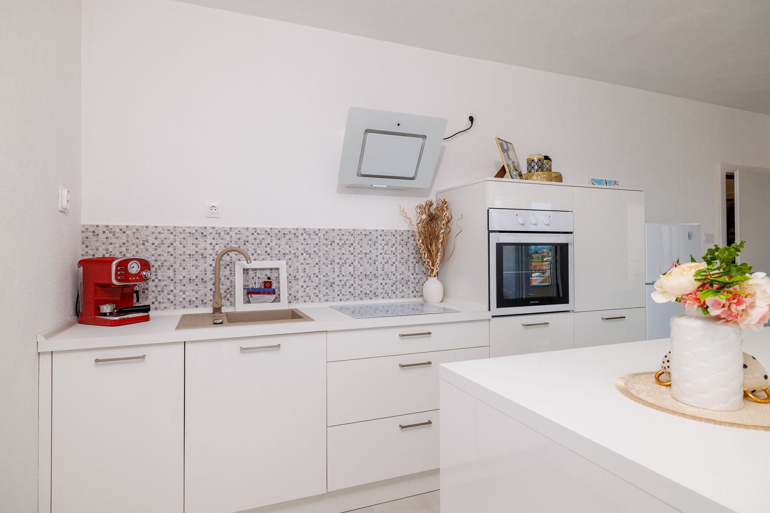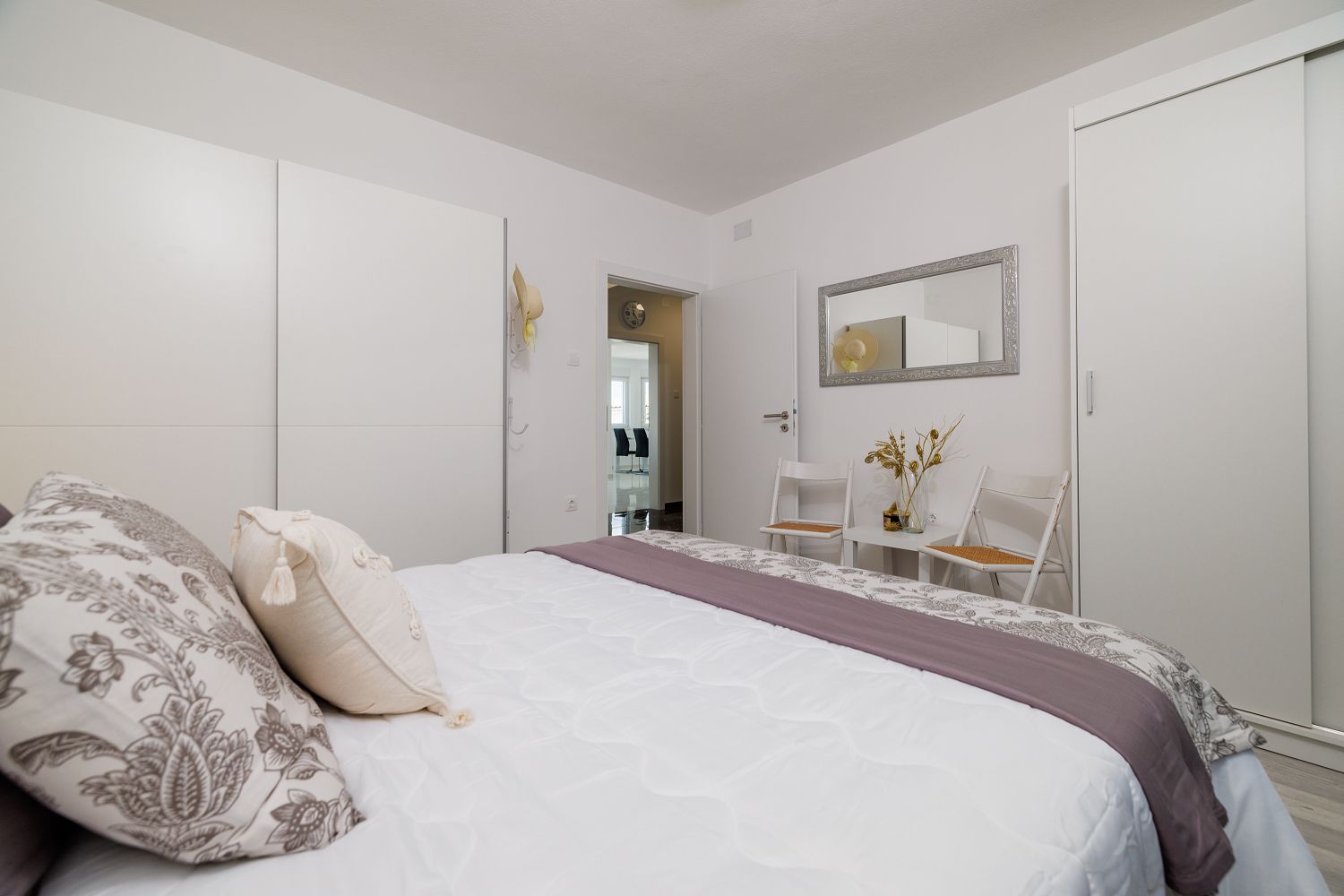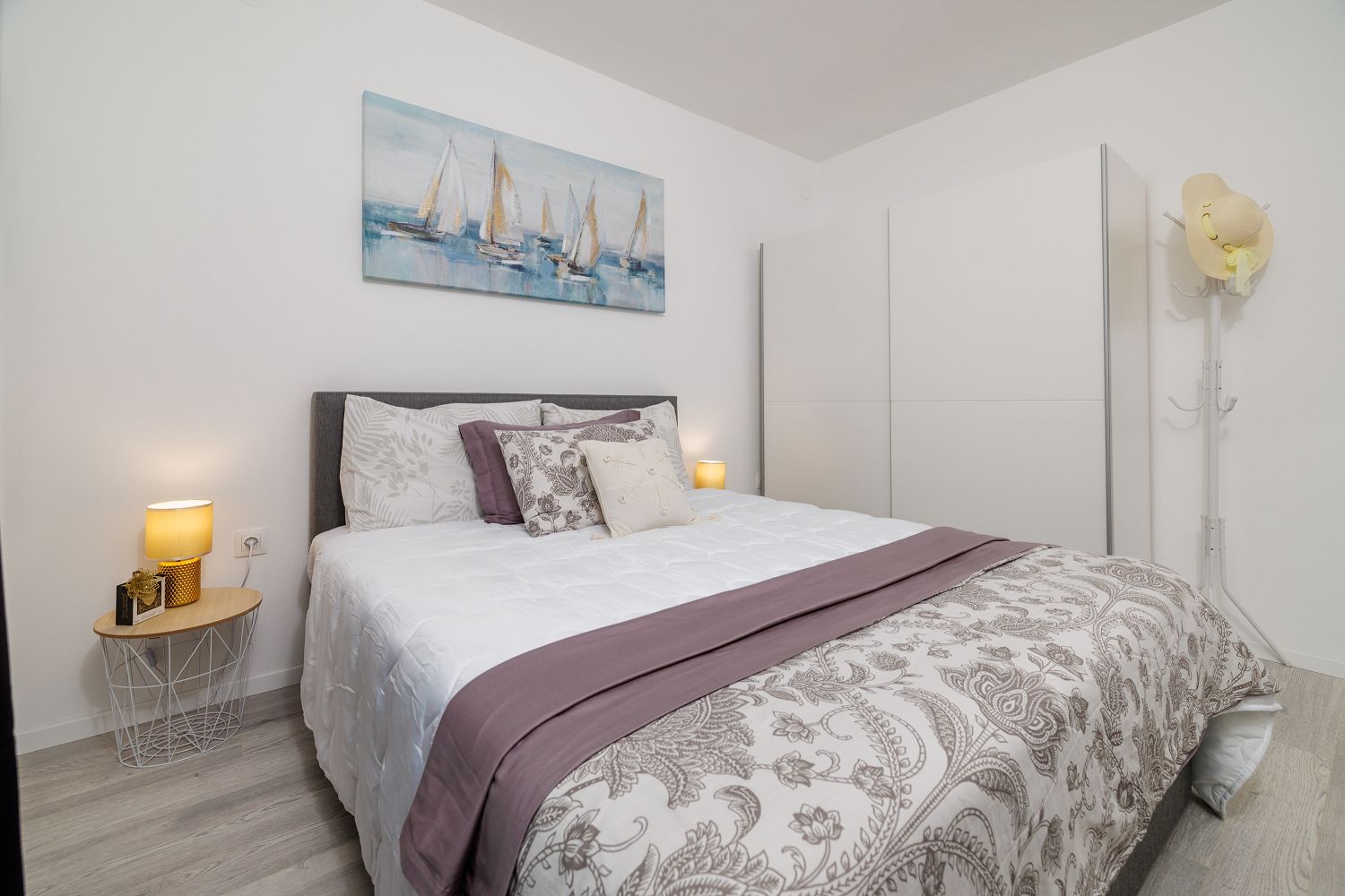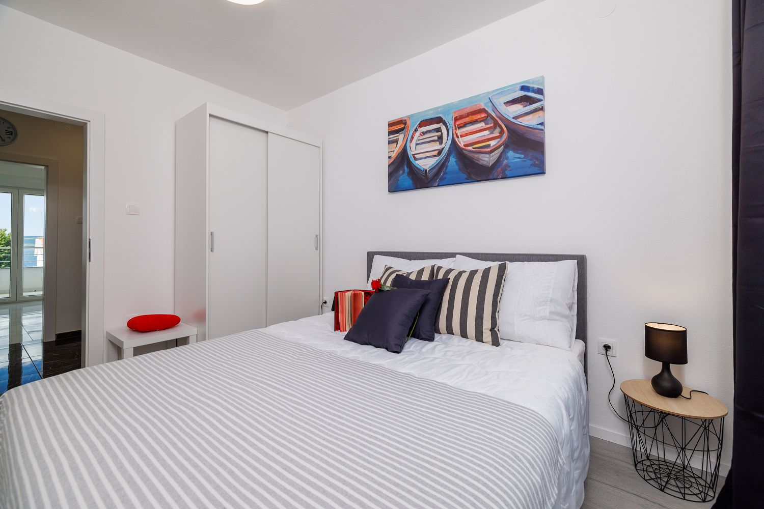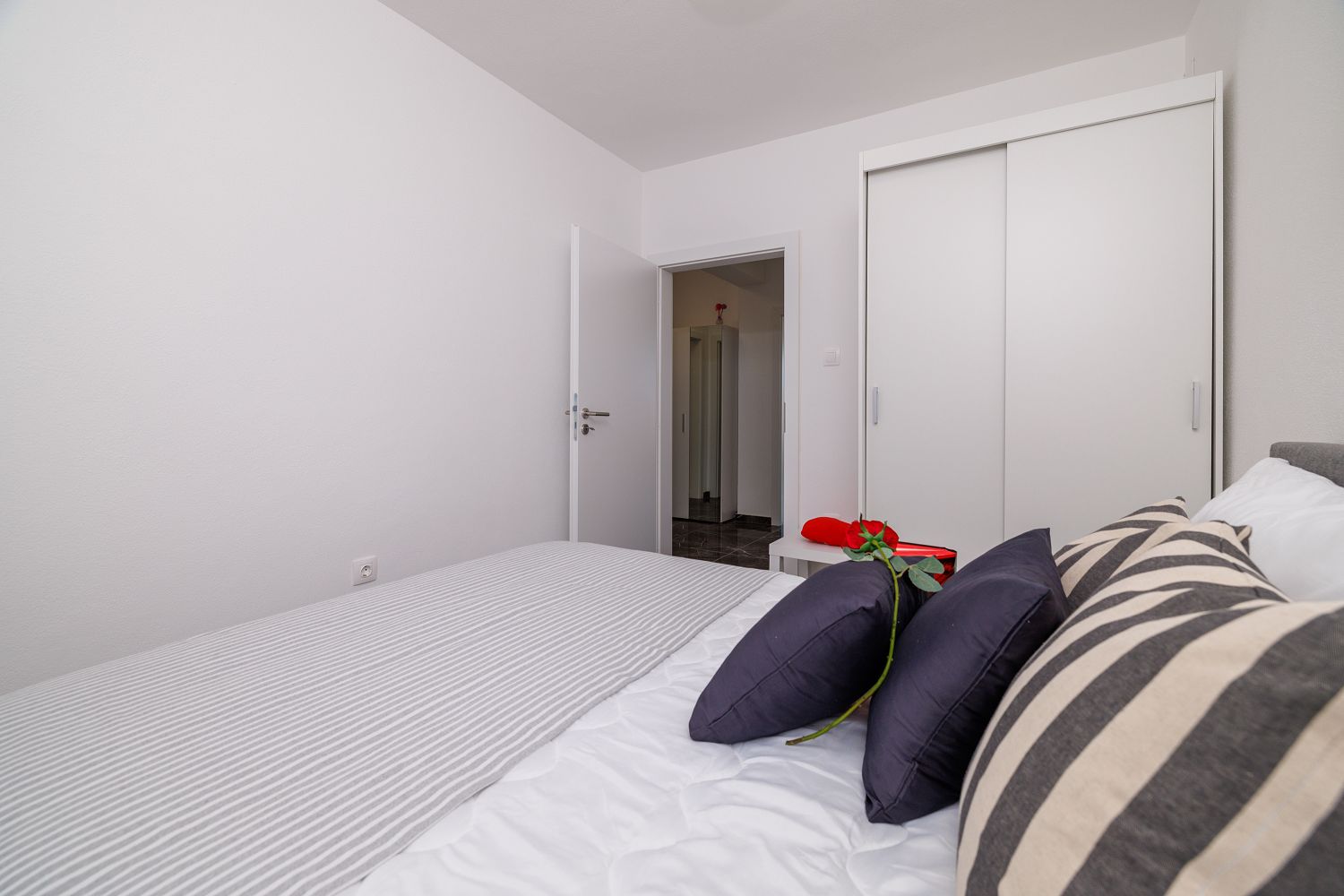 Diese großräumige Ferienwohnung liegt im ersten Obergeschoss eines Familienhauses und verfügt über einen Wohn-/Essbereich mit Küche und Meerblick, zwei Schlafzimmer und ein Badezimmer. Die Unterkunft bietet Internet, Klimaanlage im Wohnbereich, einen Balkon mit Meerblick, eine Waschmaschine und einen privaten Parkplatz. Vom Objekt bis zum Strand sind es 650 Meter und die Entfernung zum Zentrum beträgt 300 Meter. Das nächstgelegenste Lebensmittelgeschäft befindet sich 200 Meter von der Ferienimmobilie entfernt. In 215 Metern ist das umliegende Restaurant zu erreichen.