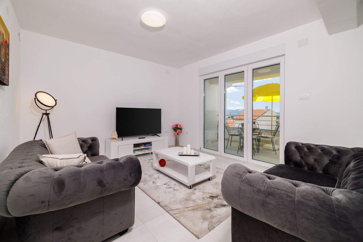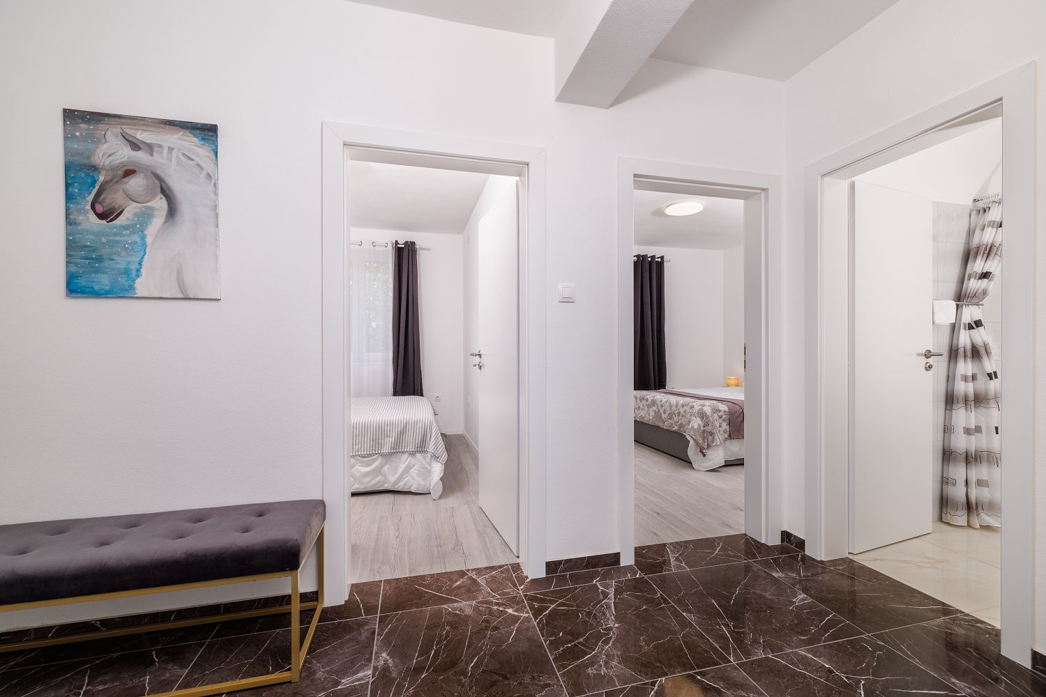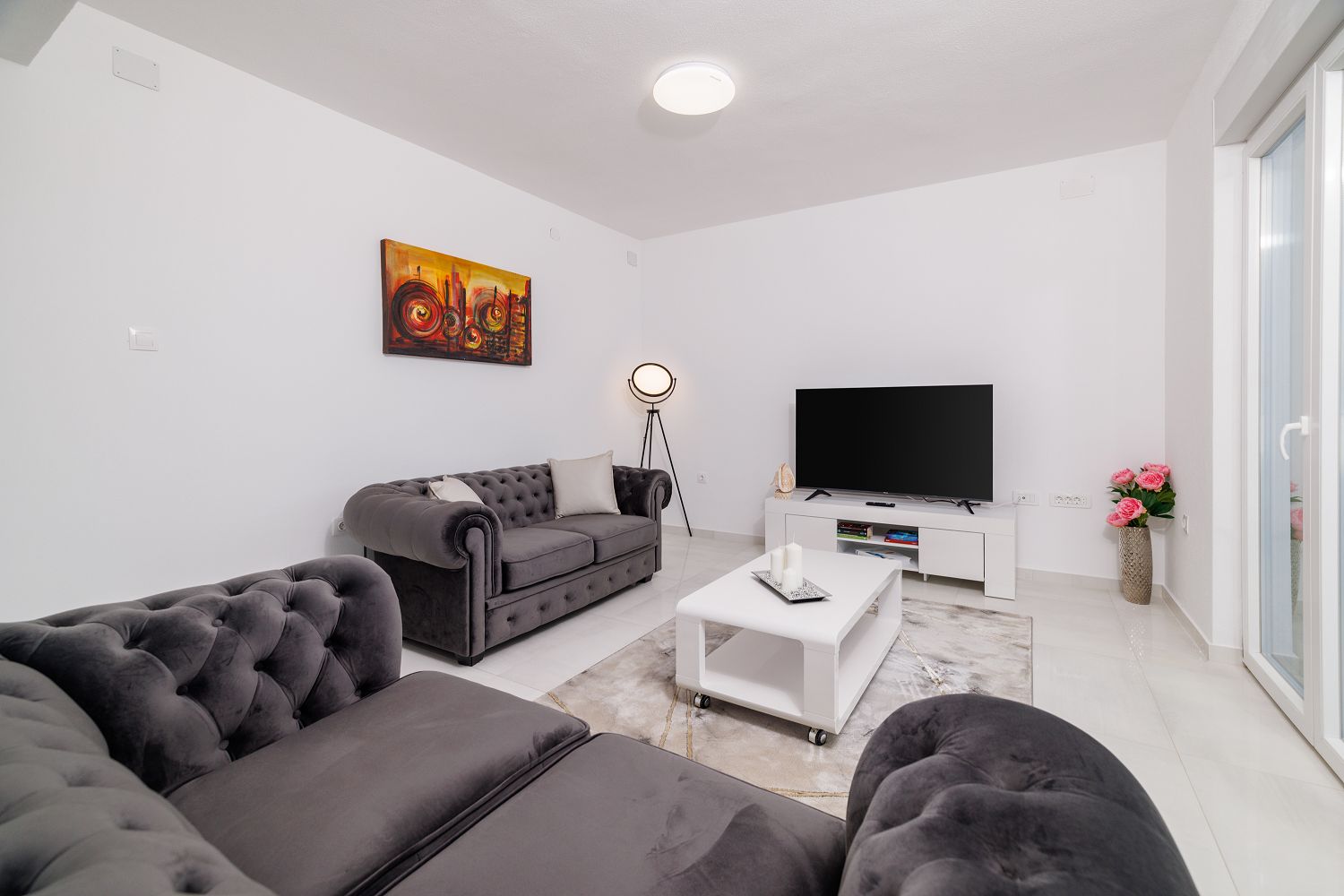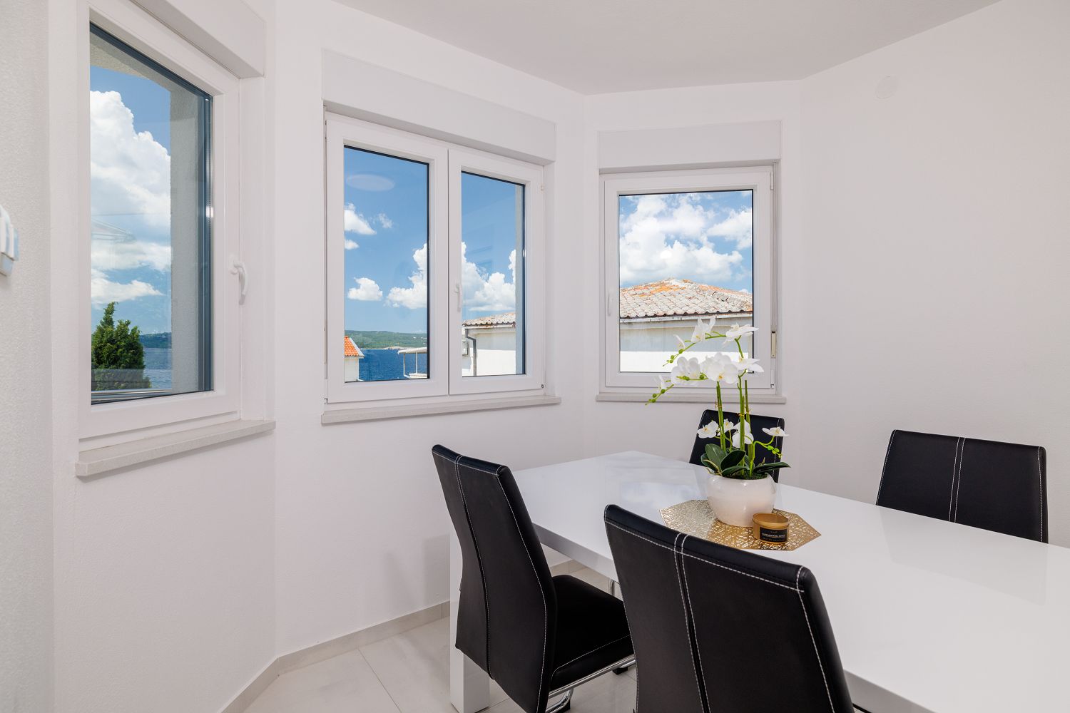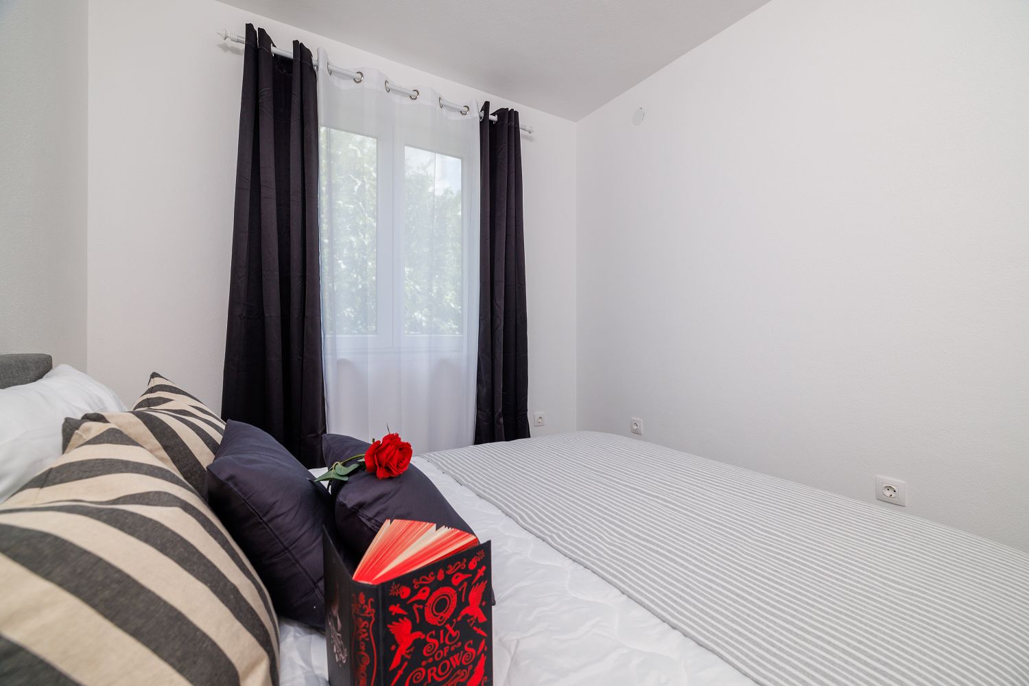 Diese großräumige Ferienwohnung liegt im ersten Obergeschoss eines Familienhauses und verfügt über einen Wohn-/Essbereich mit Küche und Meerblick, zwei Schlafzimmer und ein Badezimmer. Die Unterkunft bietet Internet, Klimaanlage im Wohnbereich, einen Balkon mit Meerblick, eine Waschmaschine und einen privaten Parkplatz. Vom Objekt bis zum Strand sind es 650 Meter und die Entfernung zum Zentrum beträgt 300 Meter. Das nächstgelegenste Lebensmittelgeschäft befindet sich 200 Meter von der Ferienimmobilie entfernt. In 215 Metern ist das umliegende Restaurant zu erreichen.