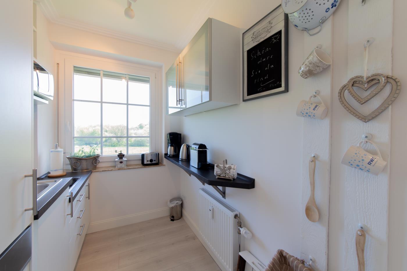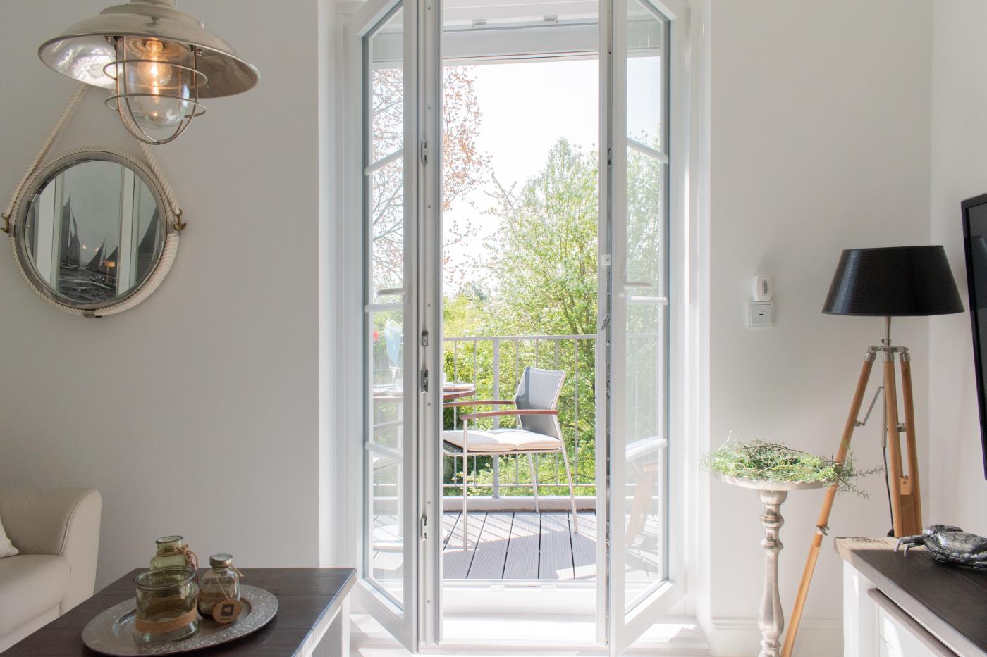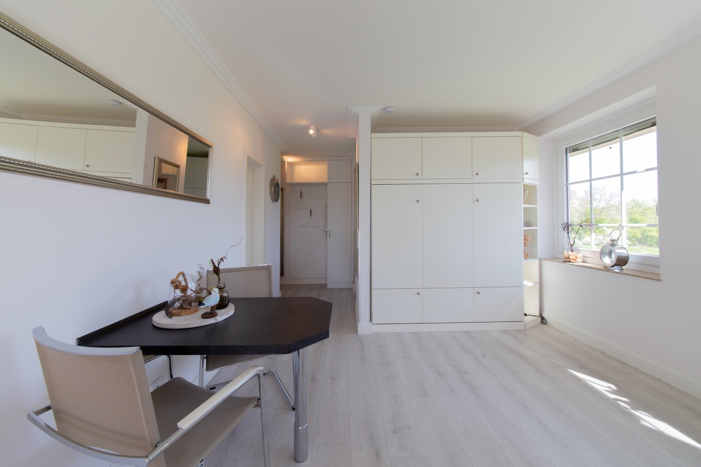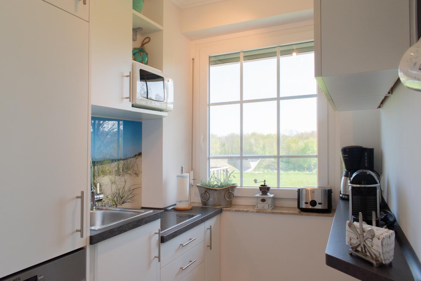1 Zimmer mit Doppelbett, Balkon und Küche bietet Platz für zwei Gäste und einem Kleinkind (bis 3 Jahre). Das Zimmer verfügt über ein gemütliches Schrankbett (1,80er Breite). Die offene Küche ist komplett ausgestattet und lässt keine Wünsche offen. Vom Wohnzimmer aus erreicht man den Balkon mit süd-westlicher Ausrichtung. Hier können Sie es sich im Strandkorb unter der Markise gemütlich machen oder ein schönes Frühstück zu sich nehmen. Das moderne Badezimmer mit einer Dusche und einem WC rundet die schöne Ferienwohnung ab. Elektrische Rollläden und ein Mückenschutz sind ebenfalls vorhanden.