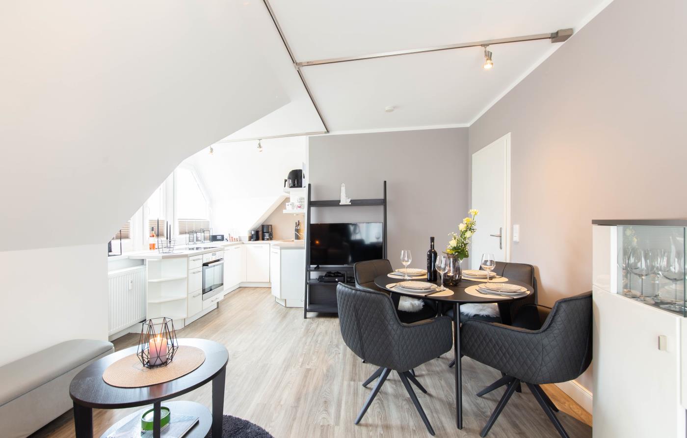 45 m² werden mit schicker und gemütlicher Einrichtung optimal genutzt und lassen keine Wünsche offen.