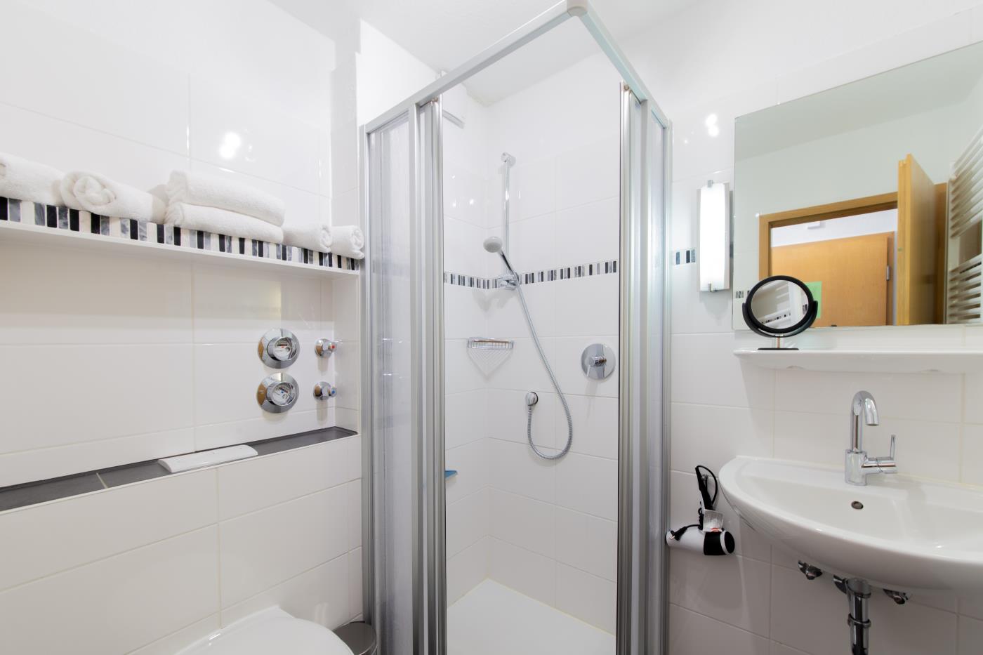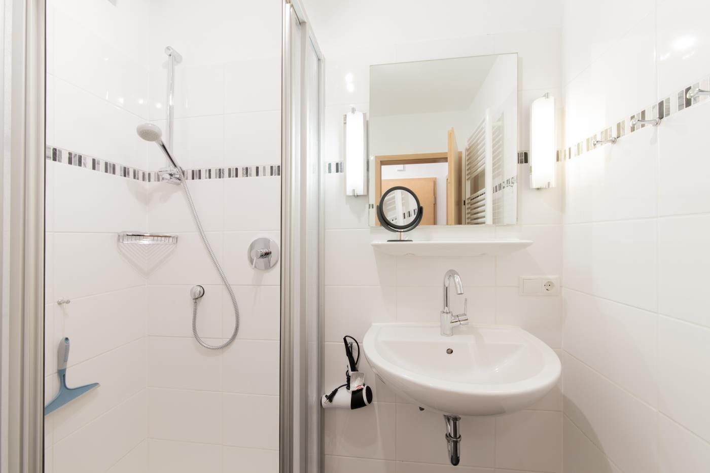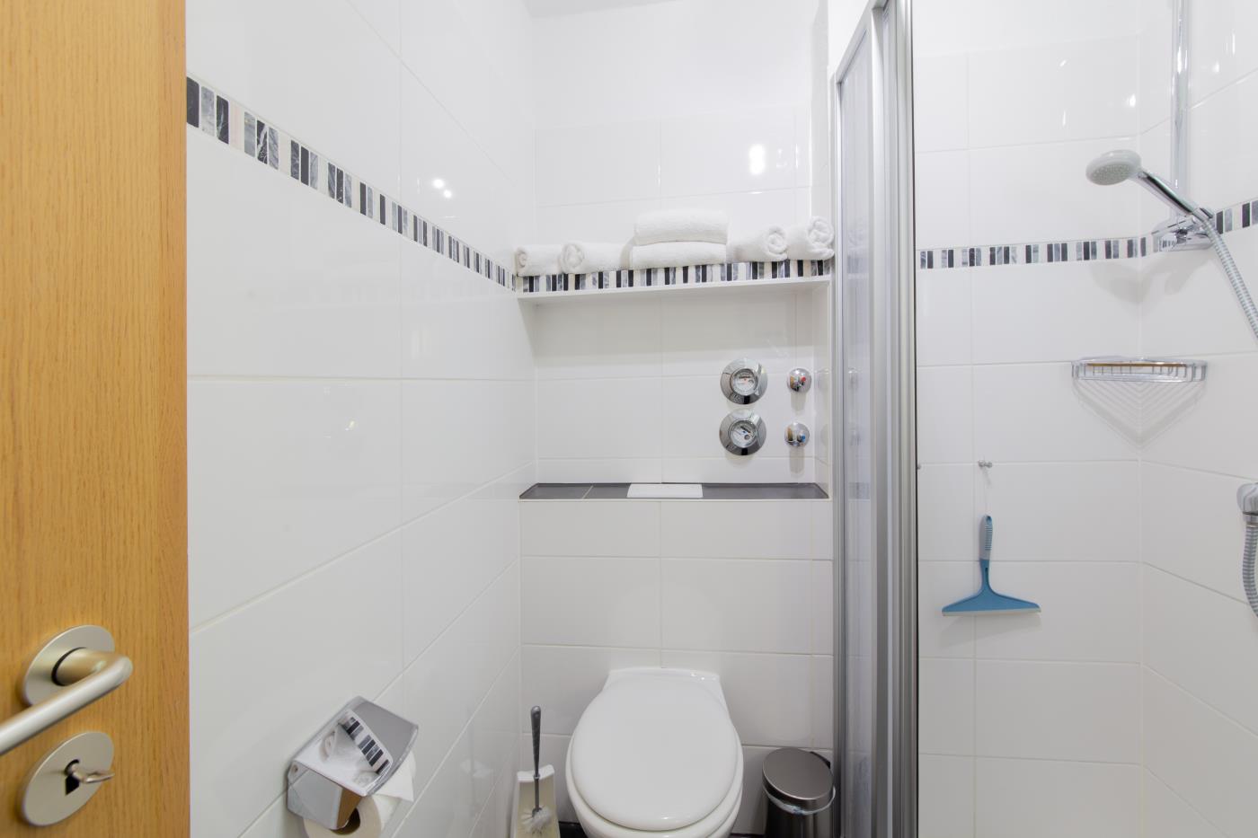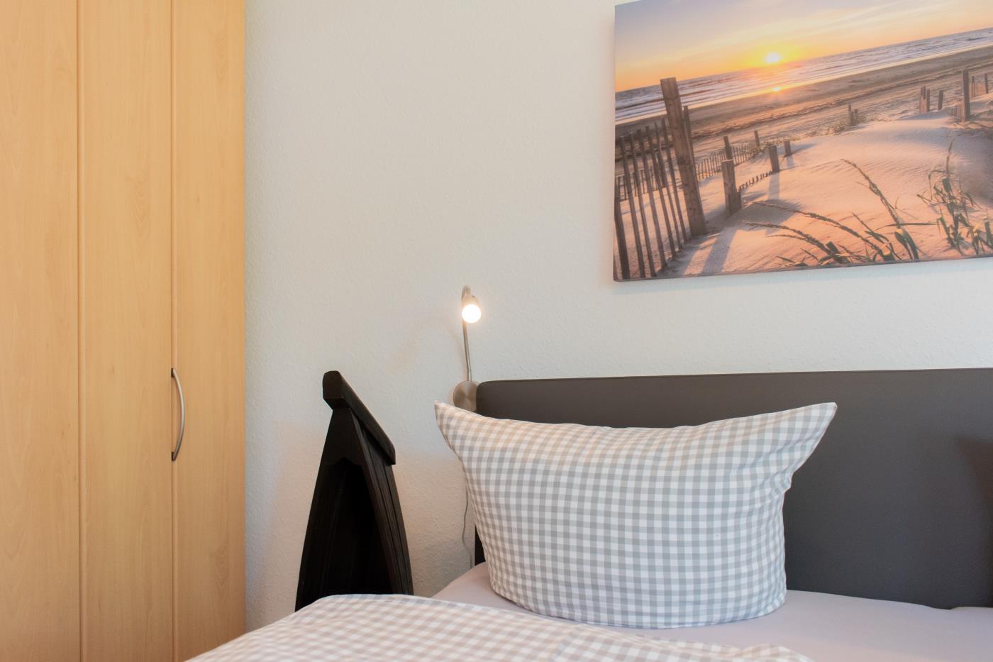 Die Zweizimmerwohnung mit separatem Schlafbereich, eigener Terrasse und Küche bietet Platz für drei Gäste. Das Schlafzimmer verfügt über ein gemütliches Doppelbett (1,80er Breite) und einen großen Kleiderschrank mit viel Stauraum für Ihr Gepäck. Im Wohnbereich steht ein Schrankbett (1,20 er Breite) zur Verfügung. Die offene Küche ist zur Selbstversorgung ausgestattet und lässt keine Wünsche offen. Vom Wohnzimmer aus erreicht man die großzügige Terrasse mit Gartenmöbeln und Markise, welche an heißen Tagen ausreichend Schattet bietet. Durch einen Sichtschutz zu den Nachbarn haben Sie genug Privatsphäre. Das moderne Badezimmer verfügt über eine Dusche und ein WC.