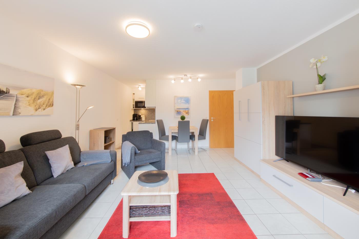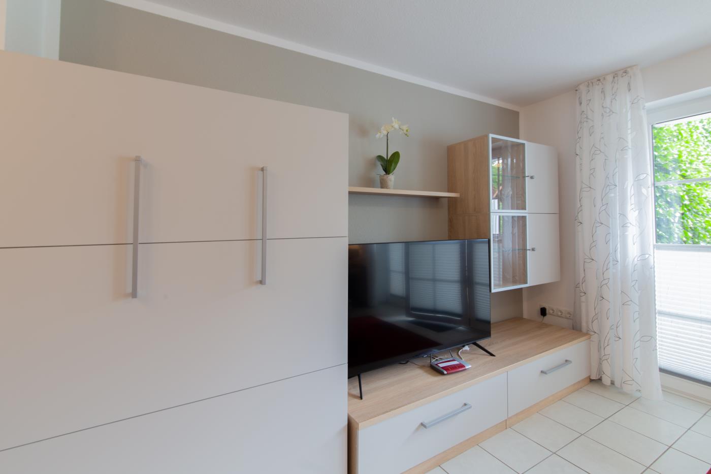 Durch einen LCD-TV mit Kabelanschluss im Wohnzimmer ist auch für mediales Entertainment gesorgt: ein WLAN-Zugang gehören ebenfalls zum Angebot.