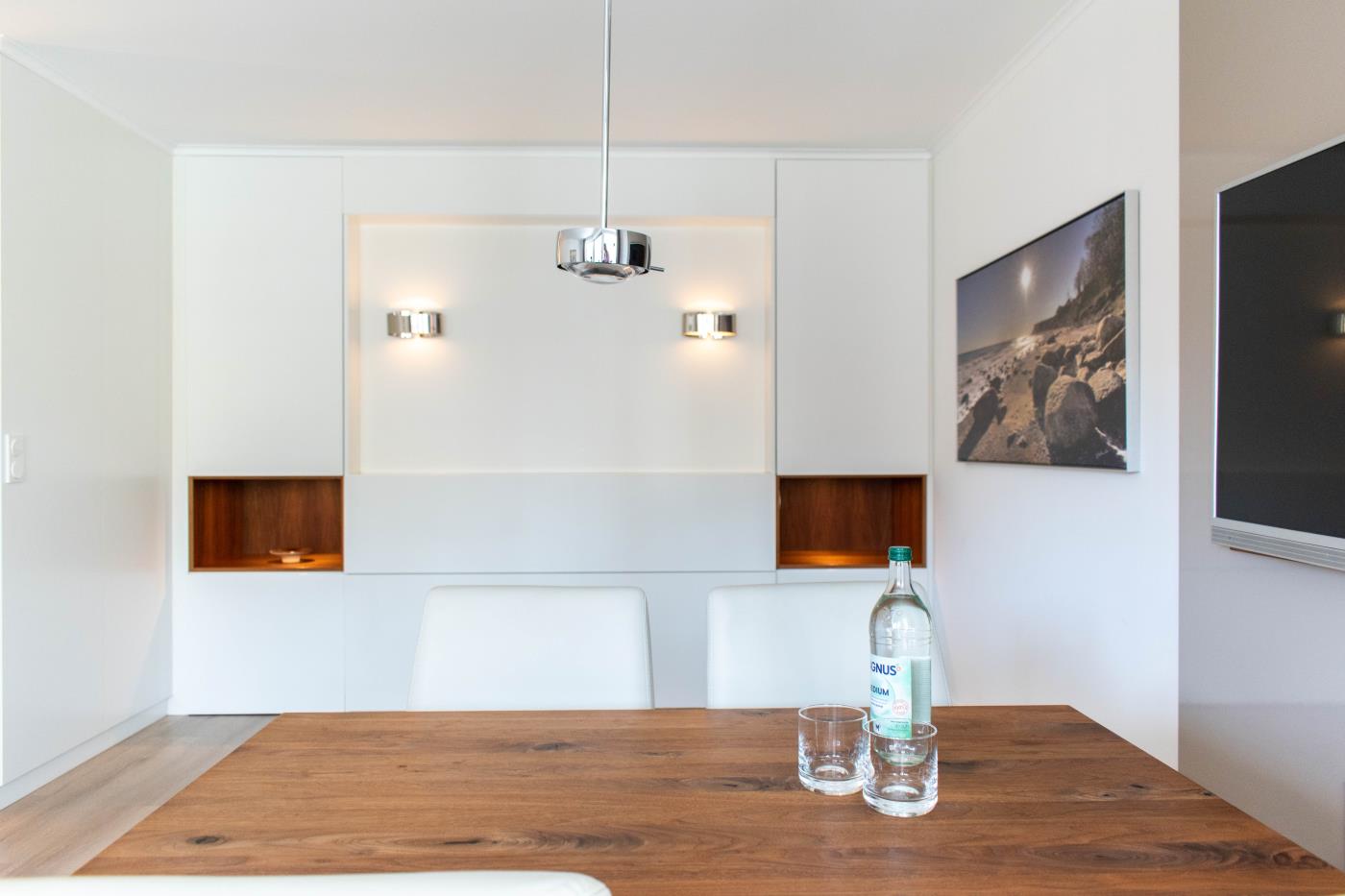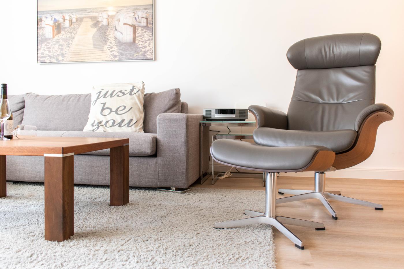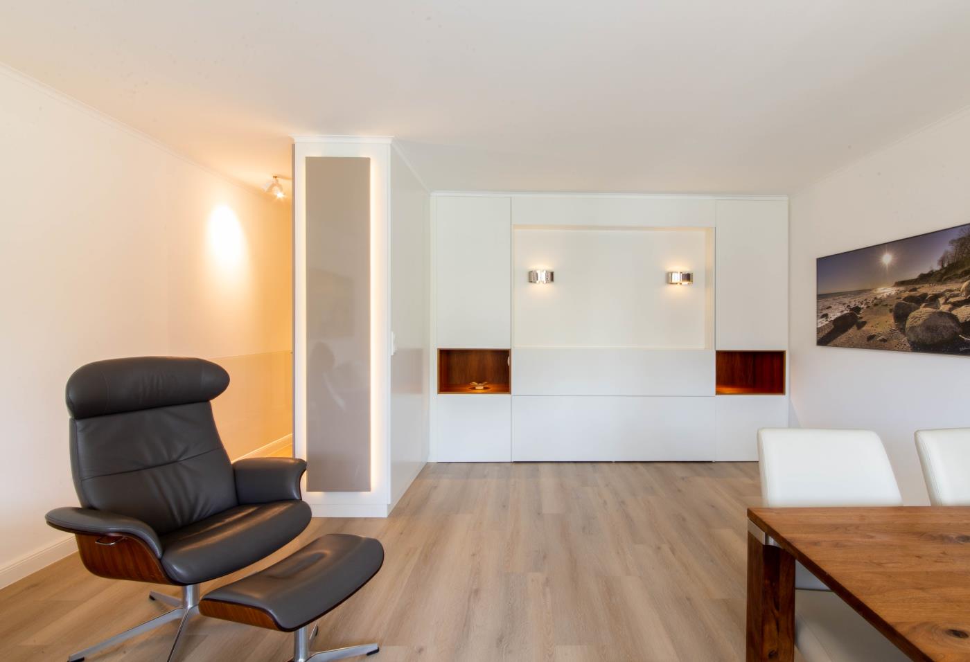 Stilvoll eingerichtet auf 42 m² bietet die Ferienwohnung Kuschelmuschel dem Gast einen besonderen Ostseeurlaub. Die Ferienwohnung befindet sich in einer 2015 komplett modernisierten Appartementanlage und verfügt über eine hochwertige Ausstattung.