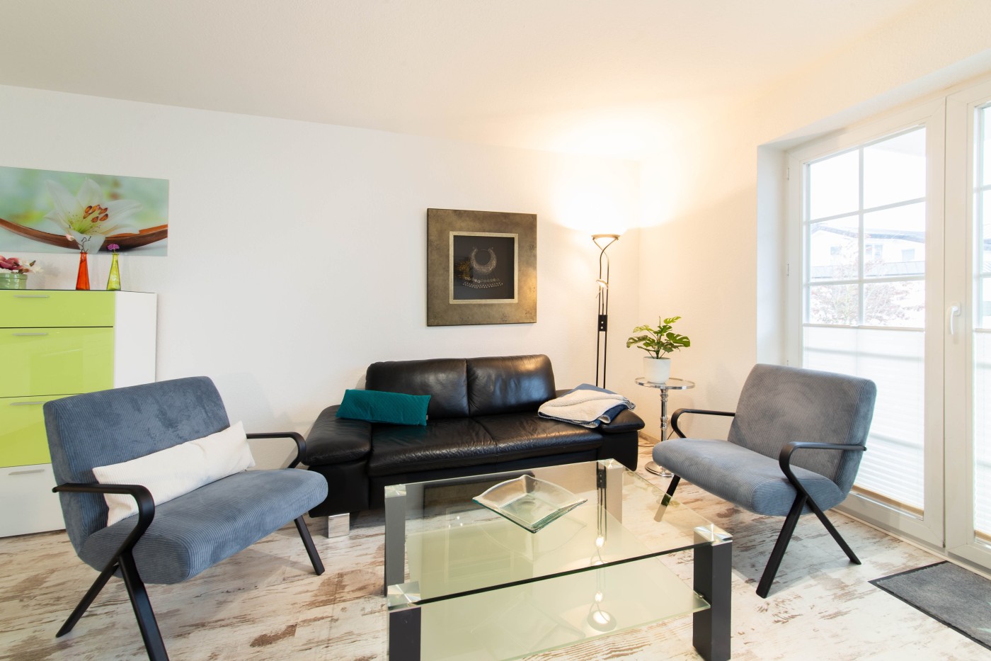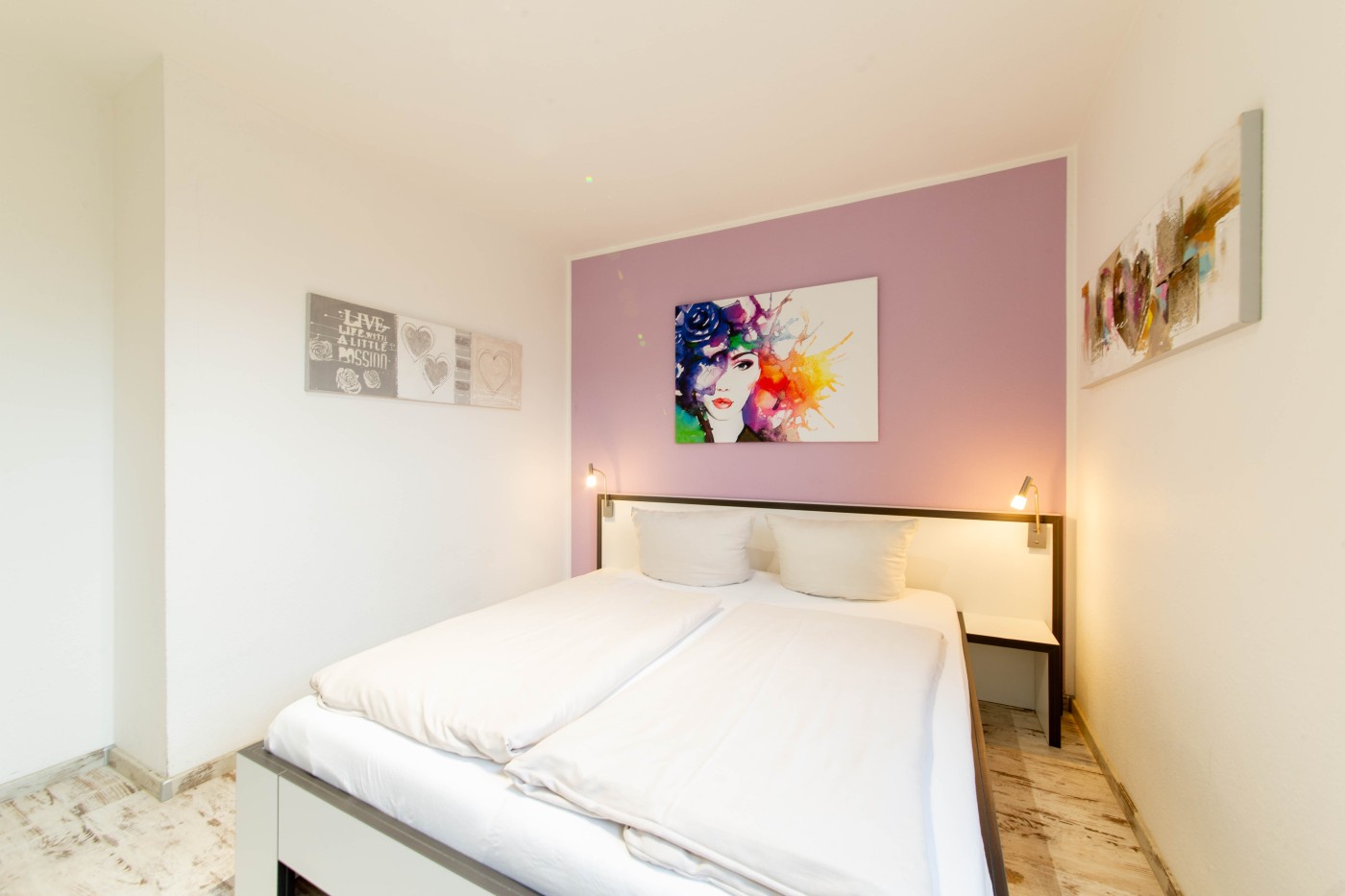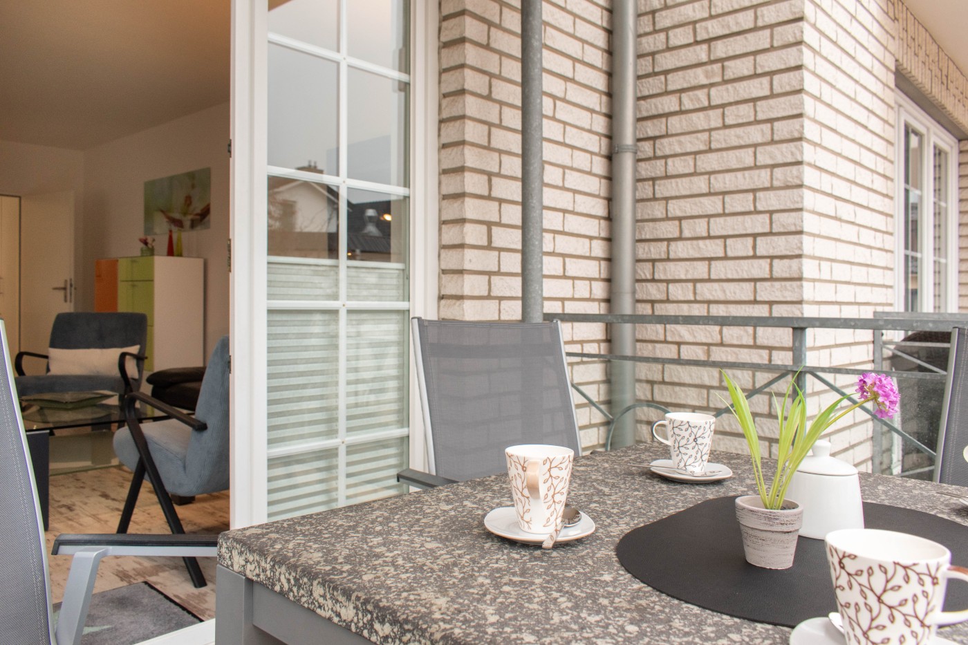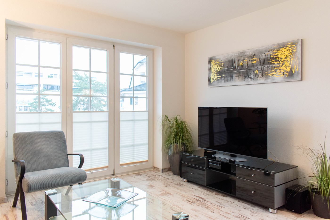 Die Ferienwohnung Logenplatz befindet sich auf der ersten Etage einer gepflegten Ferienanlage und bietet mit 2,5 Zimmern Platz für vier Gäste. Die gemütliche Sitzecke lädt zum gemeinsamen Verweilen oder zu kuscheligen Filmabenden ein. Angrenzend ist der Zugang zum möblierten Balkon, von welchem Sie herrlich das lebhafte Treiben des Kurortes, oder auch das Vorbeifahren einiger Luxuskarossen beobachten können. Der große Runde Esstisch bietet Platz für vier Personen und befindet sich im lichtdurchfluteten Erker, direkt neben der Küchenzeile. Dank der hervorragenden Küchenausstattung können Sie sich ganz dem Spaß am Kochen widmen. Das größere der beiden Schlafzimmer ist mit einem komfortablen Doppelbett (2 Matratzen à 90er Breite), einem geräumigen Einbauschrank sowie einem Flat-TV ausgestattet. Durch eine Glasschiebetür lässt sich das kleinere Schlafzimmer abtrennen. Mit den beiden Einzelbetten (je 1,90 x 0,80 Meter) sowie ein kleiner Schrank eignet es sich bestens als Kinderzimmer. Reichlich Stauraum für Ihr Reisegepäck finden Sie im großen Flurschrank. Das Tageslichtbad ist mit einer Raindancedusche und einem beleuchteten Spiegel über dem Waschtisch ausgestattet. Insbesondere bei längeren Aufenthalten ist die Waschküche im Keller sehr praktisch, die Waschmaschine und den Trockner können Sie gegen Gebühr nutzen.
