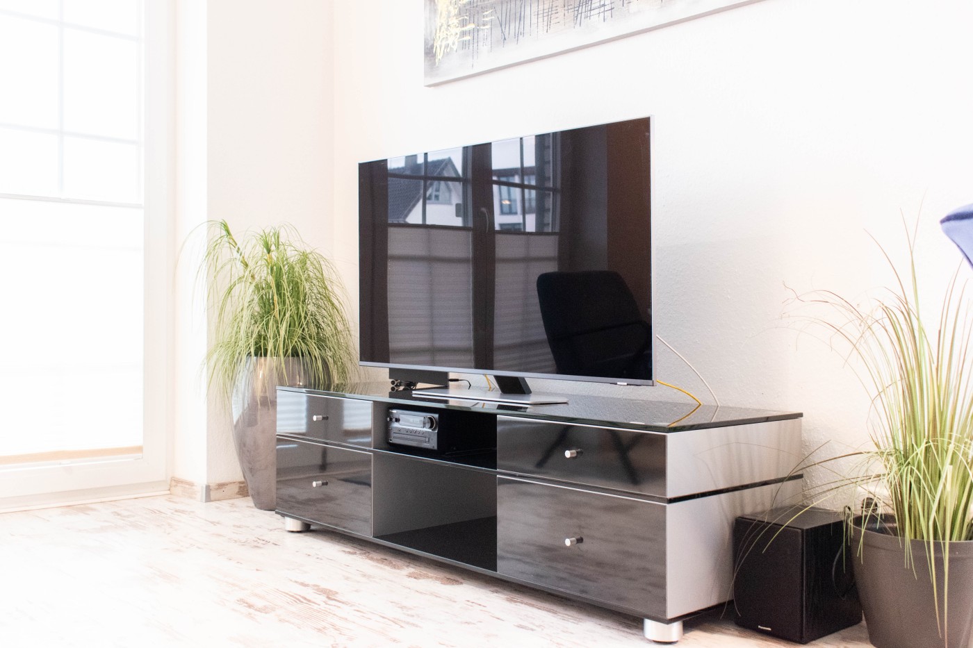 Das Wohn- und Schlafzimmer sind jeweils mit einem Flat-TV ausgestattet. Der WLAN-Zugang sowie die Stereoanlage mit Radio/CD-Player/Bluetooth gehören ebenfalls zum Entertainmentpaket.
