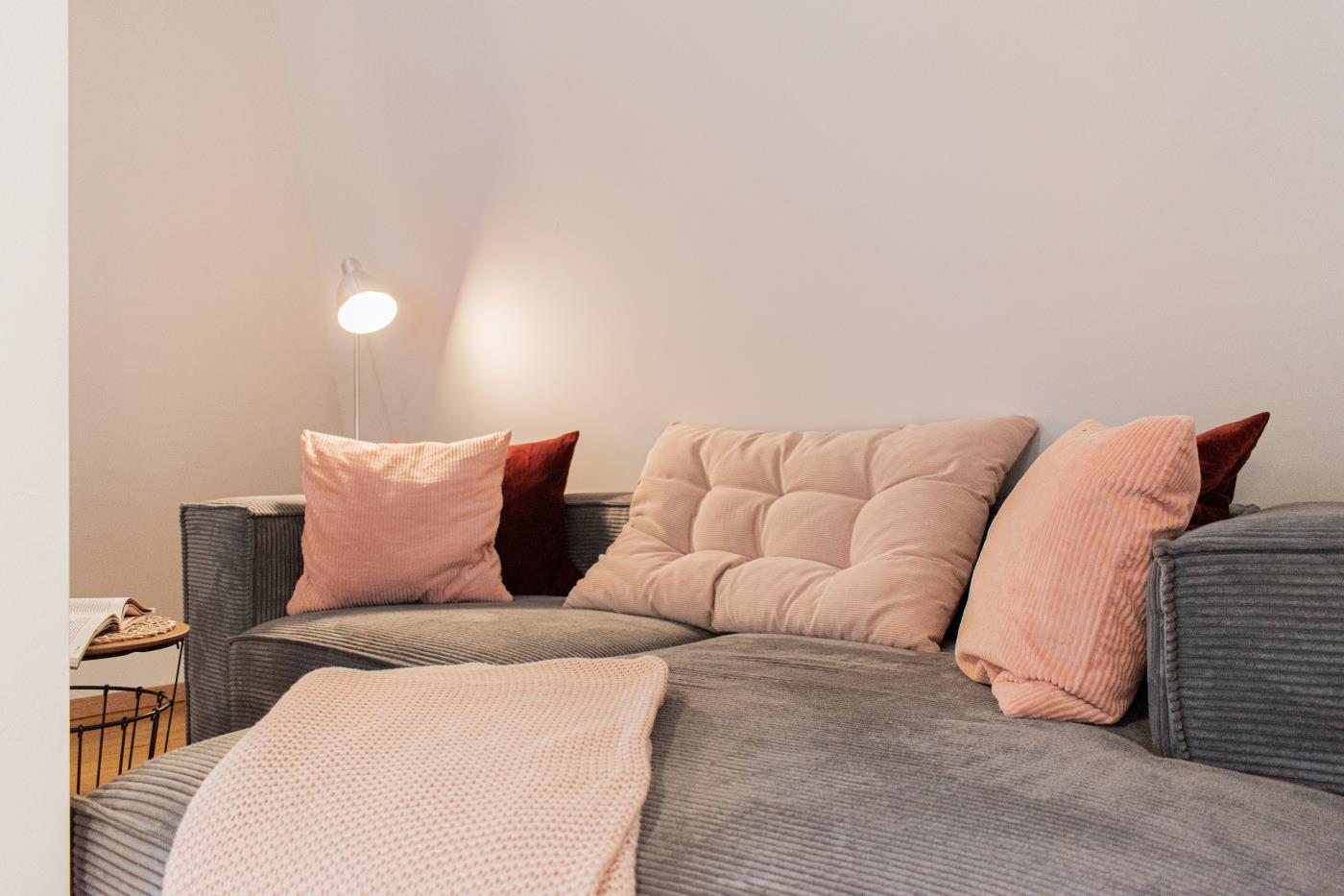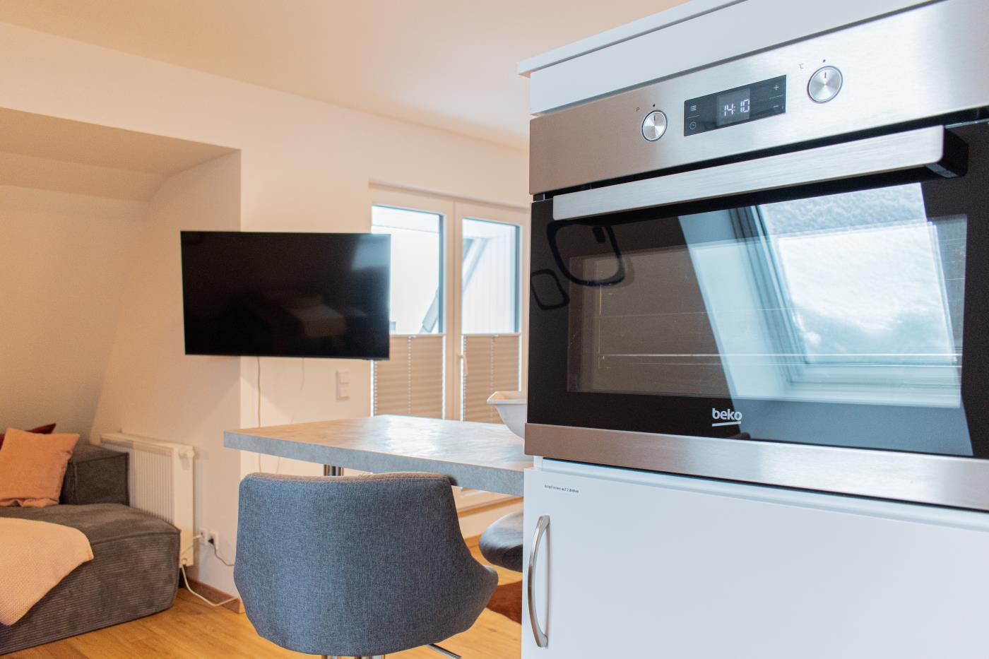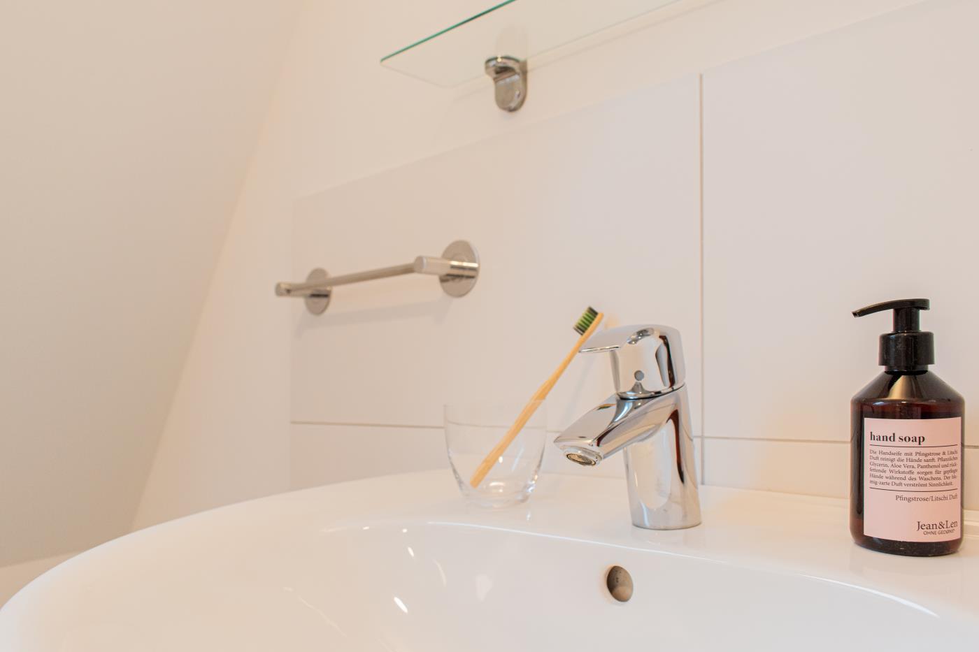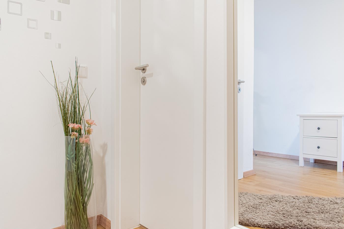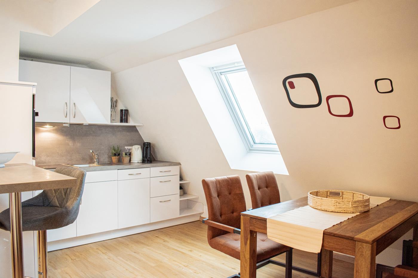 Die Einrichtung strahlt in frischen und ausgewählten Farben, die dem Stil des Appartements eine klare Linie verleihen. Den besonderen Charme der Wohnung stellen die Dachschrägen dar, welche ein wohliges Ambiente kreieren. Parken & Fahrräder