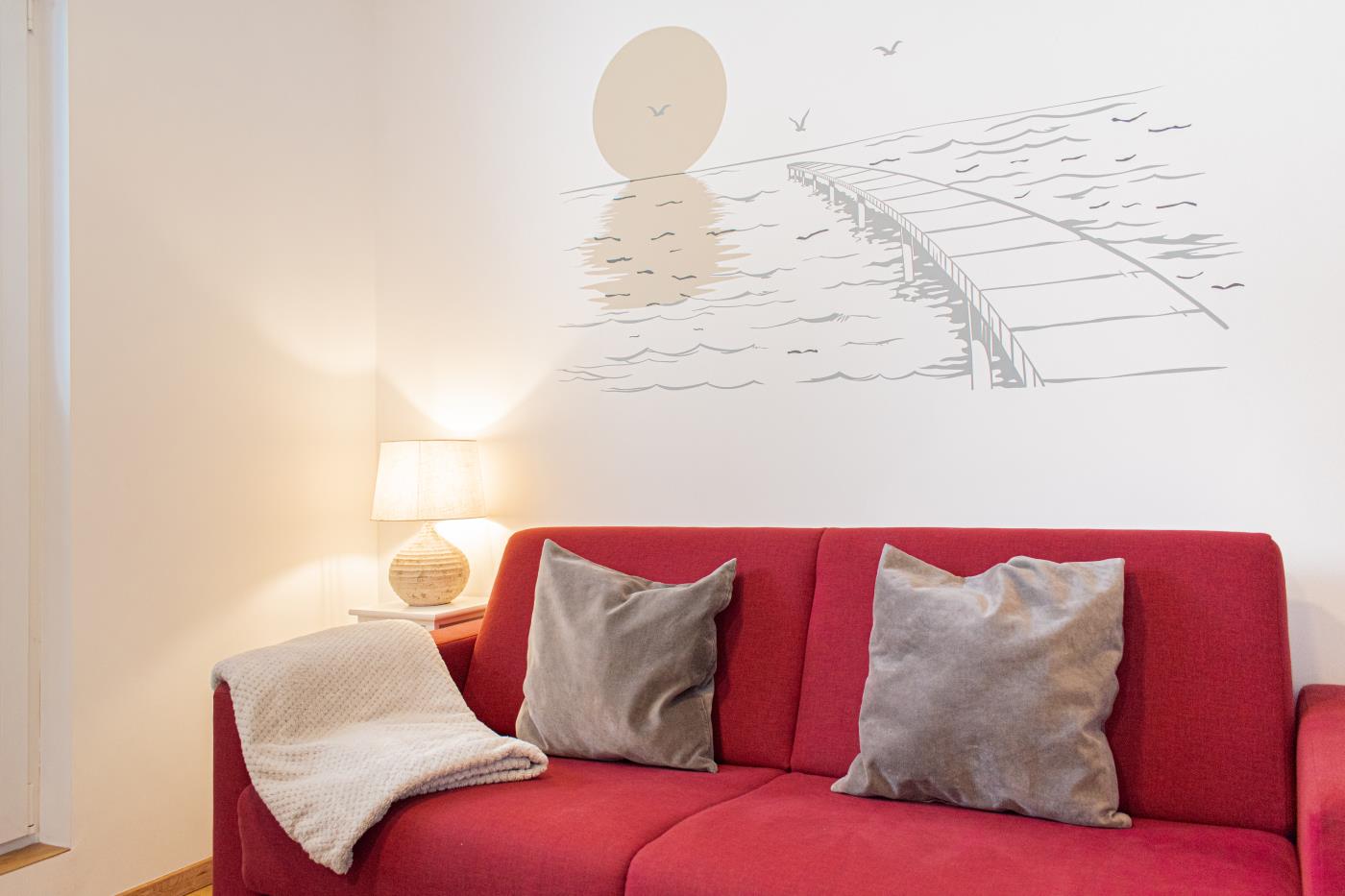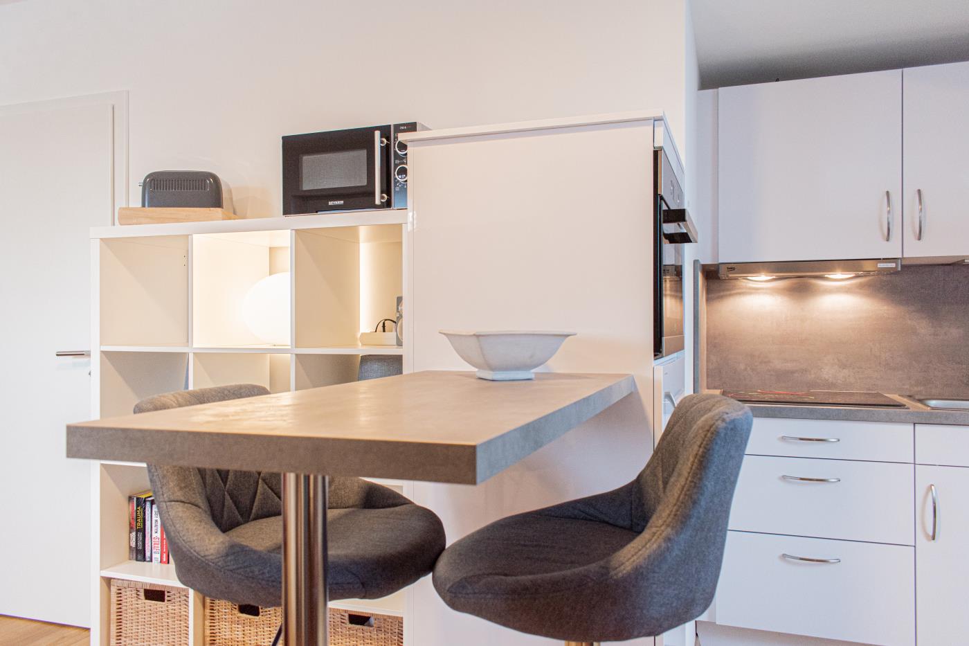 Das Zwei-Zimmer-Appartement bietet Platz für bis zu vier Gäste. Das separate Schlafzimmer verfügt über ein gemütliches Doppelbett (1,80 m Breite) und einen großzügigen Kleiderschrank, in welchem all Ihr Gepäck Platz findet. Der geräumige und helle Wohnraum schafft eine ruhige Wohlfühlatmosphäre, wobei die bequeme Couch den perfekten Komfort für einen kuschligen Sofaabend bietet. Diese kann durch Ihre Ausziehfunktion auch als weitere Schlafgelegenheit (1,60 m Breite) dienen. Zusäzlich gibt es eine Sitzgruppe im Wohnraum. Die angrenzende Küche mit Essbereich eignet sich ideal für ausgelassene Kochexperimente und lässt keine Wünsche offen. Die schöne Mikrowelle wurde Anfang Februar erneuert. Durch den Wohnraum gelangen Sie auf die nach Osten ausgerichtete Loggia. Diese ist mit einer Lounge Sitzgruppe ausgestattet, auf welcher vier Personen Platz haben. Hier können Sie morgens die ersten Sonnenstrahlen erblicken und bei einem ausgelassenen Frühstück den perfekten Start in Ihren Tag genießen. Das Badezimmer mit Dusche und WC rundet das Angebot der Ferienwohnung ab. Entertainment