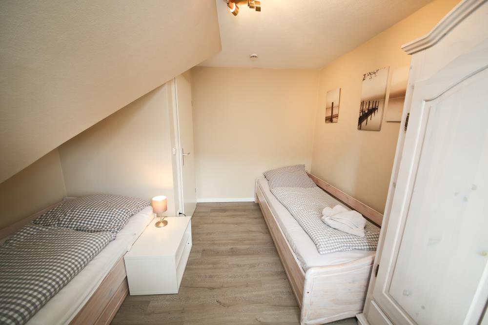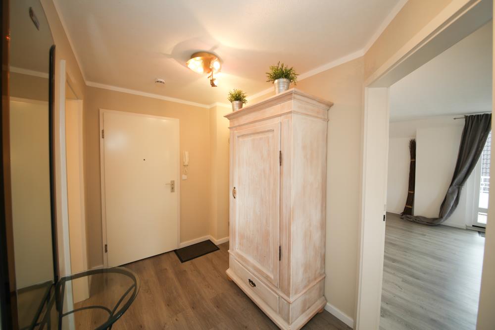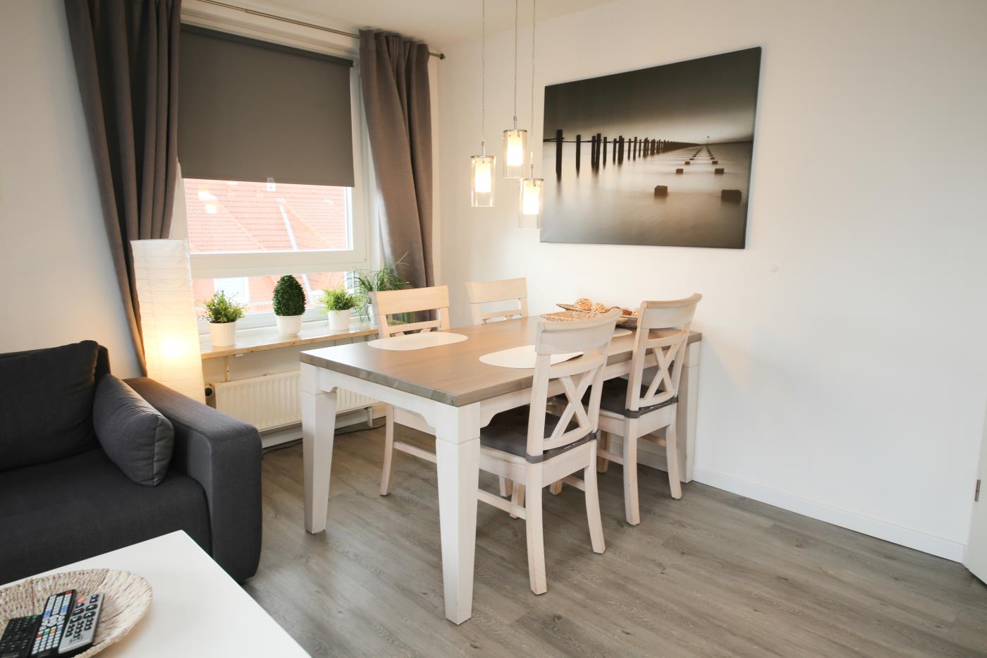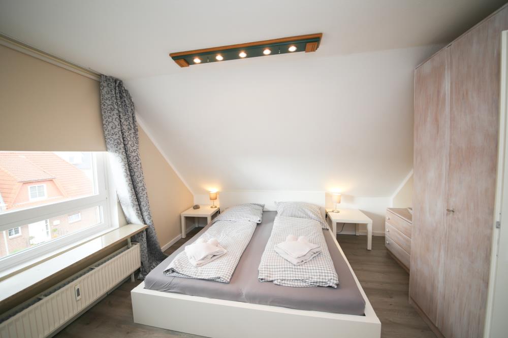 Die Ferienwohnung bietet Ihnen auf drei Zimmern Erholung pur in strandnaher Lage. Große Fensterfronten lassen viel Licht in die Wohnung und sorgen so für eine gemütliche Atmosphäre. Die Küche ist voll ausgestattet und lässt keine Wünsche offen. Des Weiteren bietet der Essbereich Platz für vier Personen. Im ersten Schlafzimmer dient ein gemütliches Doppelbett (1,80er Breite) als Schlafmöglichkeit und ein Kleiderschrank für Stauraum. Ein weiterer Schlafbereich beinhaltet zwei Einzelbetten (0,90er Breite) und einen weiteren Kleiderschrank. Beide Schlafzimmer haben Plissees oder Vorhänge zum Verdunkeln. Vom Wohnzimmer aus erreicht man den süd-westlich ausgerichteten Balkon mit Gartenmöbeln und Sonnenschirm. Das moderne Badezimmer verfügt über eine Badewanne mit Duschfunktion und ein WC. Eine Fußbodenheizung im Badezimmer sorgt für eine zusätzliche Wohlfühlatmosphäre. Außerdem können Sie Ihre Wertsachen in einem Safe sicher verwahren.