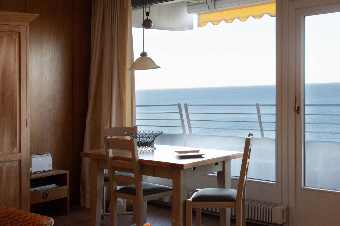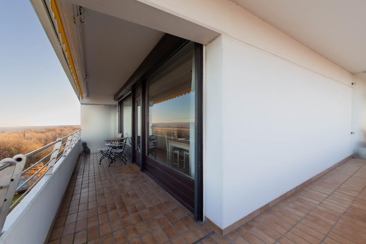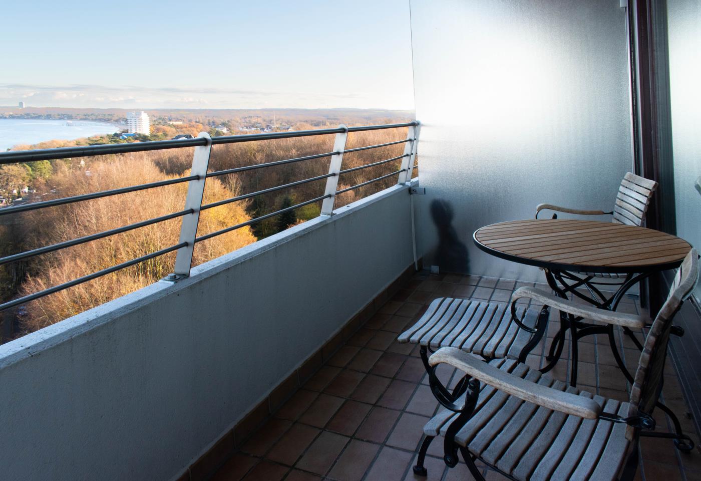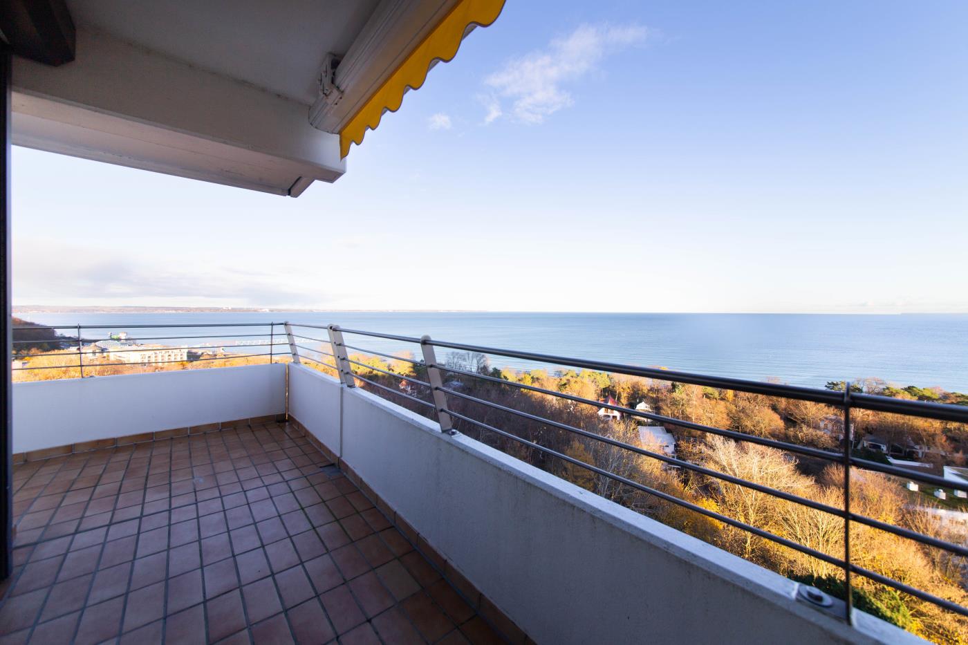 Die Ferienwohnung verfügt über einen traumhaften Meerblick. Genießen Sie auf dem riesigen Eckbalkon die frische Meeresluft und ein ultimatives Meerblickpanorama. Auch nachts, wenn die Lübecker Bucht beleuchtet ist, tauchen Sie hier in eine ganz besondere Atmosphäre ein.