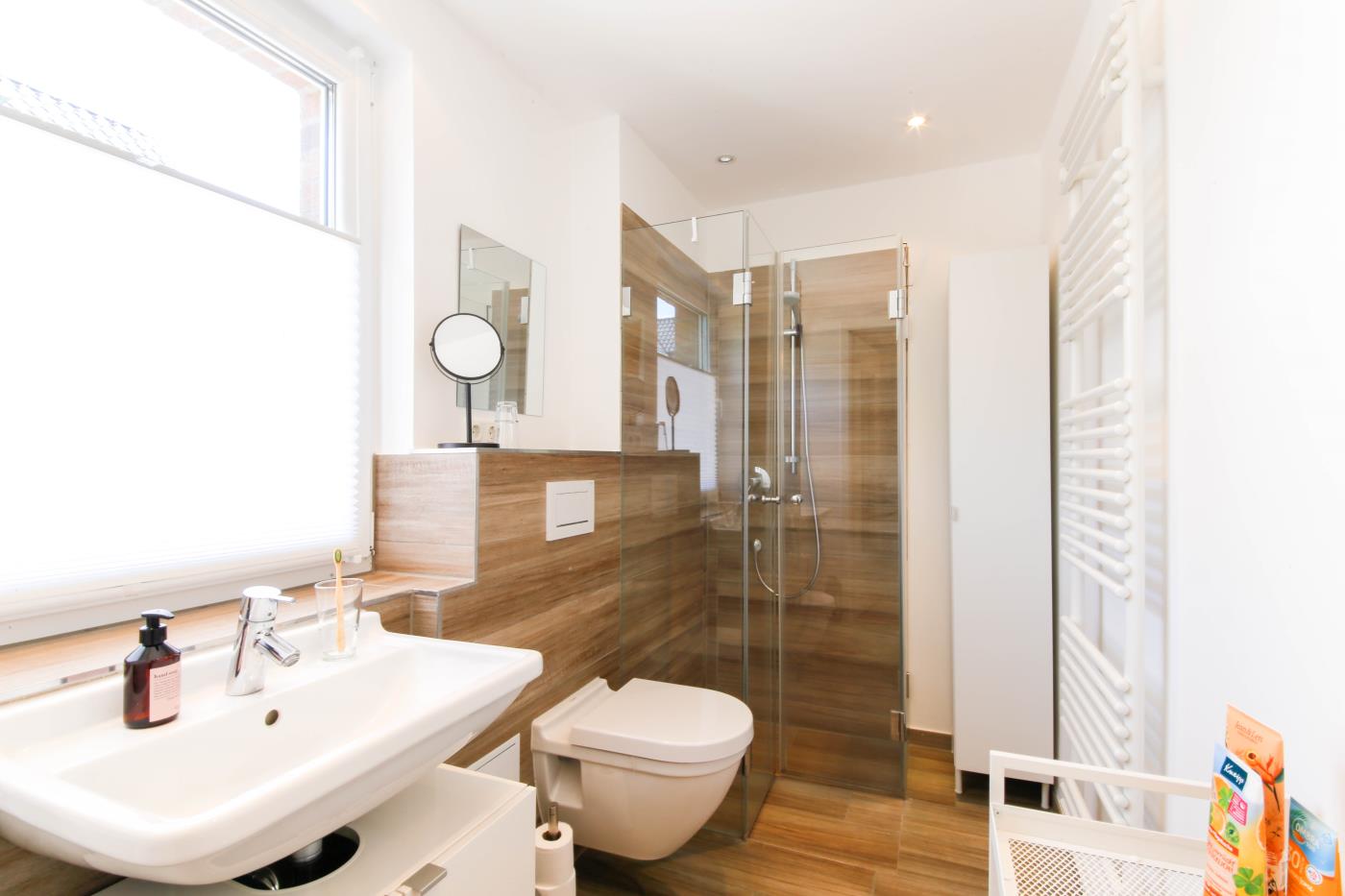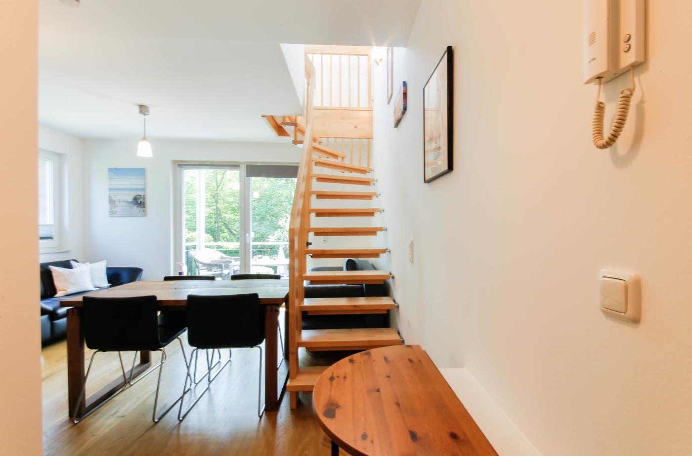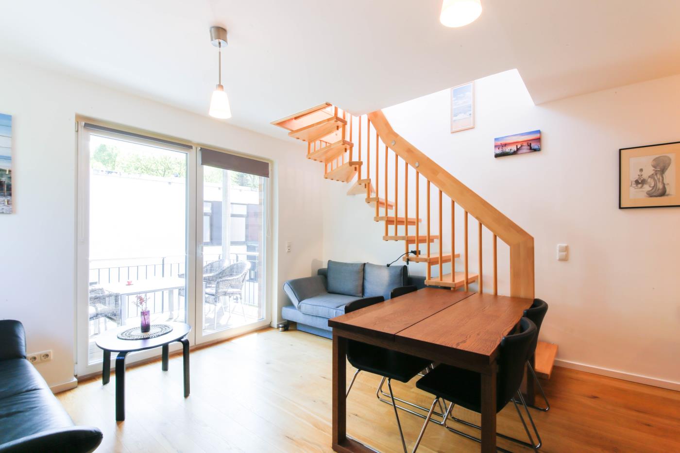 45 m² werden auf zwei Etagen mit hochwertiger und charmanter Einrichtung optimal genutzt. Das Mobiliar im modernen Landhausstil schafft eine sehr gemütliche und wohnliche Atmosphäre. Die Fußbodenheizung auf der gesamten unteren Ebene sorgt für zusätzlichen Wohnkomfort.