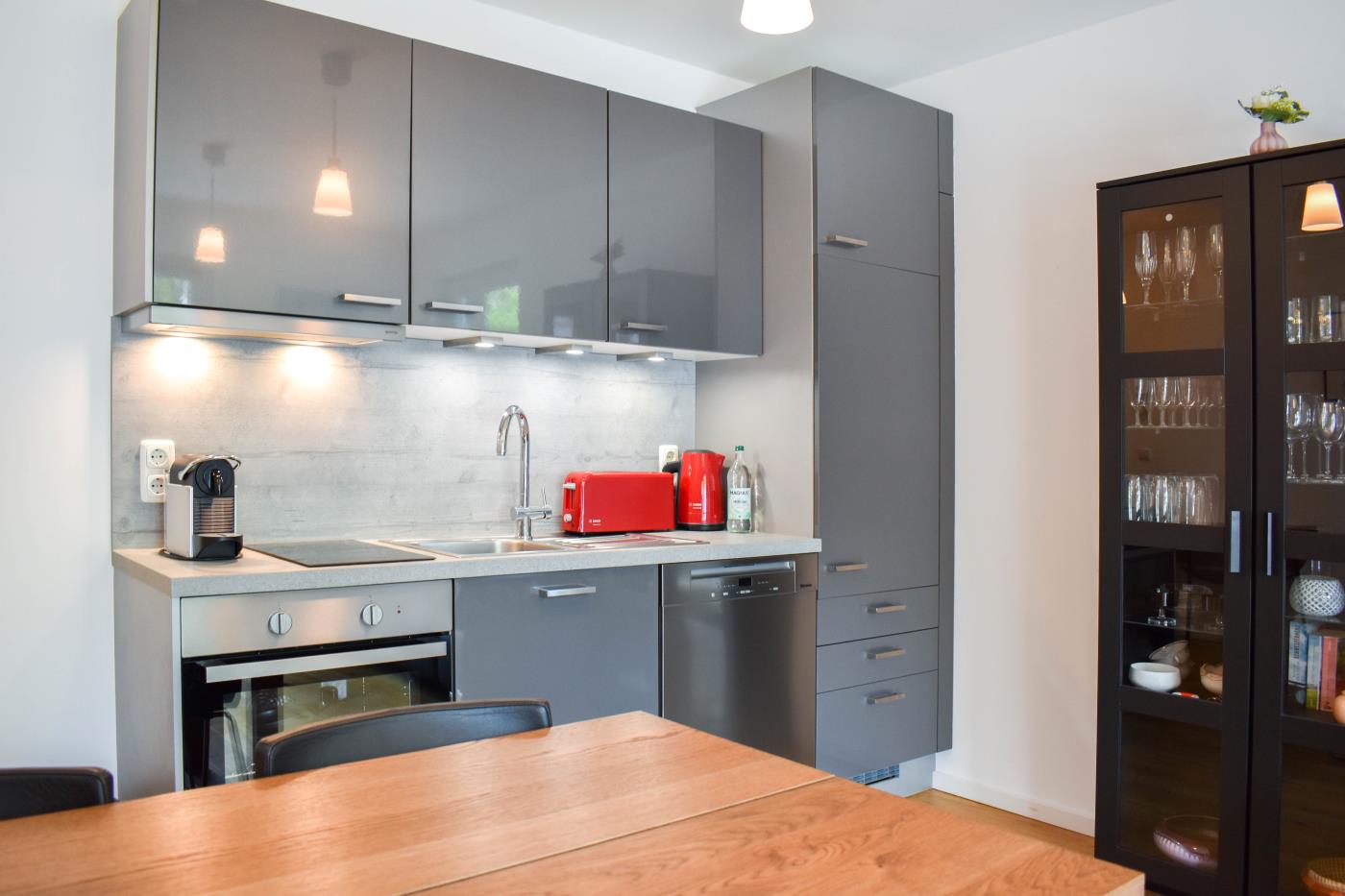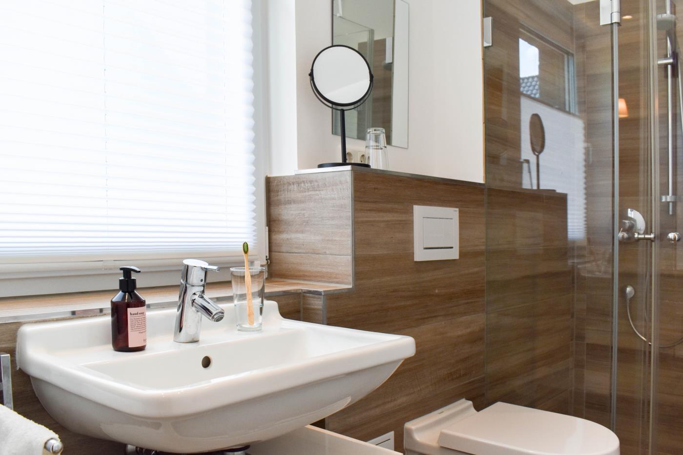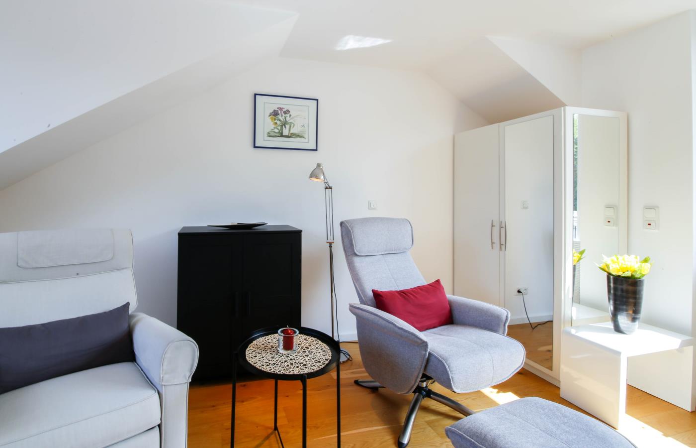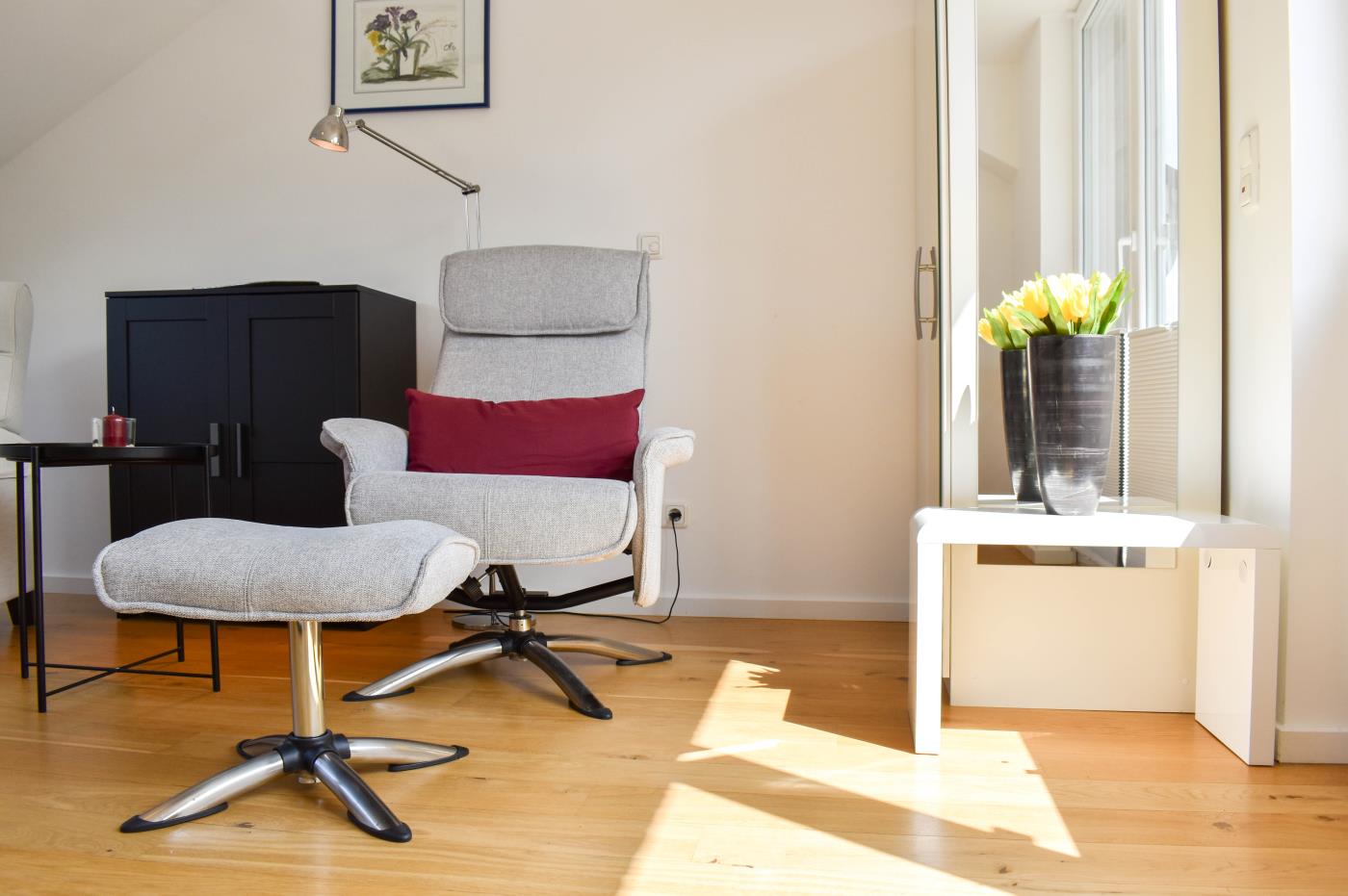 45 m² werden auf zwei Etagen mit hochwertiger und charmanter Einrichtung optimal genutzt. Das Mobiliar im modernen Landhausstil schafft eine sehr gemütliche und wohnliche Atmosphäre. Die Fußbodenheizung auf der gesamten unteren Ebene sorgt für zusätzlichen Wohnkomfort.