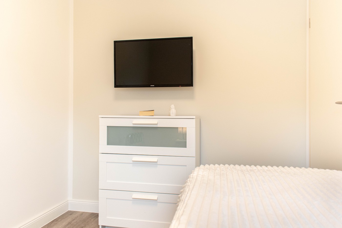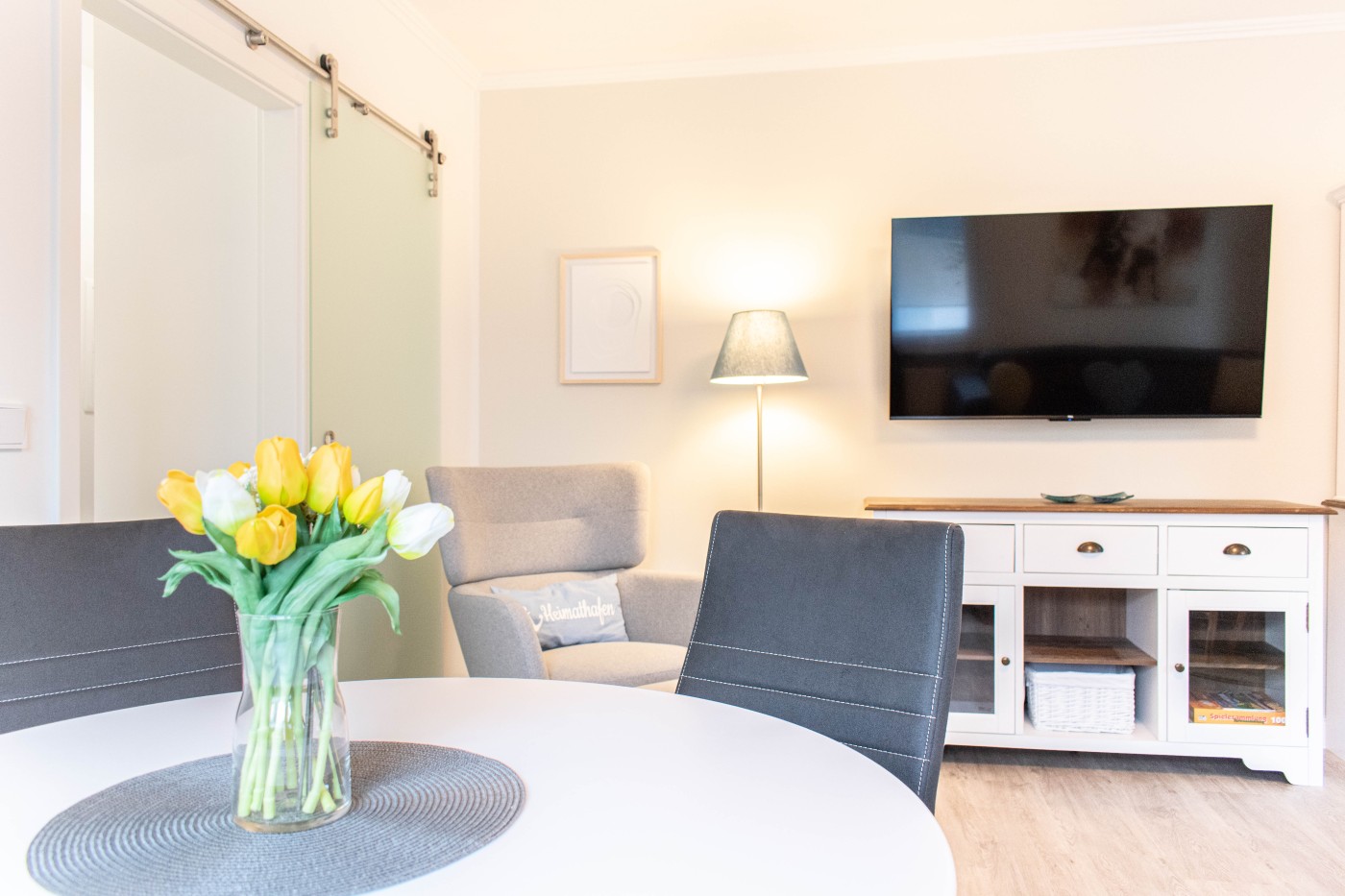 Für Unterhaltung ist bestens gesorgt. Im Wohnbereich steht ein großer Flat-TV mit Smart-TV-Funktion für spannende Film- und Serienabende bereit. Auch im Schlafzimmer befindet sich ein Smart-TV, sodass Sie auf Wunsch direkt vom Bett aus entspannen können. Über das kostenfreie WLAN bleiben Sie jederzeit bestens verbunden.