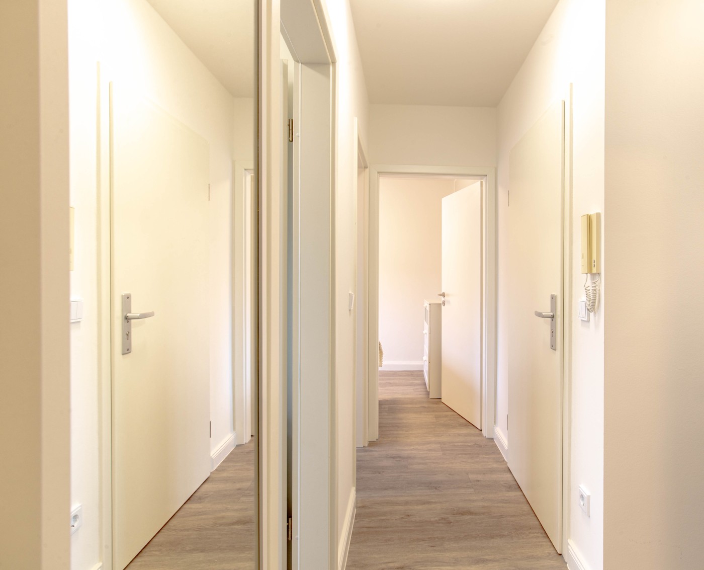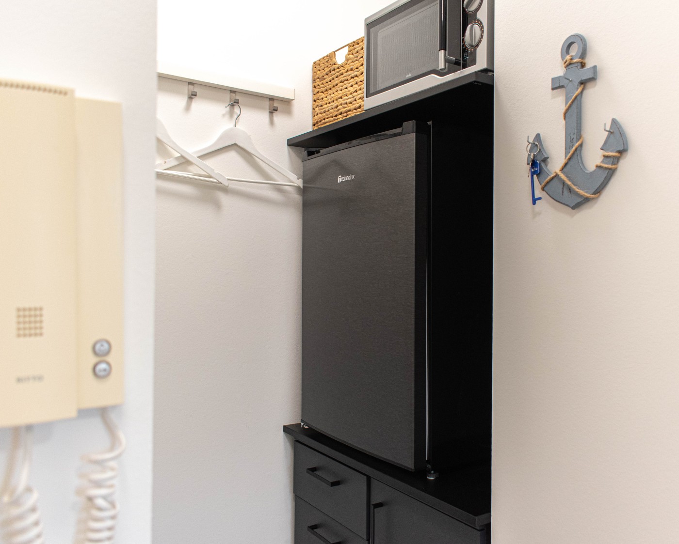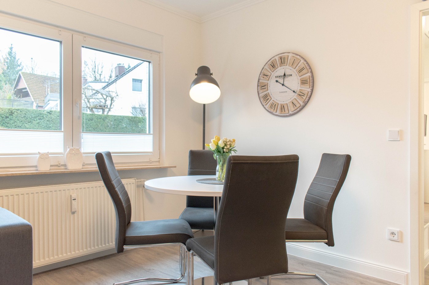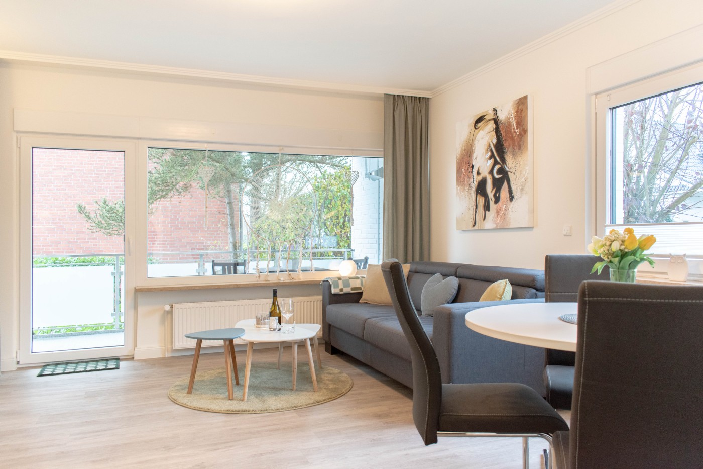 Die Ferienwohnung befindet sich im Hochparterre einer einer gepflegten Wohnanlage. Der Wohnbereich lädt mit seiner modernen Einrichtung zu entspannten Stunden ein, perfekt für kuschelige Filmabende oder ein gutes Buch nach einem Tag am Strand. Im Handumdrehen lässt sich die Couch zu einem gemütlichen Schlafplatz umfunktionieren. Die kleine, separate Küche ist funktional und charmant gestaltet. Trotz ihrer kompakten Größe bietet sie alles, was Sie für die Zubereitung kleiner Mahlzeiten benötigen. Ideal für ein entspanntes Frühstück oder ein schnelles Abendessen im Urlaub. Im Schlafzimmer befindet sich ein Einzelbett (80 x 200 cm), das sich bei Bedarf zu einem komfortablen Doppelbett (160 x 200 cm) ausziehen lässt, bestens geeignet für Paare oder Alleinreisende, die etwas mehr Platz wünschen. Ein besonderes Highlight ist der großzügige, überdachte Südbalkon. Ob die ersten Sonnenstrahlen am Morgen oder ein entspannter Ausklang am Abend: Die Südlage des Balkons sorgt zu jeder Tageszeit für Wohlfühlmomente.