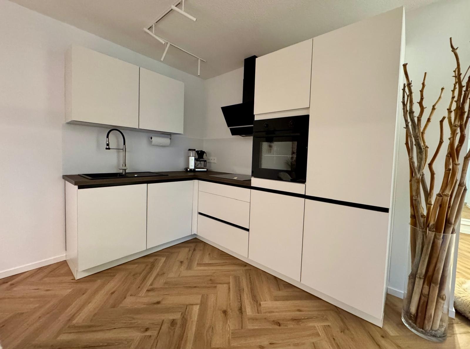 Cerankochfeld und Backofen Kühlschrank mit Gefrierfach Spülmaschine Kaffeemaschine und Toaster Wasserkocher Vollständige Küchenausstattung mit Geschirr, Besteck und Gläsern EsstischBad