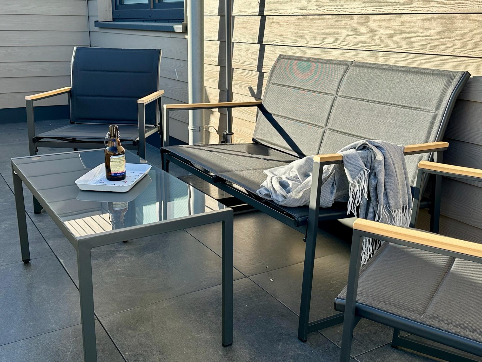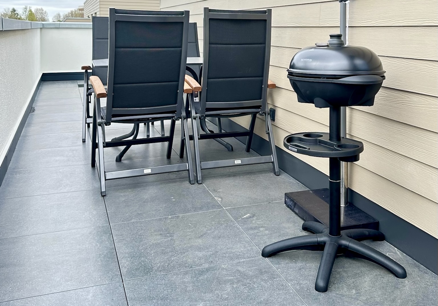 Saison- und witterungsabhängig, ca. April bis Oktober, stehen Garten- und Loungemöbel sowie der Grill zur Verfügung.