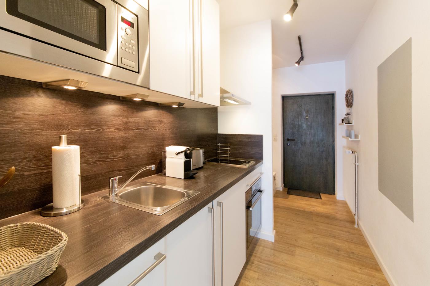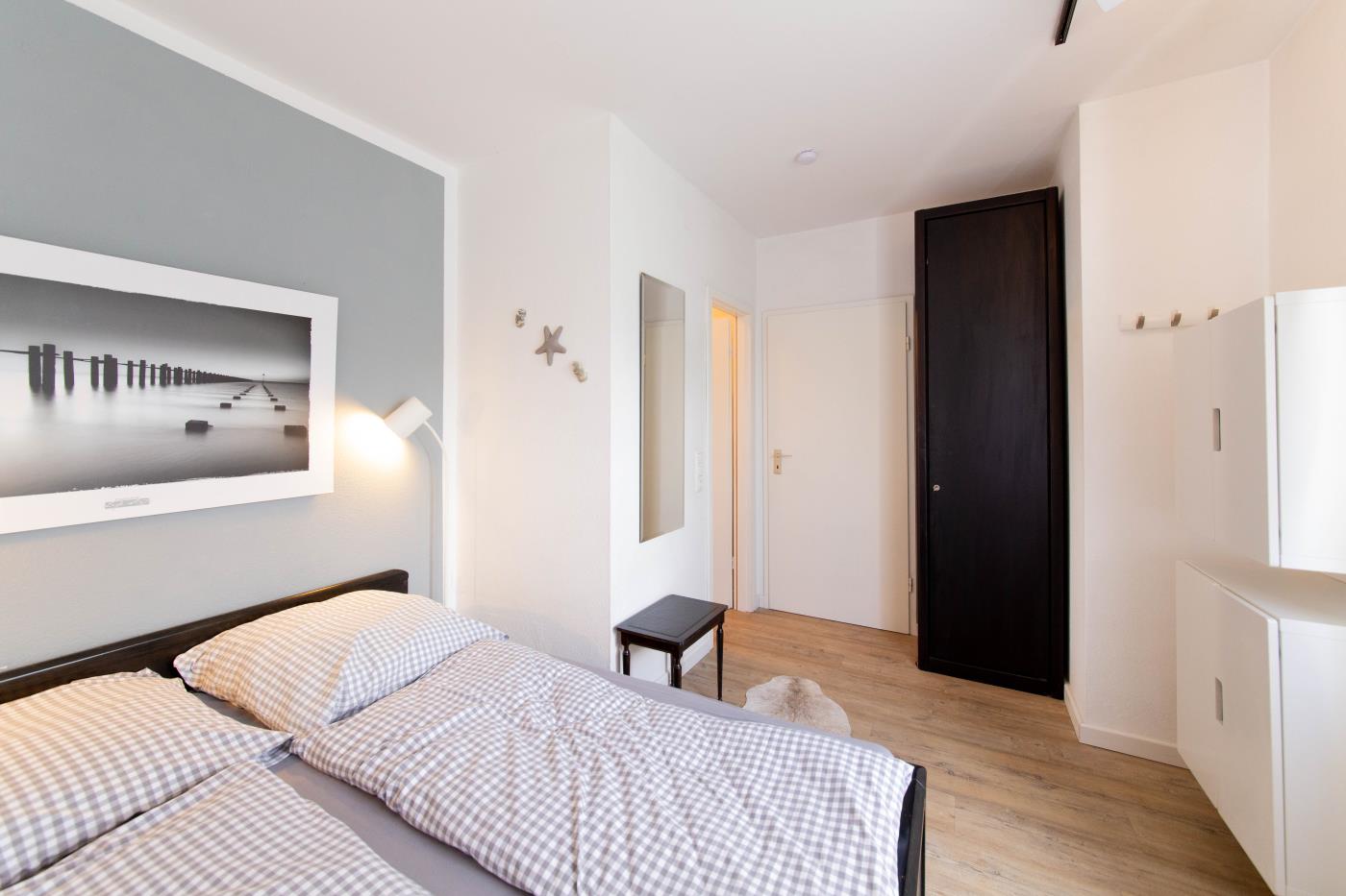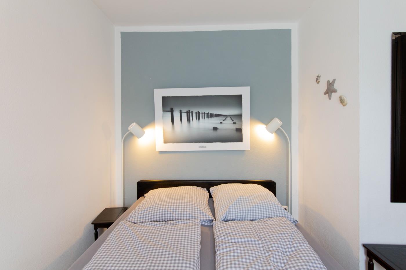 Die voll ausgestattete Küche bietet alles, was Sie für einen gelungenen Aufenthalt benötigen. Im separaten Schlafzimmer sorgt ein komfortables Doppelbett (1,60 m Breite) für erholsamen Schlaf. Das Badezimmer ist funktional eingerichtet und verfügt über Dusche und WC.