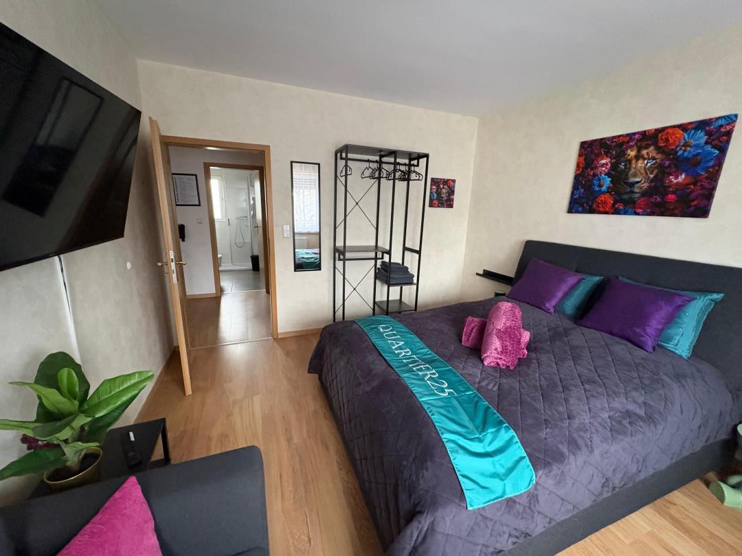 Diese großzügige und komfortable Wohnung auf Zeit / Ferienwohnung mit 85 m² Wohnfläche befindet sich in direkter Lage in Troisdorf, nur ca. 26 km von Köln entfernt. Die Wohnung liegt auf einer Etage und bietet Platz für bis zu 5 Personen – ideal für Familien, Monteure, Geschäftsreisende oder Urlaubsgäste. Zur Ausstattung gehören ein Schlafzimmer mit Doppelbett (160 × 200 cm) sowie ein Schrankbett im Wohnraum mit gleicher Liegefläche. Ein Babybett steht ebenfalls zur Verfügung. Die sehr gut ausgestattete Küche lässt keine Wünsche offen und verfügt über Herd, Backofen, Kühlschrank mit Gefriermöglichkeit, Spülmaschine sowie diverse Elektrogeräte, Kaffeemaschine und Wasserkocher. Für zusätzlichen Komfort sorgen kostenfreies WLAN, ein Smart-TV für Ihre Streamingdienste sowie Bettwäsche und Handtücher, die bereits im Mietpreis enthalten sind. Ein privater Parkplatz steht Ihnen kostenlos zur Verfügung. Haustiere sind auf Anfrage und gegen Gebühr willkommen. Hier erwartet Sie eine gepflegte, gut ausgestattete Unterkunft, in der Sie sich vom ersten Moment an wohlfühlen können.
