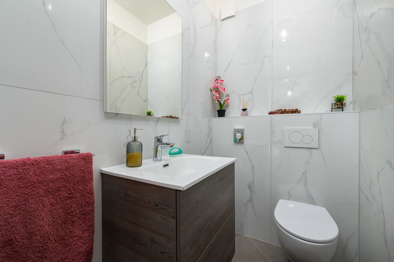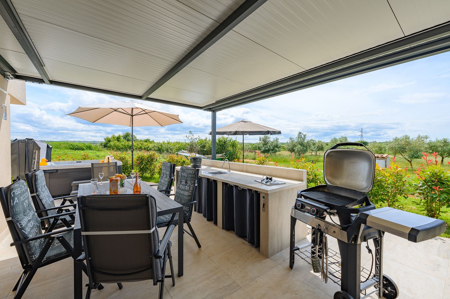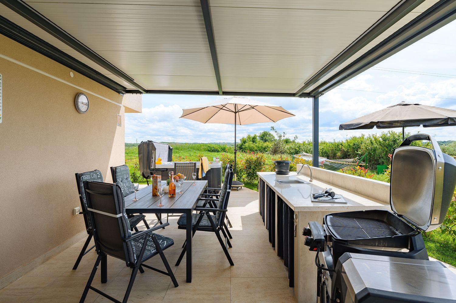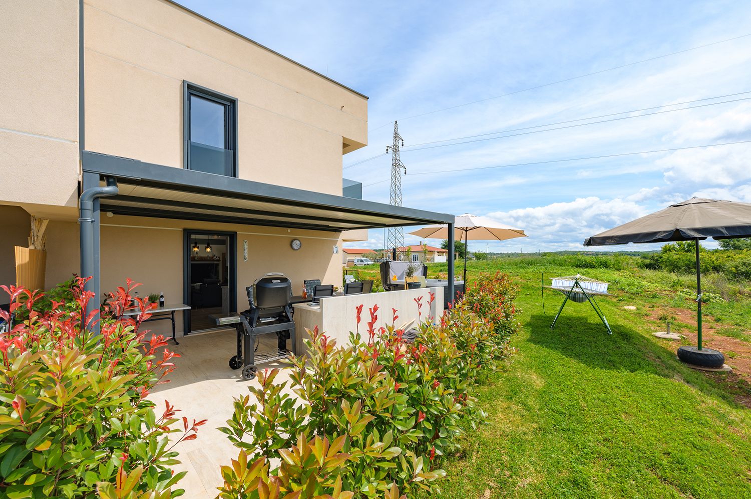 Dieses neue Apartment mit drei Schlafzimmern und einer Grundfläche von 105 m² bietet Ihnen einen komfortablen, offenen Wohnbereich mit einer voll ausgestatteten Küche sowie einem Ess- und Sitzbereich. Durch große Glastüren und Fenster ist dieser mit der Außenterrasse und dem Garten verbunden. Im Außenbereich können Sie ein Bad im privaten Whirlpool genießen und Ihre Abendessen in der Außenküche mit Grill und Essbereich zubereiten. Sowohl der Wohnbereich als auch die Schlafzimmer verfügen über eine Klimaanlage. Zwei Schlafzimmer sind mit einem großen Doppelbett ausgestattet, ein Schlafzimmer hat ein Einzelbett mit einem Zusatzbett, das bei Bedarf aus dem Hauptbett herausgezogen werden kann. Insgesamt bietet das Apartment Platz für maximal sechs schlafende Gäste. Wenn Sie dieses Apartment mieten, werden Bettwäsche und ein Satz Handtücher pro Person und Woche bereitgestellt. Im Preis inbegriffen sind die Kurtaxe, Parkplätze, WLAN und Satellitenfernsehprogramme. Haustiere sind in diesem Apartment nicht gestattet und der Hauptmieter muss mindestens 25 Jahre alt sein. Ein perfekter Ort für Familien und Freunde.