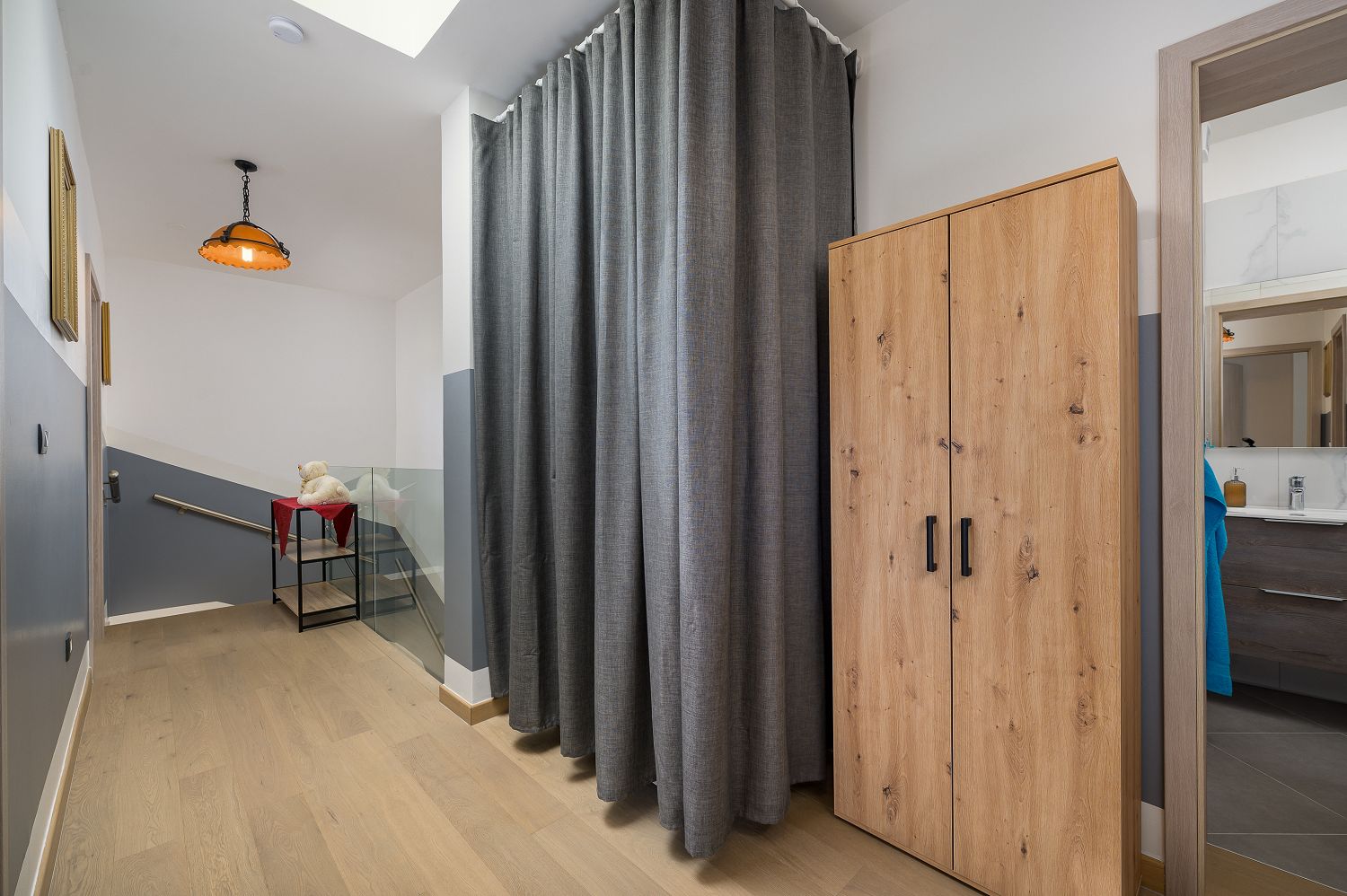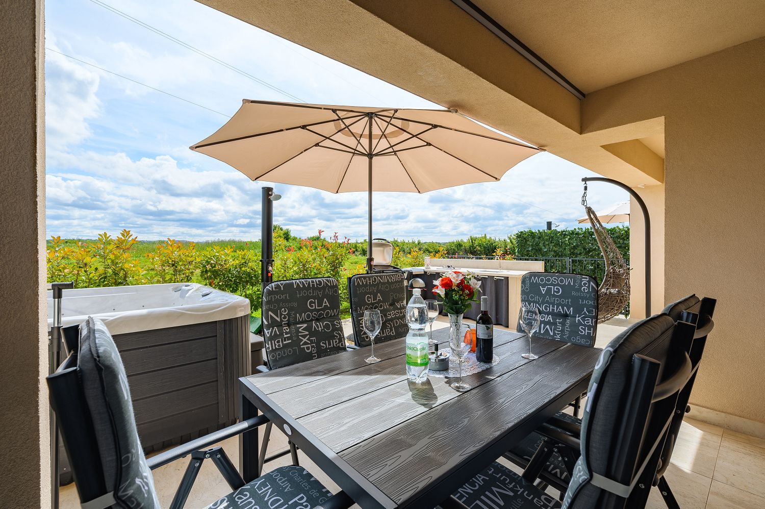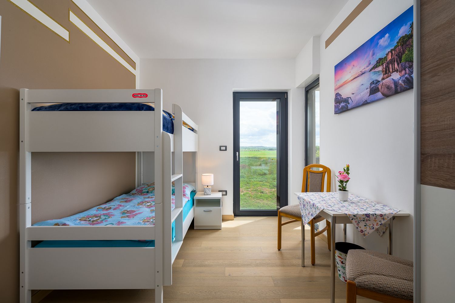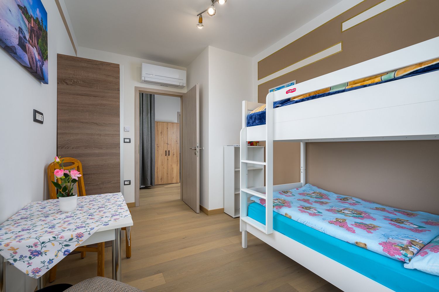 Dieses neue Apartment mit drei Schlafzimmern und einer Grundfläche von 100 m² bietet Ihnen einen komfortablen, offenen Wohnbereich mit einer voll ausgestatteten Küche sowie einem Ess- und Sitzbereich. Durch große Glastüren und Fenster ist dieser mit der Außenterrasse und dem Garten verbunden. Im Außenbereich können Sie ein Bad im privaten Whirlpool genießen und Ihre Abendessen in der Außenküche mit Grill und Essbereich zubereiten. Sowohl der Wohnbereich als auch die Schlafzimmer verfügen über eine Klimaanlage. Zwei Schlafzimmer sind mit einem großen Doppelbett ausgestattet, ein Schlafzimmer hat ein Etagenbett. Somit können maximal sechs Gäste im Apartment übernachten. Wenn Sie dieses Apartment mieten, werden Bettwäsche und ein Satz Handtücher pro Person und Woche bereitgestellt. Im Preis inbegriffen sind die Kurtaxe, Parkplätze, eine WLAN-Verbindung und Satellitenfernsehprogramme. Haustiere sind in diesem Apartment nicht gestattet und der Hauptmieter muss mindestens 25 Jahre alt sein. Ein perfekter Ort für Familien und Freunde!