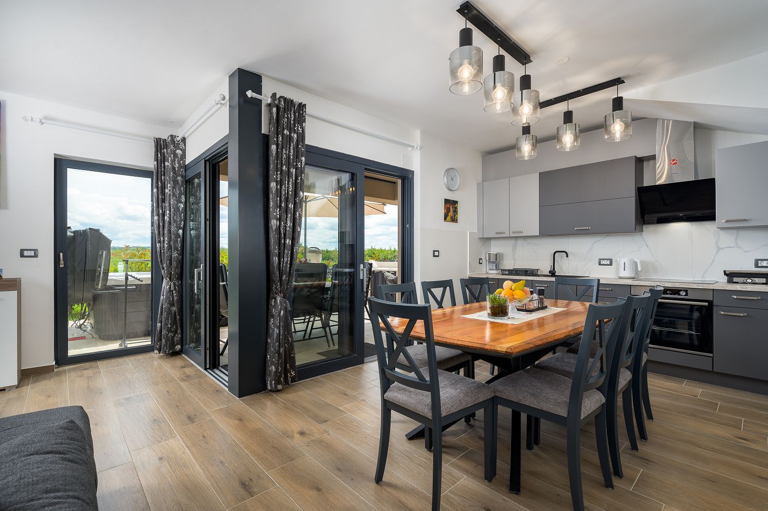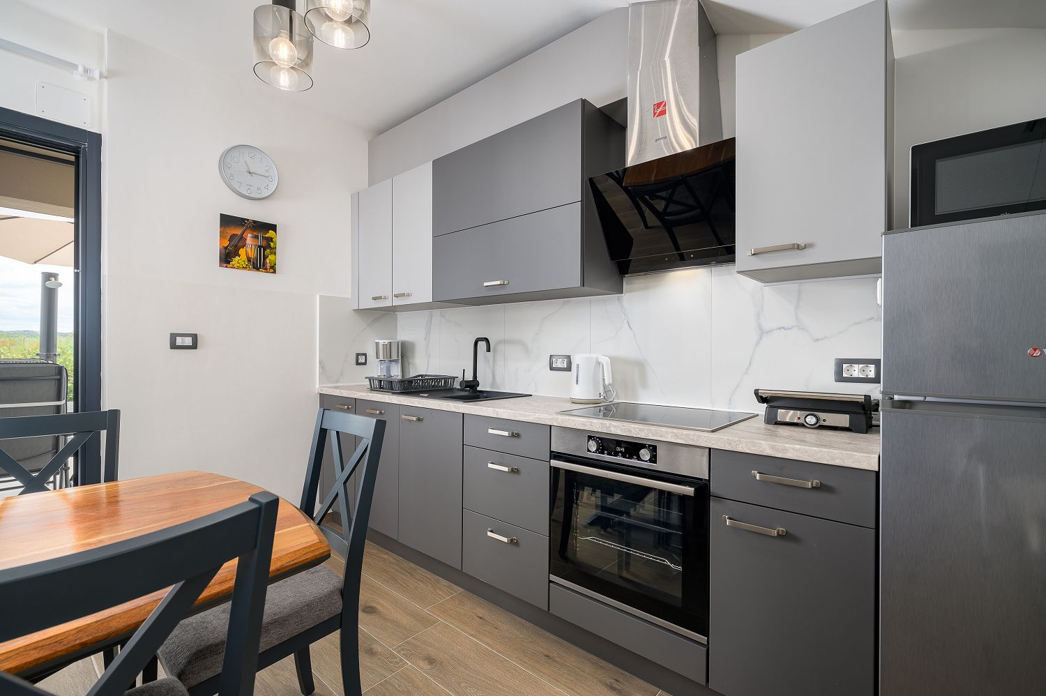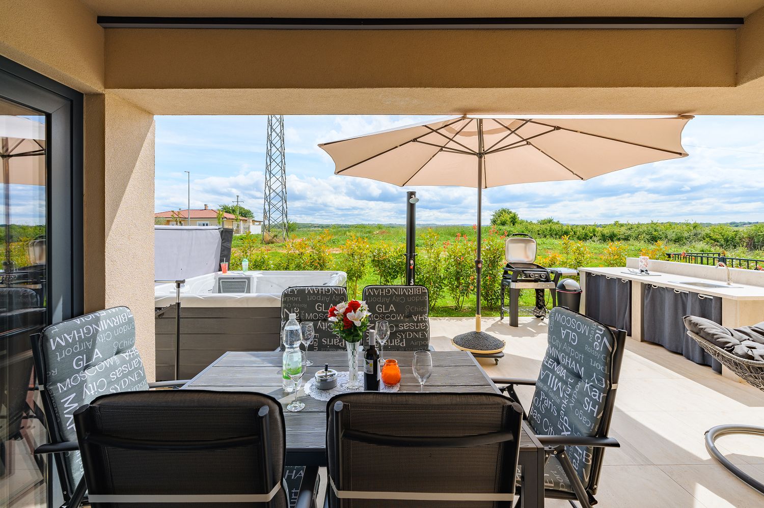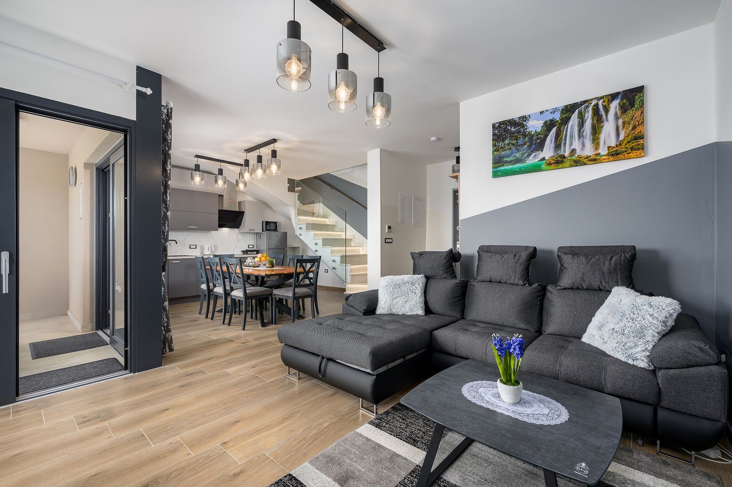 Dieses neue Apartment mit drei Schlafzimmern und einer Grundfläche von 100 m² bietet Ihnen einen komfortablen, offenen Wohnbereich mit einer voll ausgestatteten Küche sowie einem Ess- und Sitzbereich. Durch große Glastüren und Fenster ist dieser mit der Außenterrasse und dem Garten verbunden. Im Außenbereich können Sie ein Bad im privaten Whirlpool genießen und Ihre Abendessen in der Außenküche mit Grill und Essbereich zubereiten. Sowohl der Wohnbereich als auch die Schlafzimmer verfügen über eine Klimaanlage. Zwei Schlafzimmer sind mit einem großen Doppelbett ausgestattet, ein Schlafzimmer hat ein Etagenbett. Somit können maximal sechs Gäste im Apartment übernachten. Wenn Sie dieses Apartment mieten, werden Bettwäsche und ein Satz Handtücher pro Person und Woche bereitgestellt. Im Preis inbegriffen sind die Kurtaxe, Parkplätze, eine WLAN-Verbindung und Satellitenfernsehprogramme. Haustiere sind in diesem Apartment nicht gestattet und der Hauptmieter muss mindestens 25 Jahre alt sein. Ein perfekter Ort für Familien und Freunde!