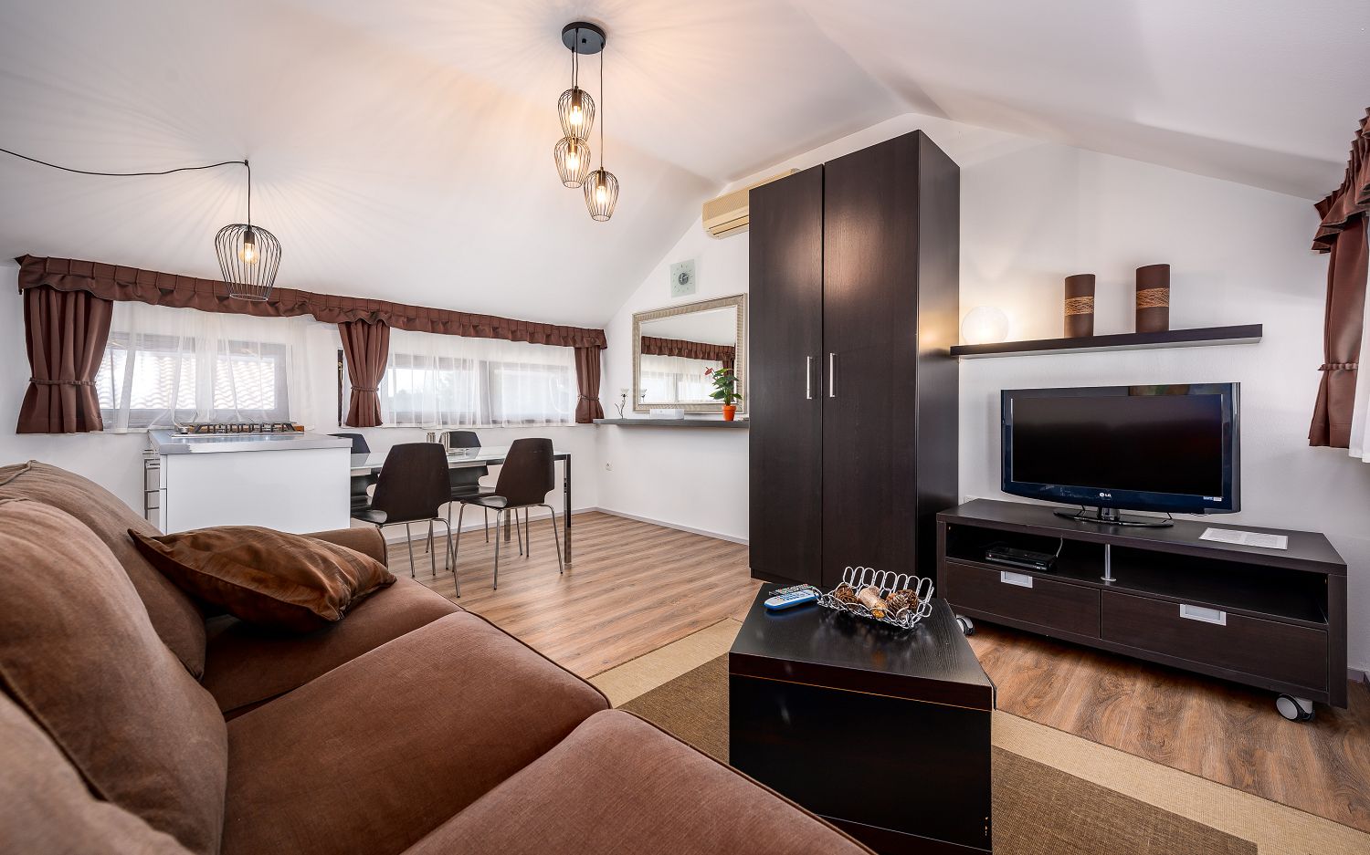 Vom Objekt bis zum Strand sind es 300 Meter und die Entfernung zum Zentrum beträgt 3,5 km. Das nächstgelegenste Lebensmittelgeschäft befindet sich 800 Meter von der Ferienimmobilie entfernt. In 800 Metern ist das umliegende Restaurant zu erreichen.