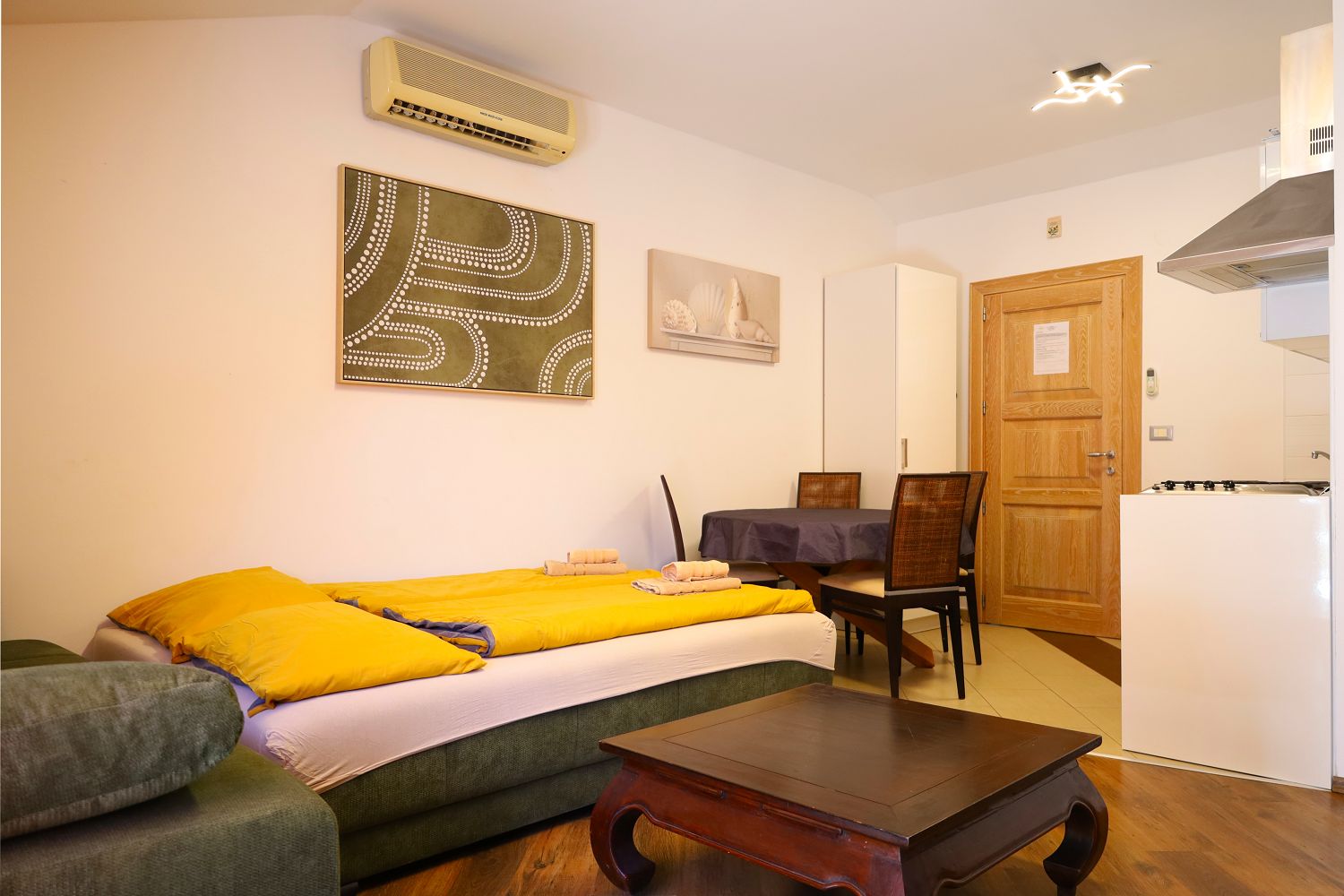 Dieses Apartment ist ideal für alleinreisende Paare und verfügt über ein Doppelbett. Es ist komplett ausgestattet, aber was es wirklich besonders macht, ist die intime, private Terrasse, die sich perfekt zum Entspannen bei einem Glas Wein eignet. Obwohl sich alle Touristenattraktionen in der Nähe befinden, sorgen Satelliten-TV und Internetverbindung für gute Unterhaltung am Abend. Vom Objekt bis zum Strand sind es 300 Meter und die Entfernung zum Zentrum beträgt 3,5 km. Das nächstgelegenste Lebensmittelgeschäft befindet sich 500 Meter von der Ferienimmobilie entfernt. In 25 Metern ist das umliegende Restaurant zu erreichen.