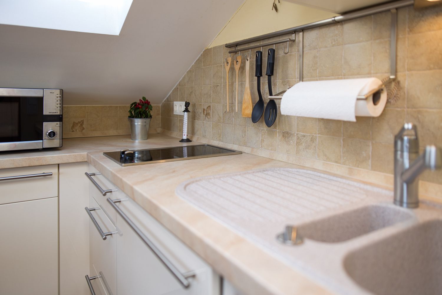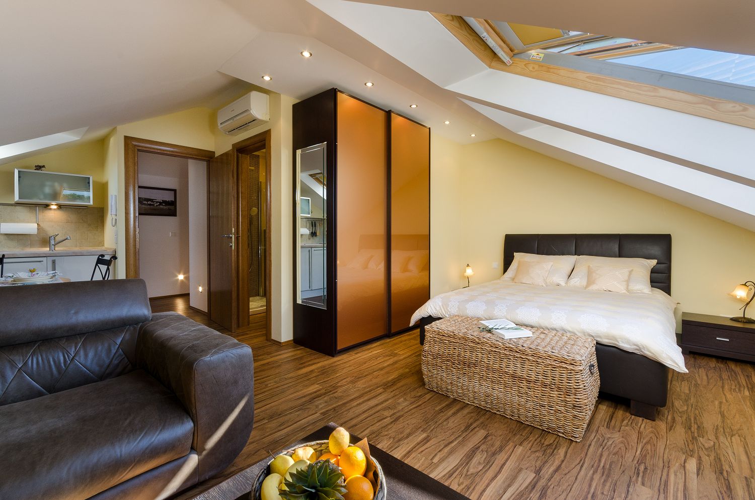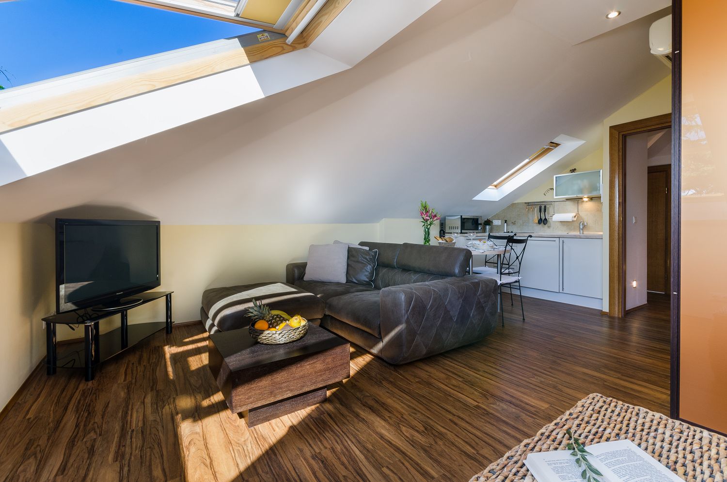 Ein luxuriös eingerichtetes Studioappartement in unmittelbarer Nähe zum Meer! Die Wohnung befindet sich im schönsten Stadtteil von Crikvenica, „Crni Mol“ genannt, und ist nur eine Gehminute vom beliebten Sandstrand entfernt. Von der Wohnung aus hat man einen wunderschönen Meerblick, der Ihnen einen unvergesslichen Urlaub garantiert. Neben der Standardausstattung verfügt diese Wohnung über einen großen Flachbildfernseher mit Satellitenanschluss, einen WLAN-Anschluss, eine Solar-Warmwasserversorgung und eine Bodenheizung für kältere Tage. Auf derselben Etage befindet sich ein Wäscheraum mit Wäschetrockner. Die Küche ist sehr gut ausgestattet mit einer Filterkaffeemaschine, einem Eierkocher usw. Vor dem Eingang befindet sich ein Balkon, der für diese Wohnung vorgesehen ist und als Durchgang zur zweiten Ferienwohnung auf dieser Etage genutzt wird, da er am Treppenaufgang liegt. Auf der 140 m² großen Etage befinden sich zwei Penthousewohnungen, darunter diese 30 m² große Wohnung. Ihnen steht ein kostenfreier Privatparkplatz auf dem Grundstück zur Verfügung.