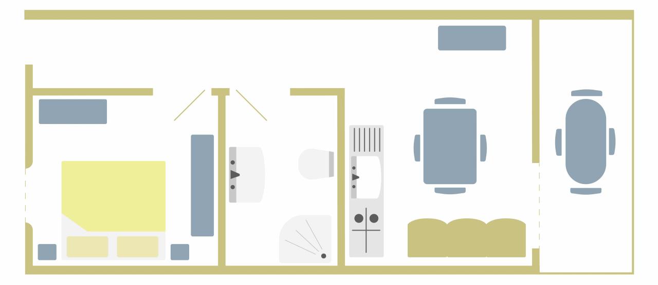 Die 35 Quadratmeter grosse Zweizimmerwohnung Bilo A2 bietet Platz für max. 4 Personen. Die Unterkunft verfügt über ein Schlafzimmer, welches mit einem Doppelbett ausgestattet ist. Bei Bedarf bietet die Doppelschlafcouch im kombinierten Wohn- und Essbereich noch zwei weitere Schlafmöglichkeiten. Die gut eingerichtete Küchenzeile im Wohnbereich verfügt über einen Elektroherd, Geschirr, Besteck, Töpfe, eine Filterkaffeemaschine und einen Kühlschrank mit Eisfach. Das Badezimmer ist mit einem Waschbecken, einem WC und einer Dusche ausgestattet. Die Unterkunft verfügt über Balkon oder Terrasse mit Tisch und Stühlen. Einen öffentlichen Picknickbereich mit Grillplatz finden Sie im Aussenbereich der Anlage. Fahrzeit ab ital. Grenze ca. 1,5h. Hinweis: Wenn Sie mehr als eine Unterkunft benötigen, ist dies bei uns in der Regel möglich, da wir über mehrere Objekte des gleichen Haustyps verfügen
