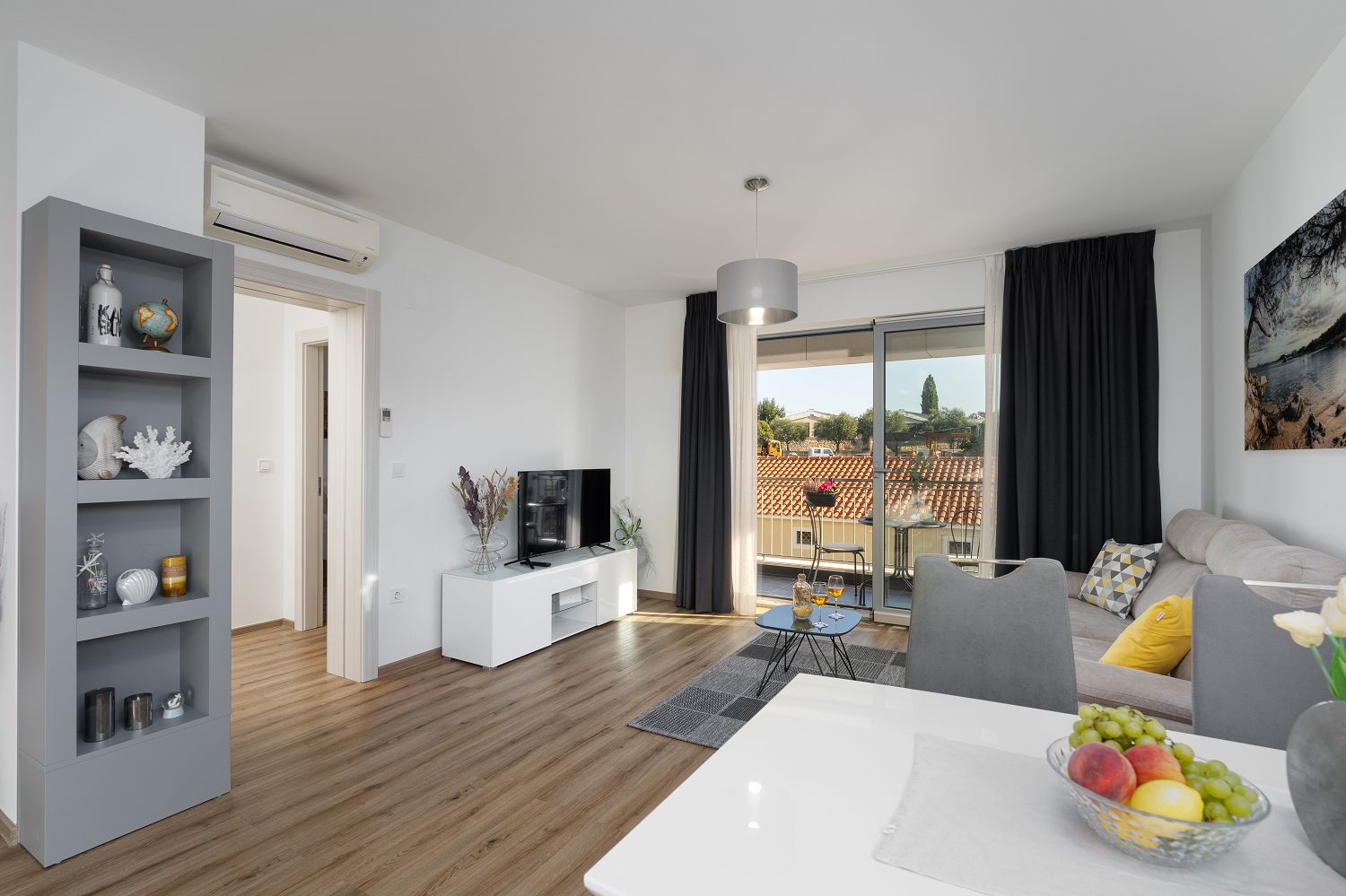Die Ferienwohnung befindet sich in der malerischen Stadt Vrsar zwischen Porec und Rovinj. Verschiedene Cafés, Geschäfte und Restaurants sind nur wenige Meter entfernt. Das moderne Apartmenthaus ist ein Neubau, der direkt am Yachthafen liegt und trotzdem sehr ruhig ist. Die historische Altstadt und die Stadtpromenade sind nur wenige Minuten zu Fuß entfernt. Der Eintritt in die Marina Vrsar und ein Privatparkplatz sind im Preis inbegriffen. Das Apartment für zwei Personen und ein Kind hat eine Wohnfläche von 47 m² und liegt im ersten Stock. Es besteht aus einem Wohnbereich mit einer komplett ausgestatteten Küche, einem Esstisch und einer ausziehbaren Couch für ein Kind, einem Balkon mit Gartenmöbeln, einem Schlafzimmer mit Doppelbett und einem Badezimmer mit Dusche und WC. Mit seinem gemütlichen Balkon lädt dieses Apartment dazu ein, den Urlaub in Ruhe zu verbringen oder die Unterhaltung zu genießen, die Vrsar und Istrien an warmen Sommertagen bieten.