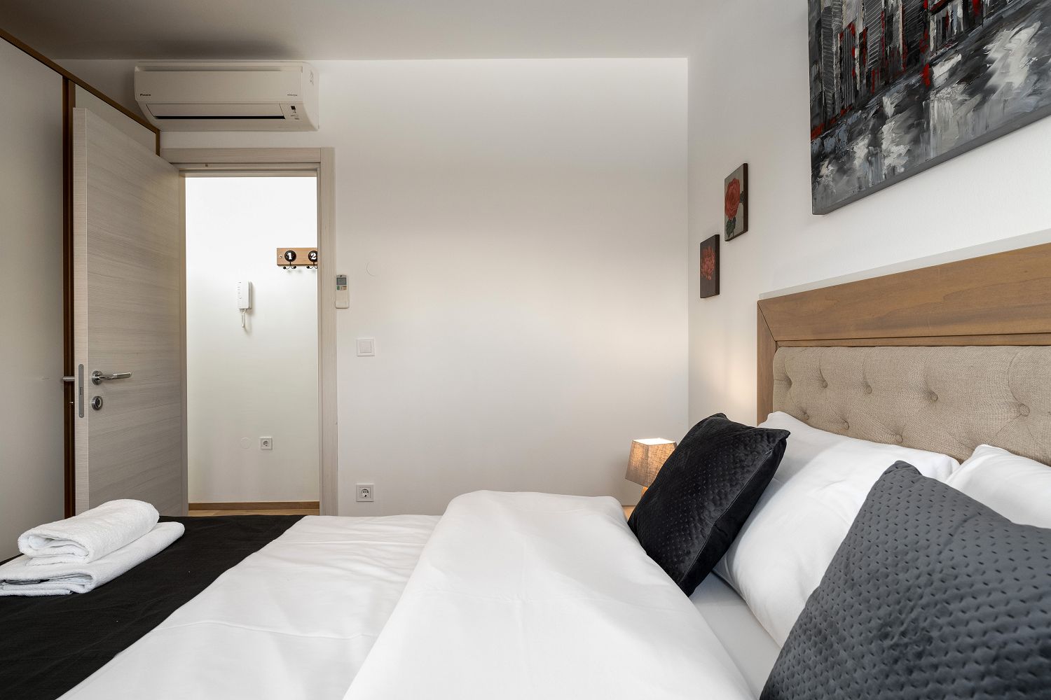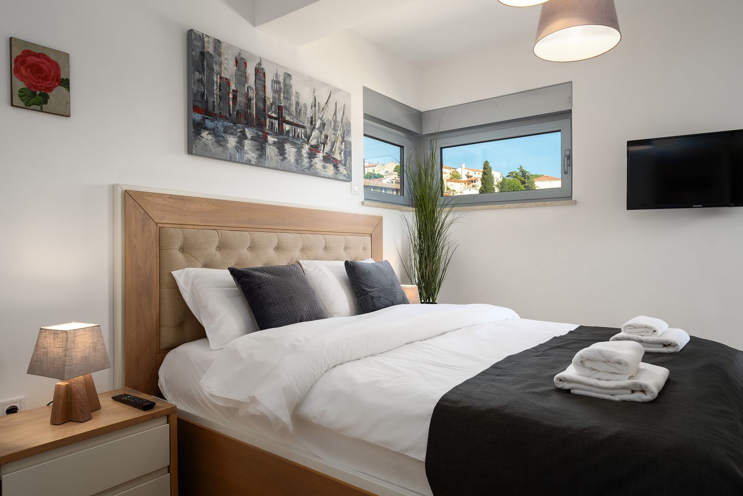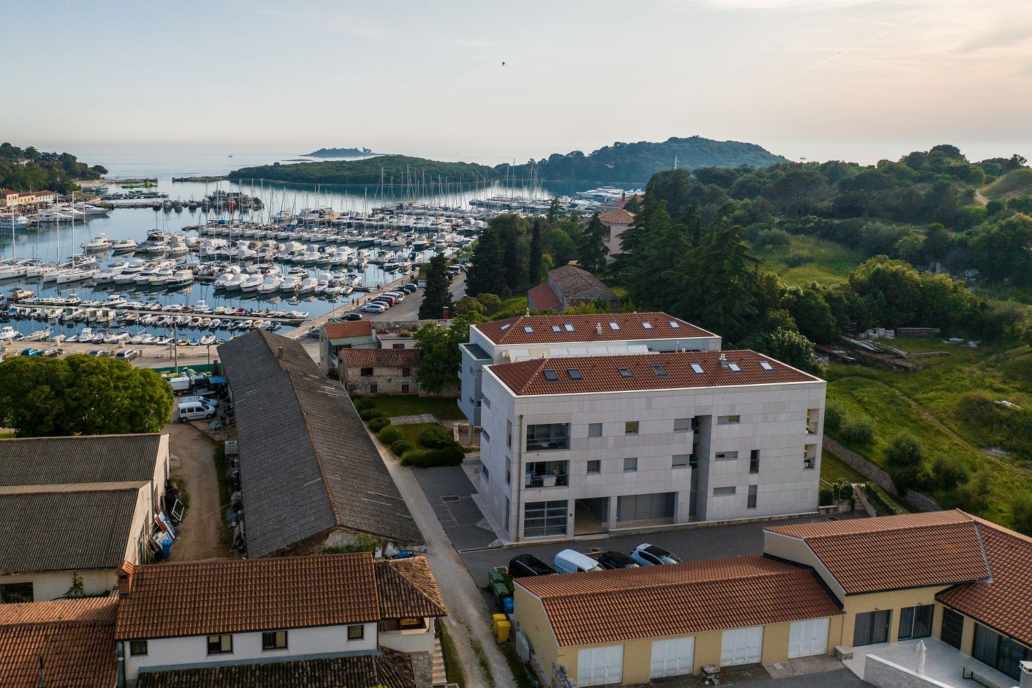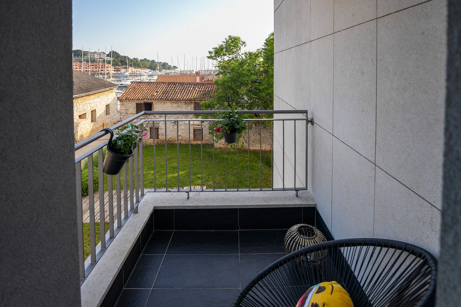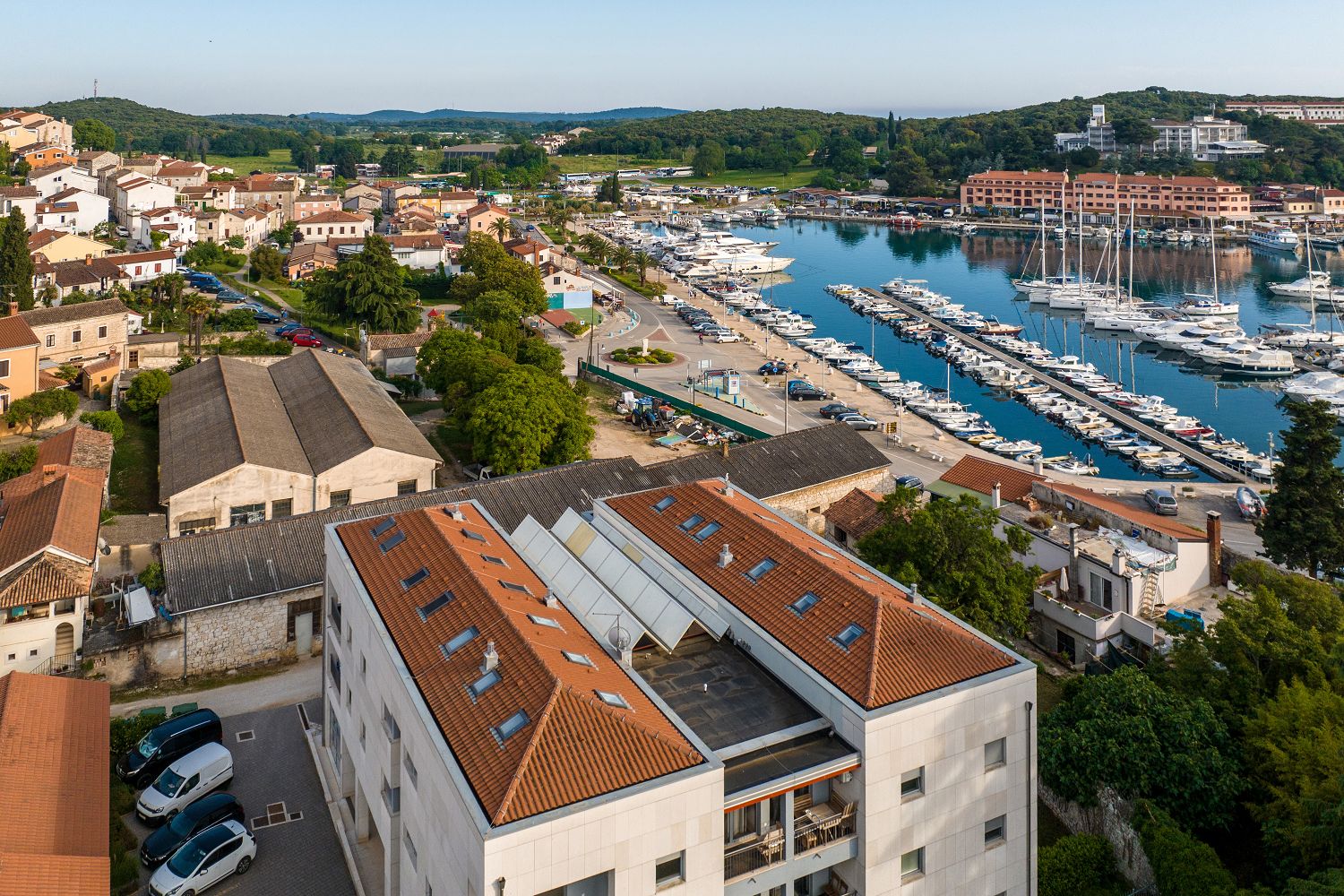 Die Ferienwohnung befindet sich in der malerischen Stadt Vrsar zwischen Porec und Rovinj. Verschiedene Cafés, Geschäfte und Restaurants sind nur wenige Meter entfernt. Das moderne Apartmenthaus ist ein Neubau, der direkt am Yachthafen liegt und trotzdem sehr ruhig ist. Die historische Altstadt und die Stadtpromenade sind nur wenige Minuten zu Fuß entfernt. Der Eintritt in die Marina Vrsar und ein Privatparkplatz sind im Preis inbegriffen. Das Apartment für zwei Personen und ein Kind hat eine Wohnfläche von 47 m² und liegt im ersten Stock. Es besteht aus einem Wohnbereich mit einer komplett ausgestatteten Küche, einem Esstisch und einer ausziehbaren Couch für ein Kind, einem Balkon mit bezauberndem Meerblick und Gartenmöbeln, einem Schlafzimmer mit Doppelbett und einem Badezimmer mit Dusche und WC. Mit seinem gemütlichen Balkon lädt dieses Apartment dazu ein, den Urlaub in Ruhe zu verbringen oder die Unterhaltung zu genießen, die Vrsar und Istrien an warmen Sommertagen bieten.